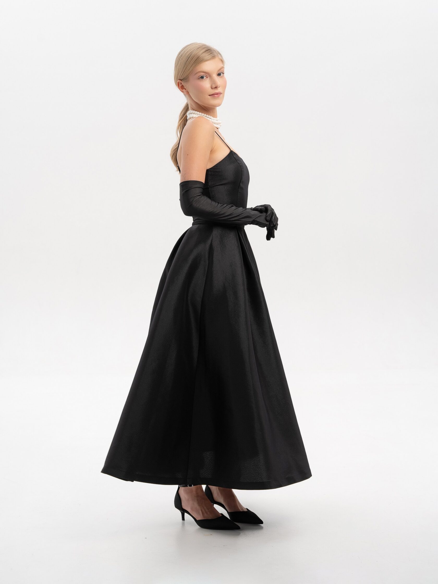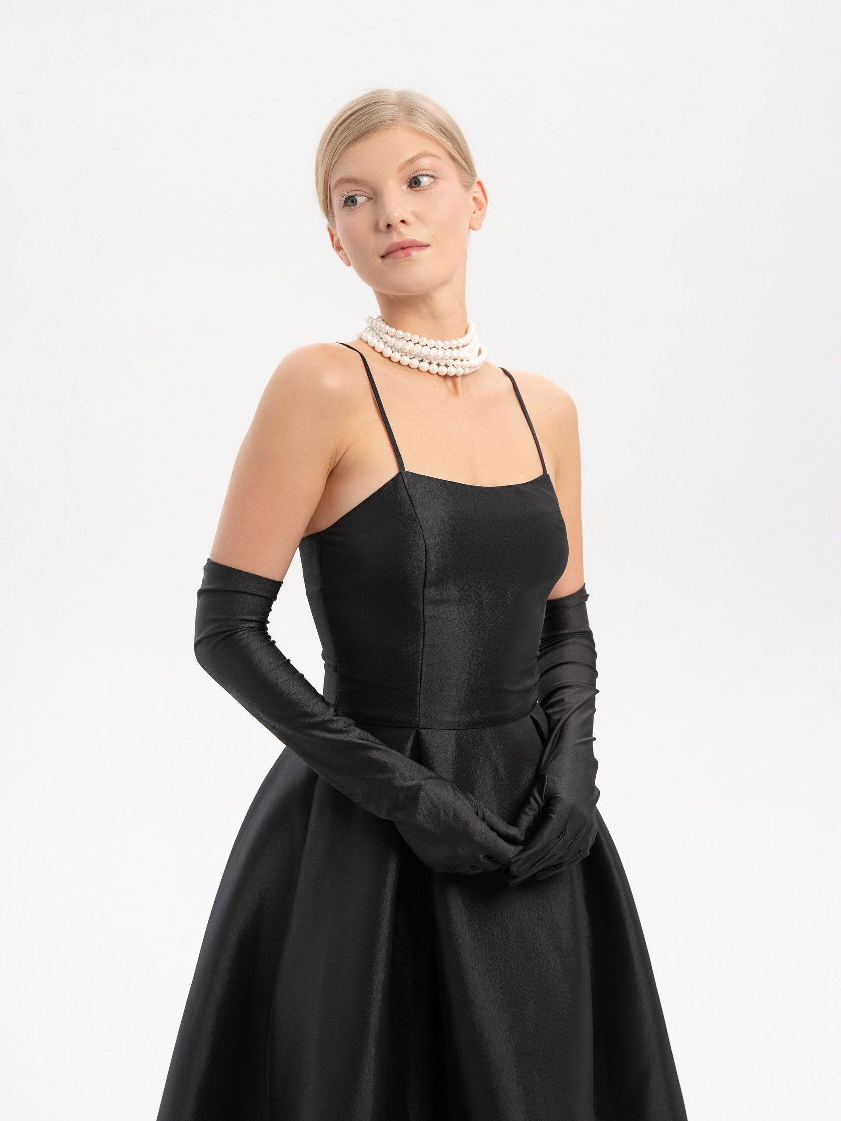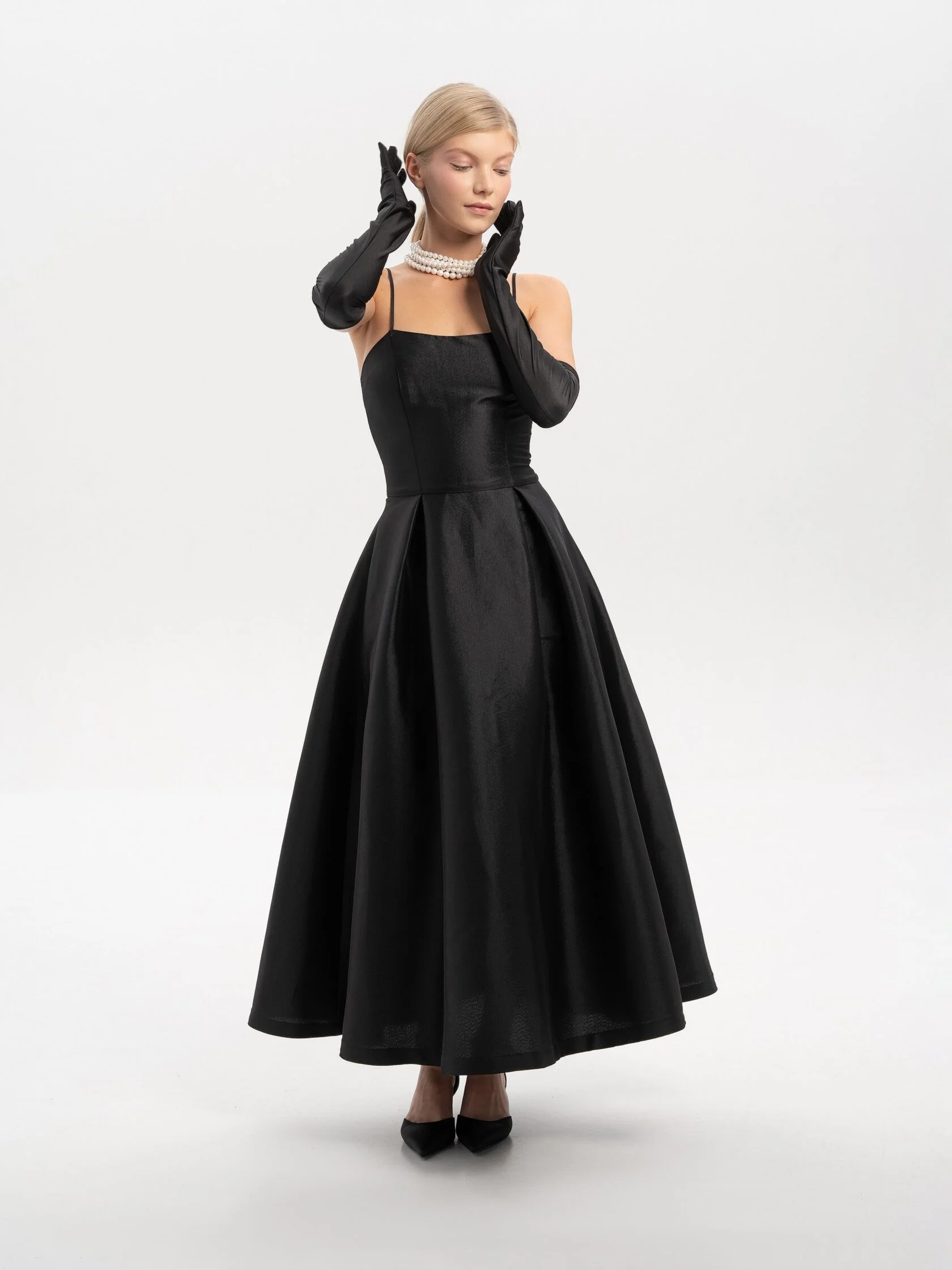 Черное платье в длине макси в эстетике старого Голливуда – эффектный выбор для тех, кто любит драму в лучших традициях классического кино. Женственный силуэт создает изящный женственный образ. Платье идеально для праздничных вечеров, новогодних выходов и особых случаев, когда хочется выглядеть элегантно.