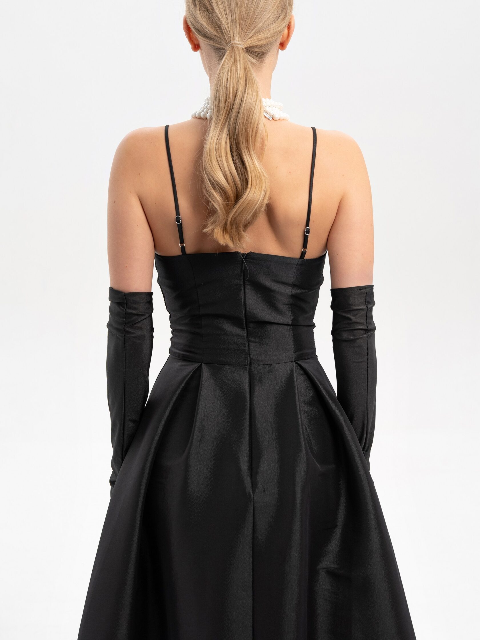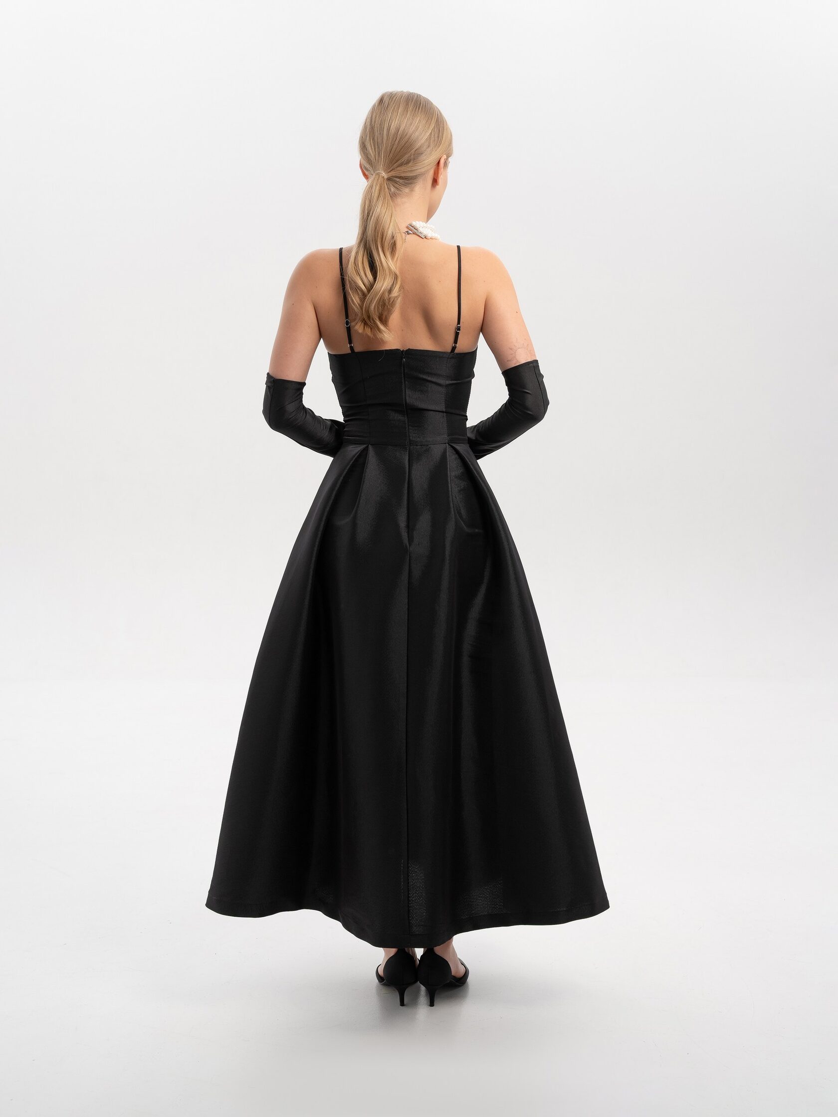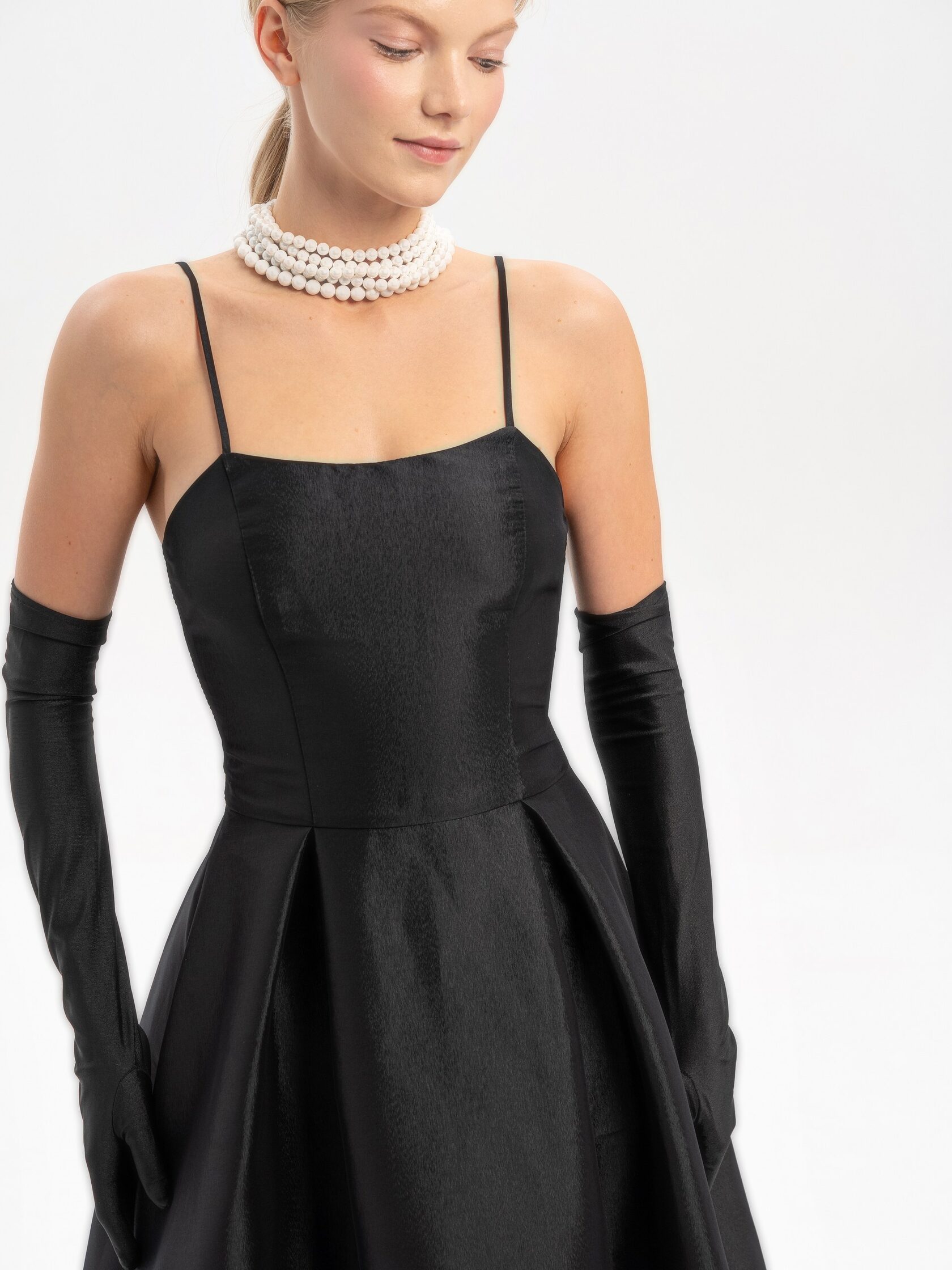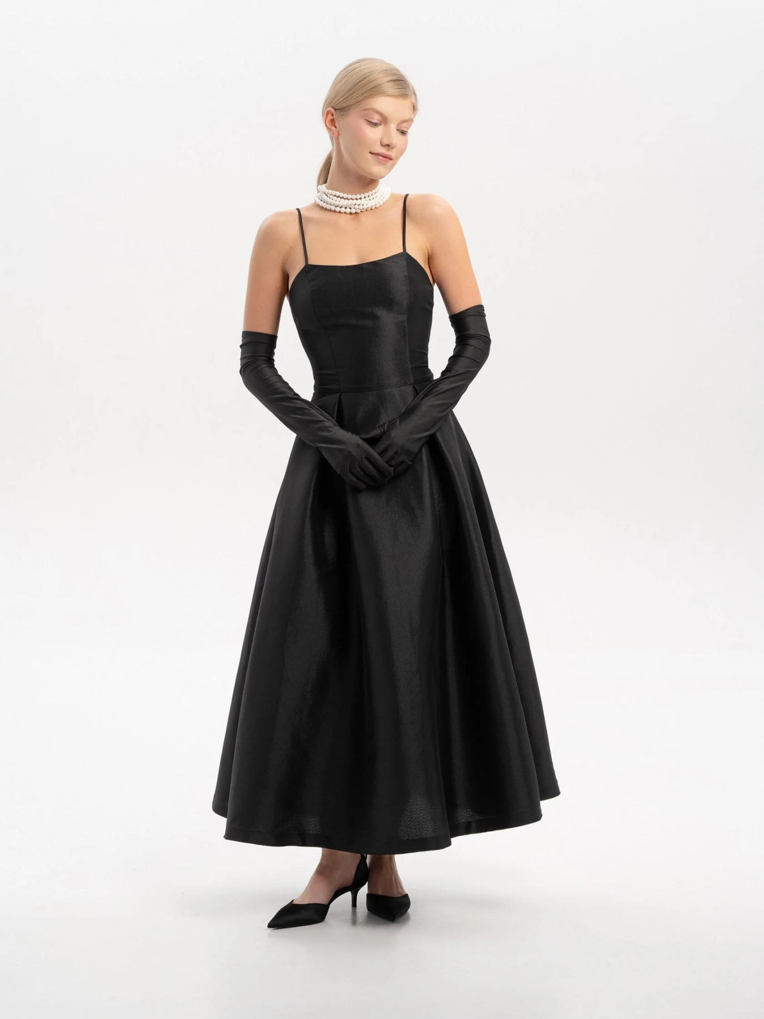 Черное платье в длине макси в эстетике старого Голливуда – эффектный выбор для тех, кто любит драму в лучших традициях классического кино. Женственный силуэт создает изящный женственный образ. Платье идеально для праздничных вечеров, новогодних выходов и особых случаев, когда хочется выглядеть элегантно.