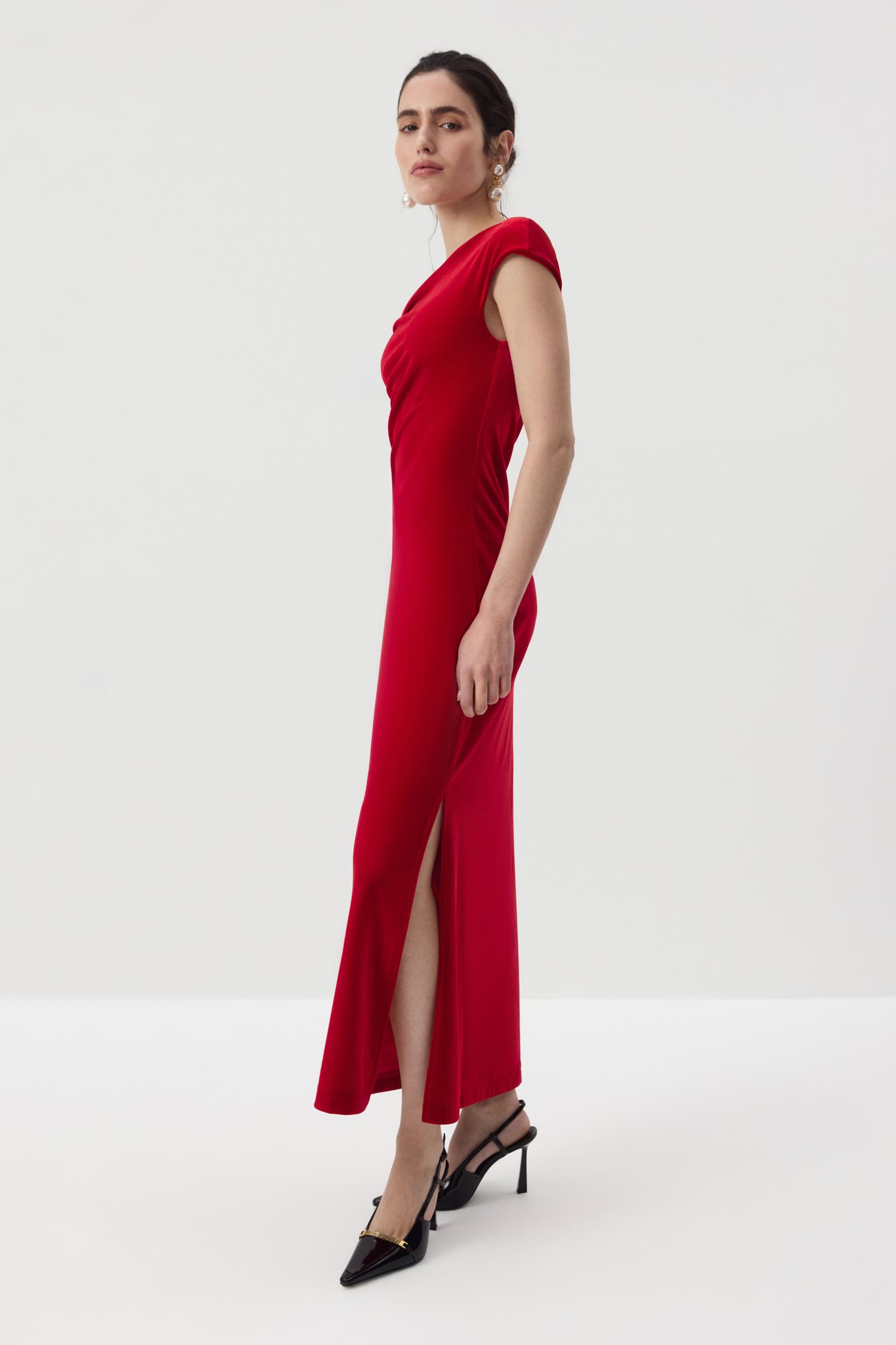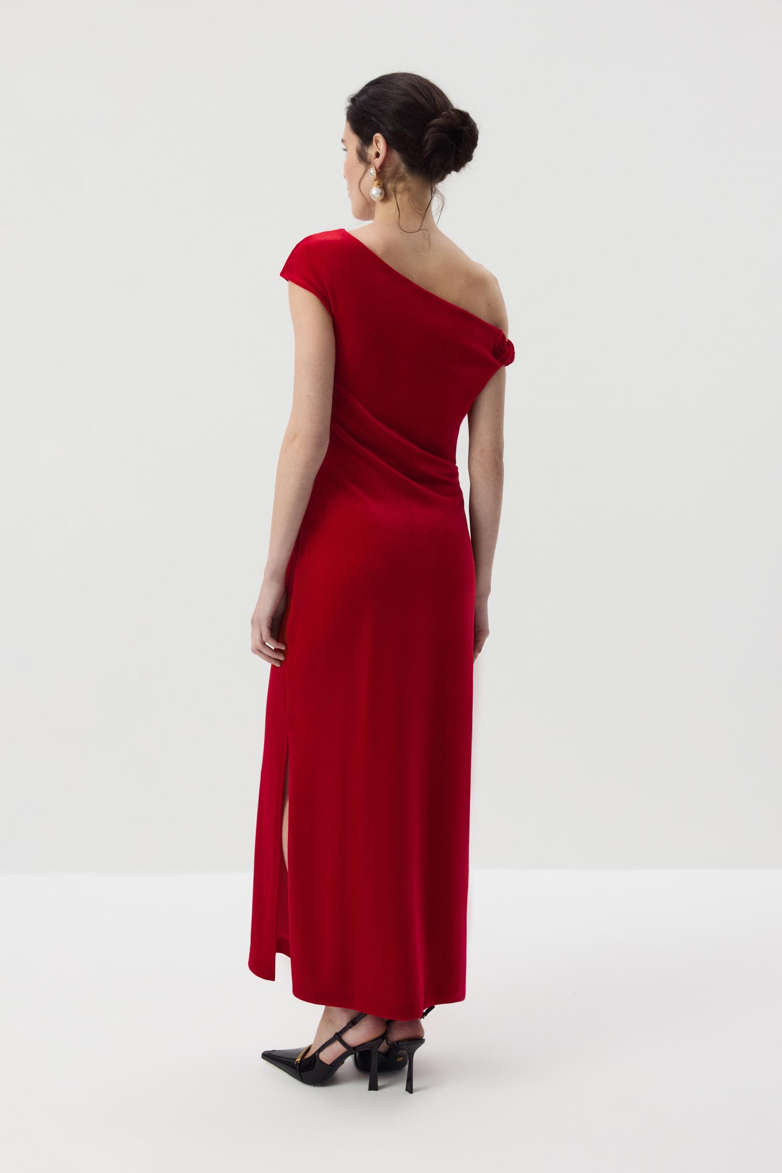 Платье макси с открытым плечом из бархата
