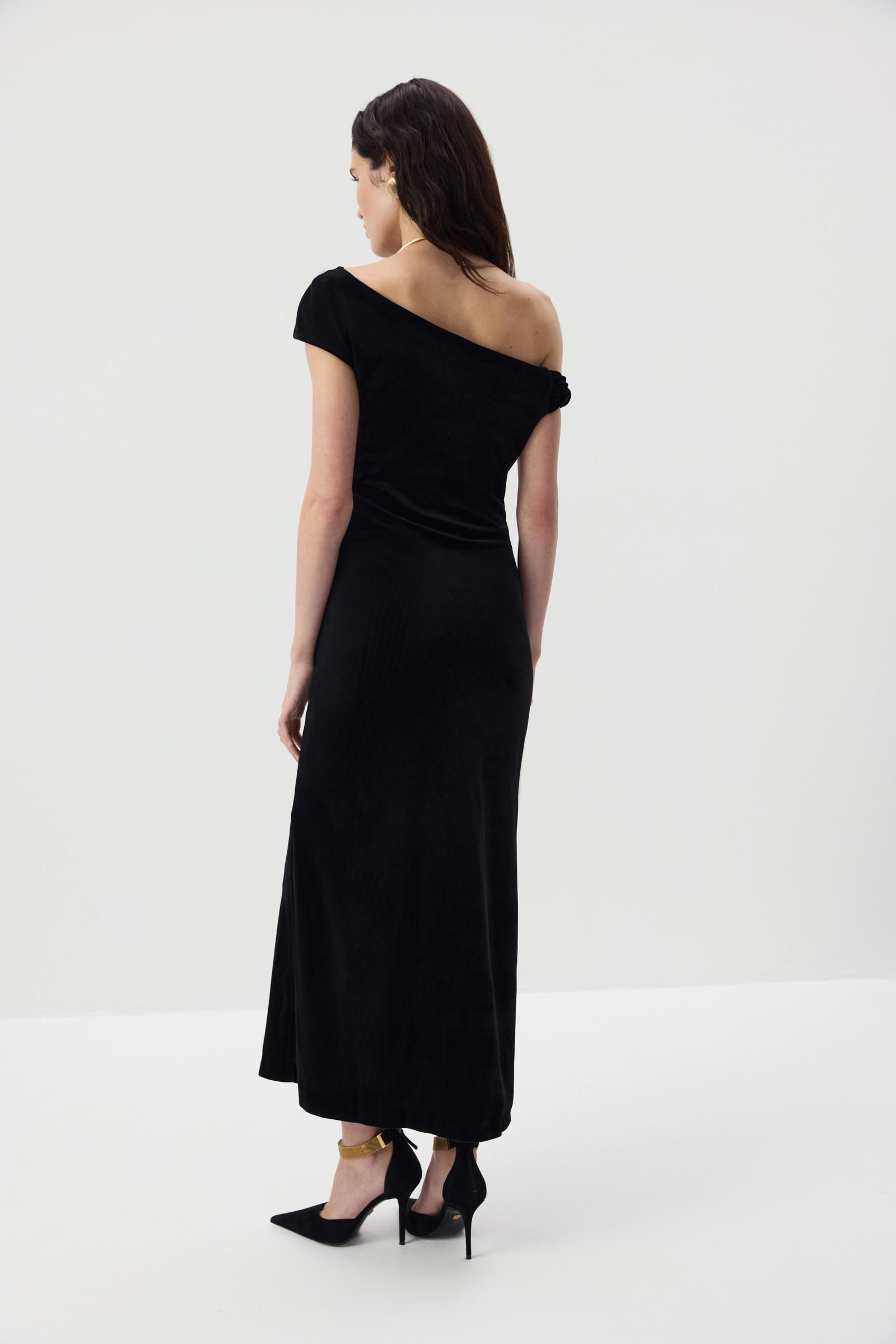 Платье макси с открытым плечом из бархата
