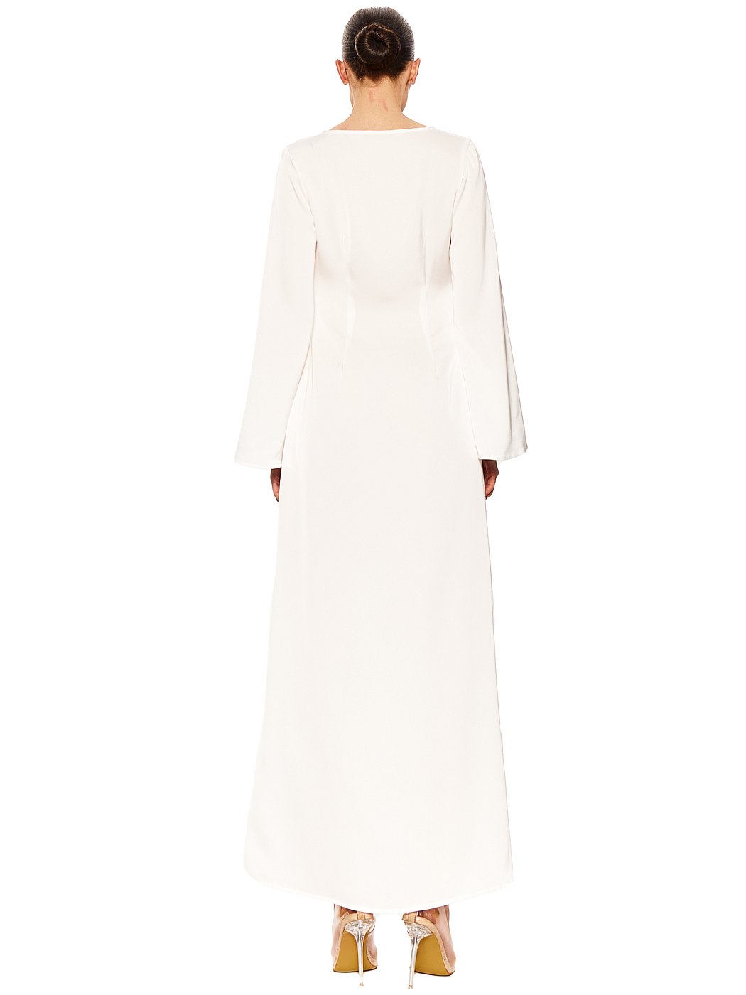 Платье в длине макси приталенного силуэта — квинтэссенция женственности и восточной эстетики. Выполнено из ткани с качественным составом и благородными переливами при дневном и вечернем свете. Закрытый и лаконичный формат смотрится минималистично, но при этом даёт массу вариантов для стилизации. С активными аксессуарами, акцентной обувью и эффектным мейком. Полная воля фантазии и правильные акценты на преимуществах фигуры.