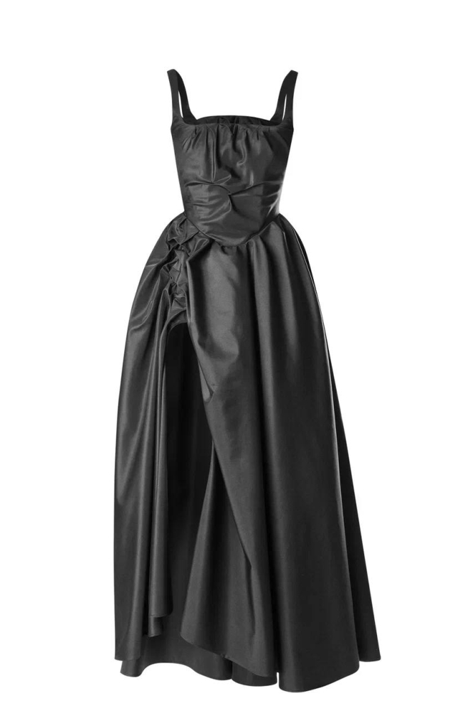Пышная юбка добавляет образу воздушности и лёгкости. Вырез на бедре придаёт платью нотку игривости и современности, позволяя подчеркнуть линию ног.