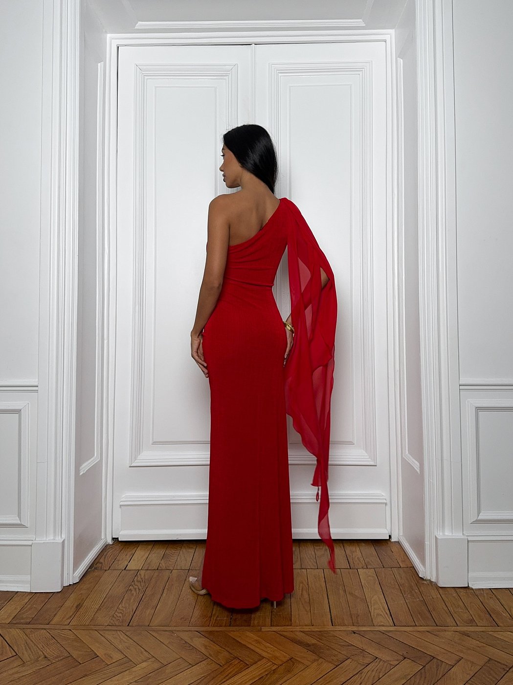 Изысканность и элегантность в каждом стежке — платье со шлейфом и изящным обнажённым плечом. Этот наряд станет ярким акцентом в вашем образе и подойдёт как для торжественных мероприятий, так и для особых вечеров.