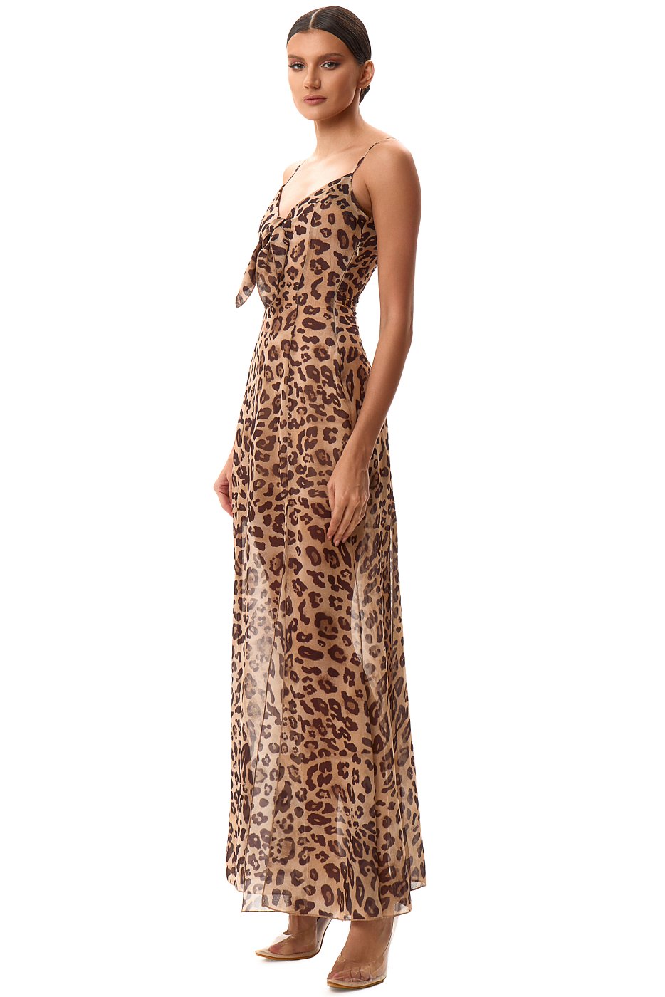 Леопардовый принт на платье делает его по-настоящему запоминающимся и ярким. Этот смелый и выразительный рисунок придаёт образу дерзости и стиля, подчёркивая индивидуальность.