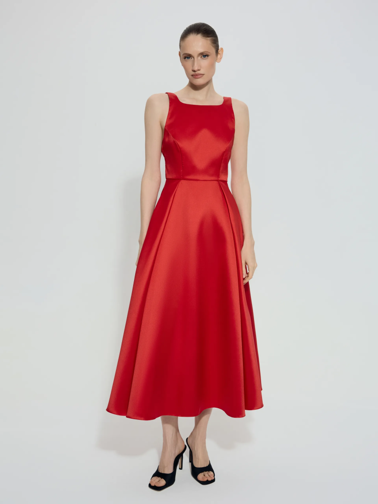 Платье Linora с открытой спиной — элегантная модель вне времени, выполненная в силуэте New Look, который красиво подчёркивает талию и делает образ утончённым. Глубокая акцентная спинка добавляет женственности, а благородный мягкий блеск ткани создаёт деликатный эффект. Платье универсально для торжественных и вечерних выходов.