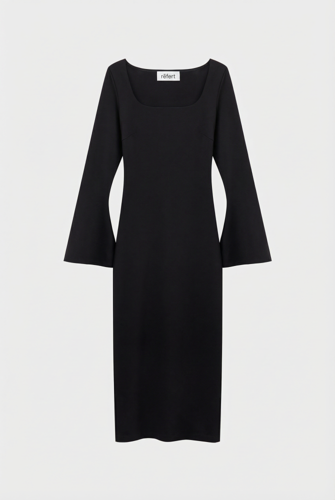 Трикотажное платье с квадратным вырезом — стильный и женственный наряд для особых случаев. Подчеркните изящество образа широкими жёсткими браслетами на запястьях. Платье станет отличным выбором для свидания или культурного вечера. Создайте гармоничный образ, подобрав сапоги и сумку в тон платья или сделайте акцент на аксессуарах.