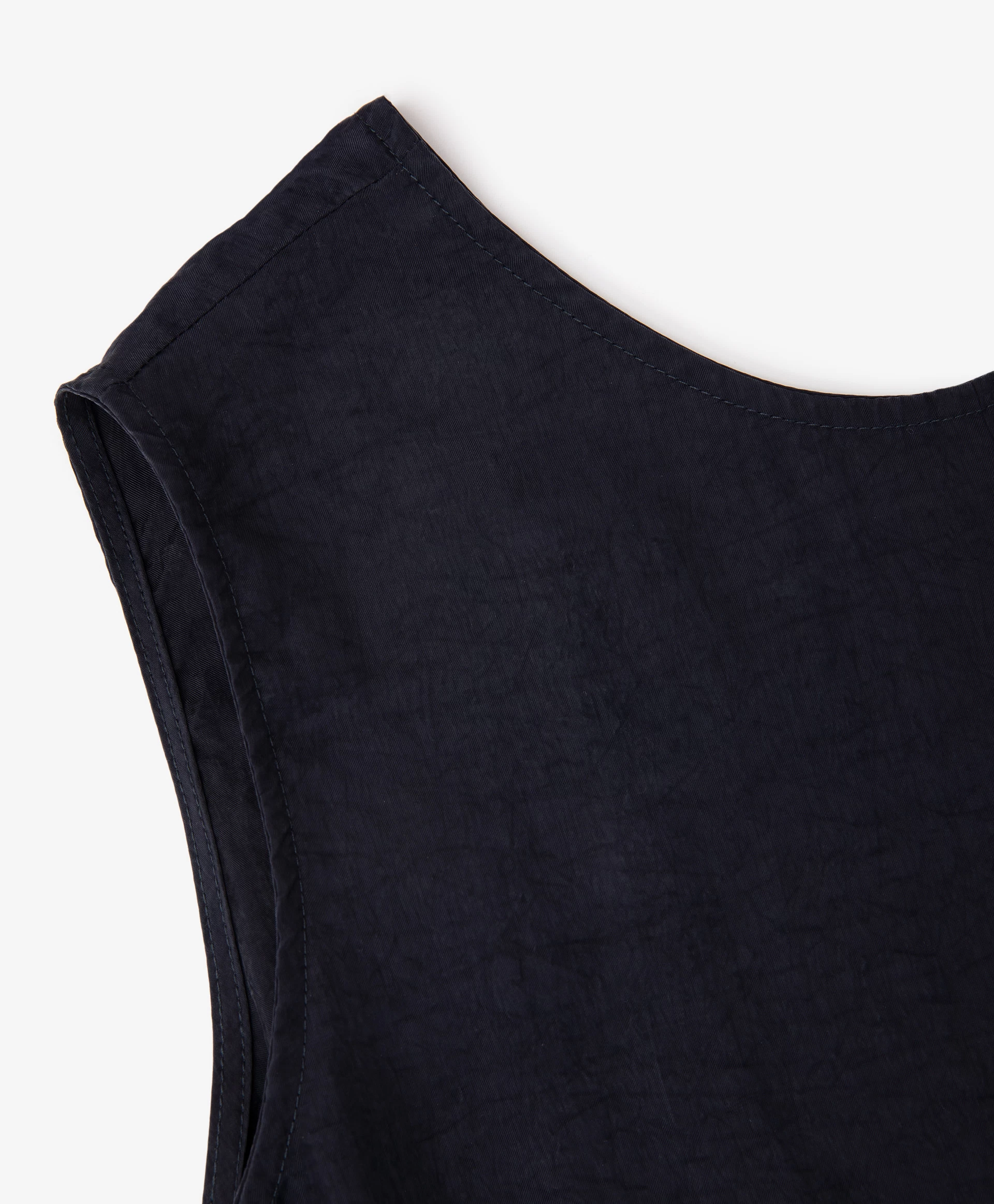 Туника макси с высокими шлицами спереди и сзади из шелковистой матовой ткани с крэш эффектом.