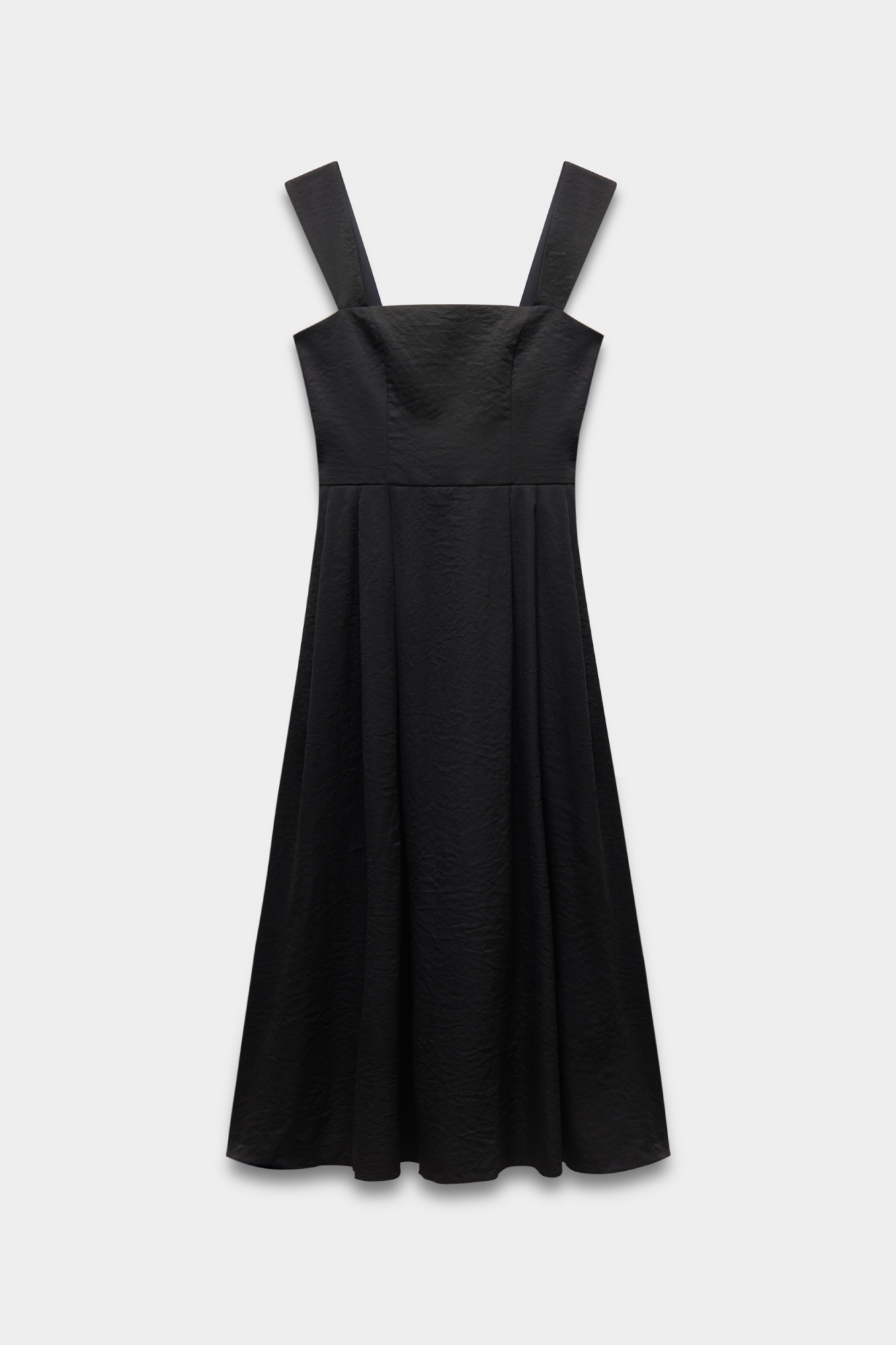 Черное платье с расклешенной юбкой — стильный акцент вашего образа! Элегантная длина миди универсальна и подходит ко всем случаям.