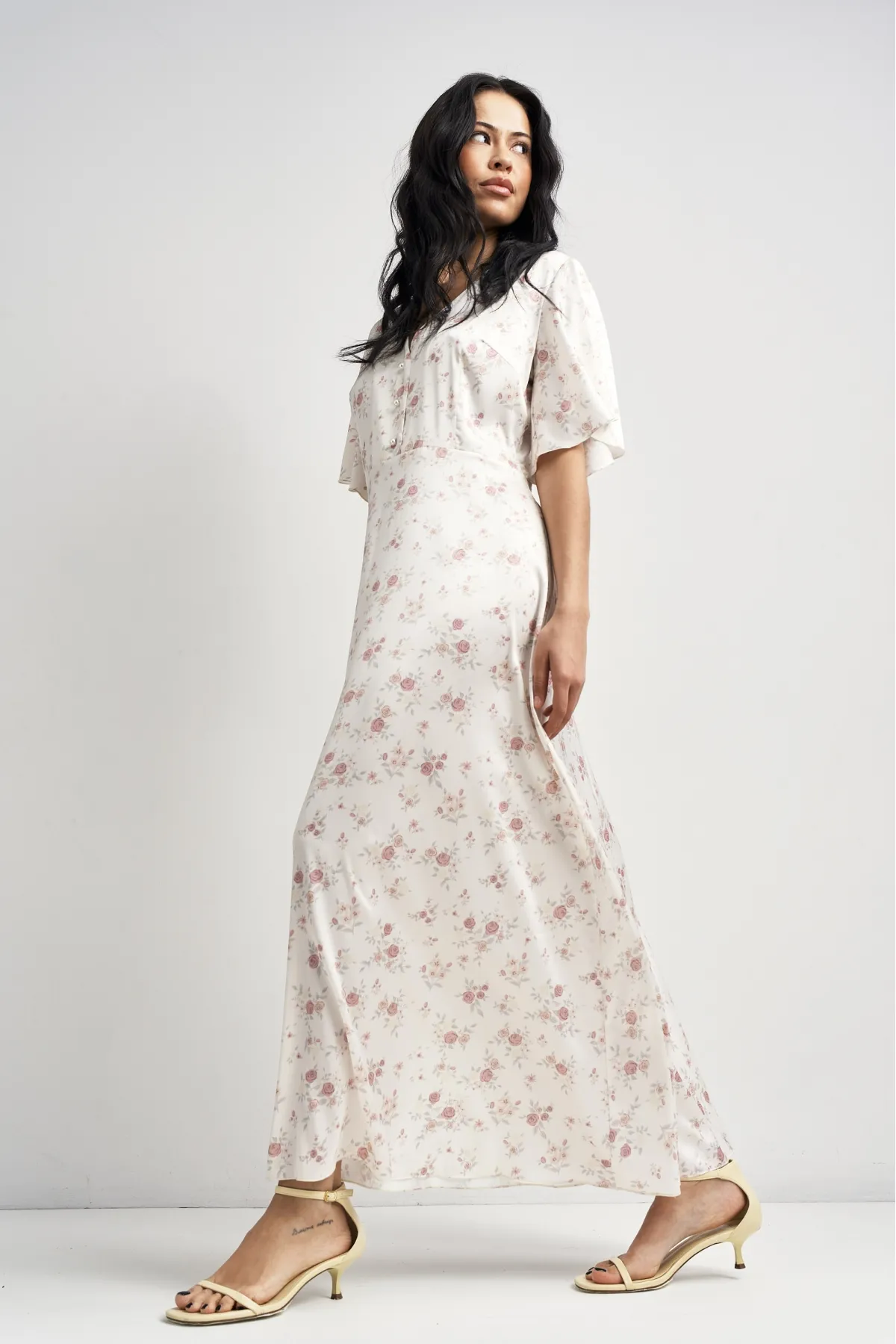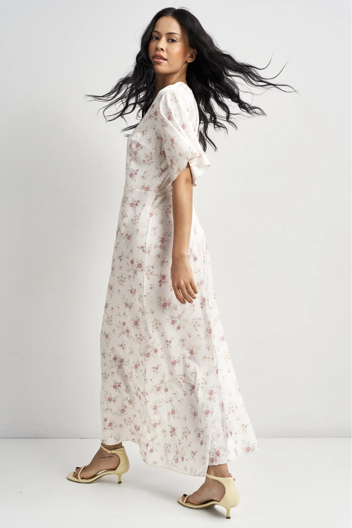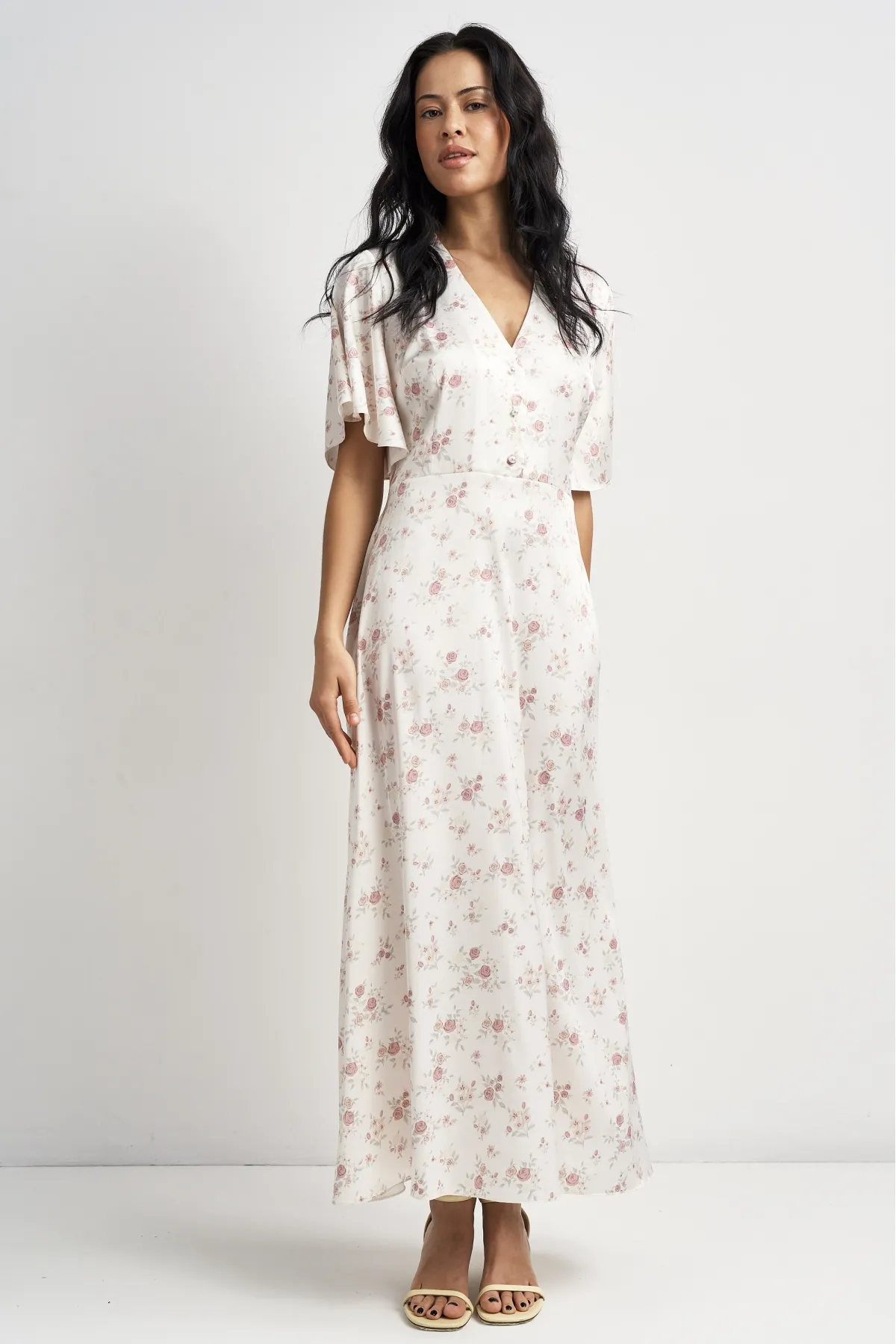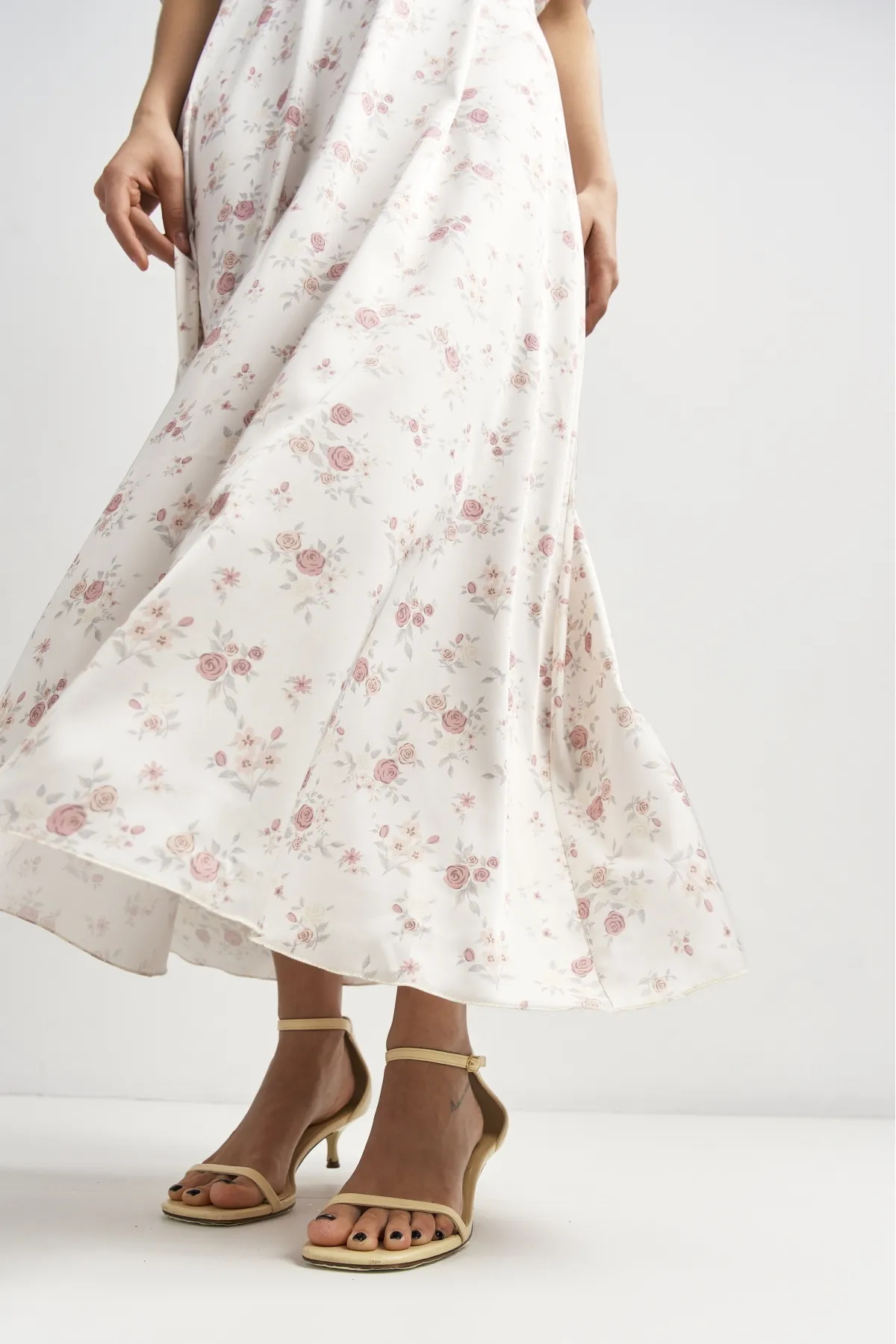 Платье из гладкого атласа с нежным цветочным рисунком — идеальный вариант для тёплых дней и вечерних выходов. Мягкая струящаяся ткань красиво ложится по силуэту, а V‑образный вырез добавляет женственности. Рукава‑воланы придают модели романтичный, немного воздушный характер. Длина миди делает платье универсальным — подходит для прогулок, отпускного гардероба и праздников.