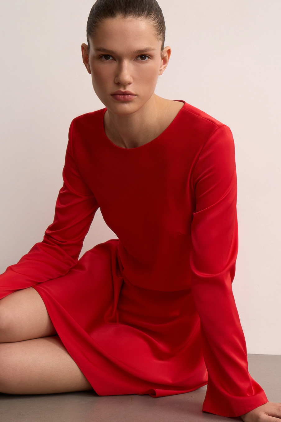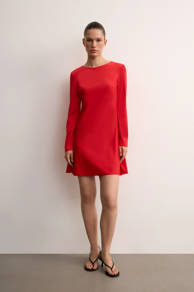 Струящееся платье полуприлегающего силуэта скроенное по косой. Модель имеет круговую горловину и длинный рукав. Идеально подойдет для важных мероприятий и романтических свиданий.