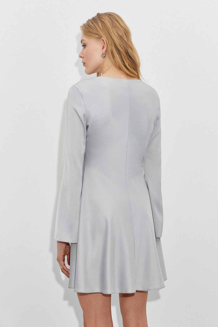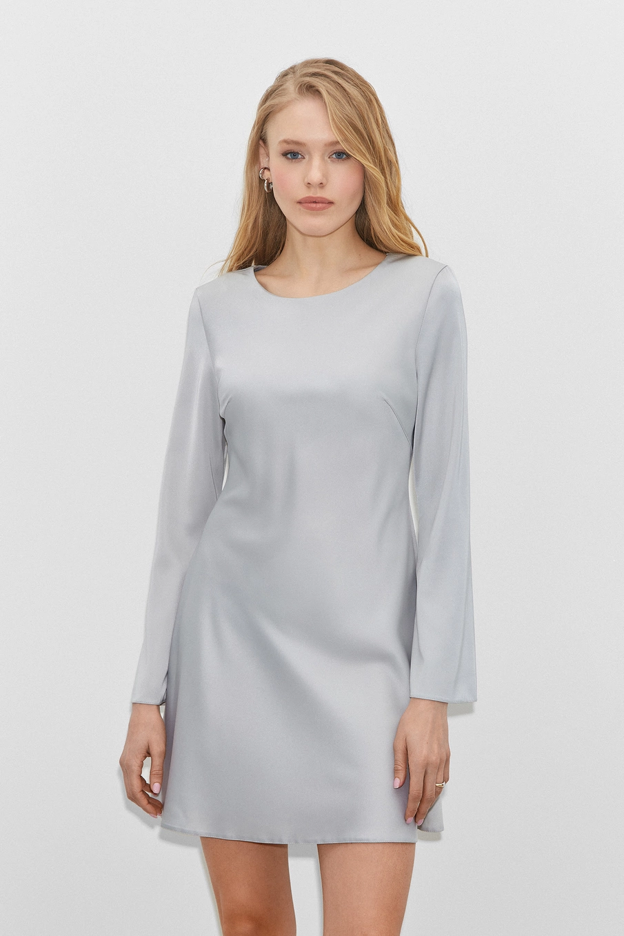 Струящееся платье полуприлегающего силуэта скроенное по косой. Модель имеет круговую горловину и длинный рукав. Идеально подойдет для важных мероприятий и романтических свиданий.