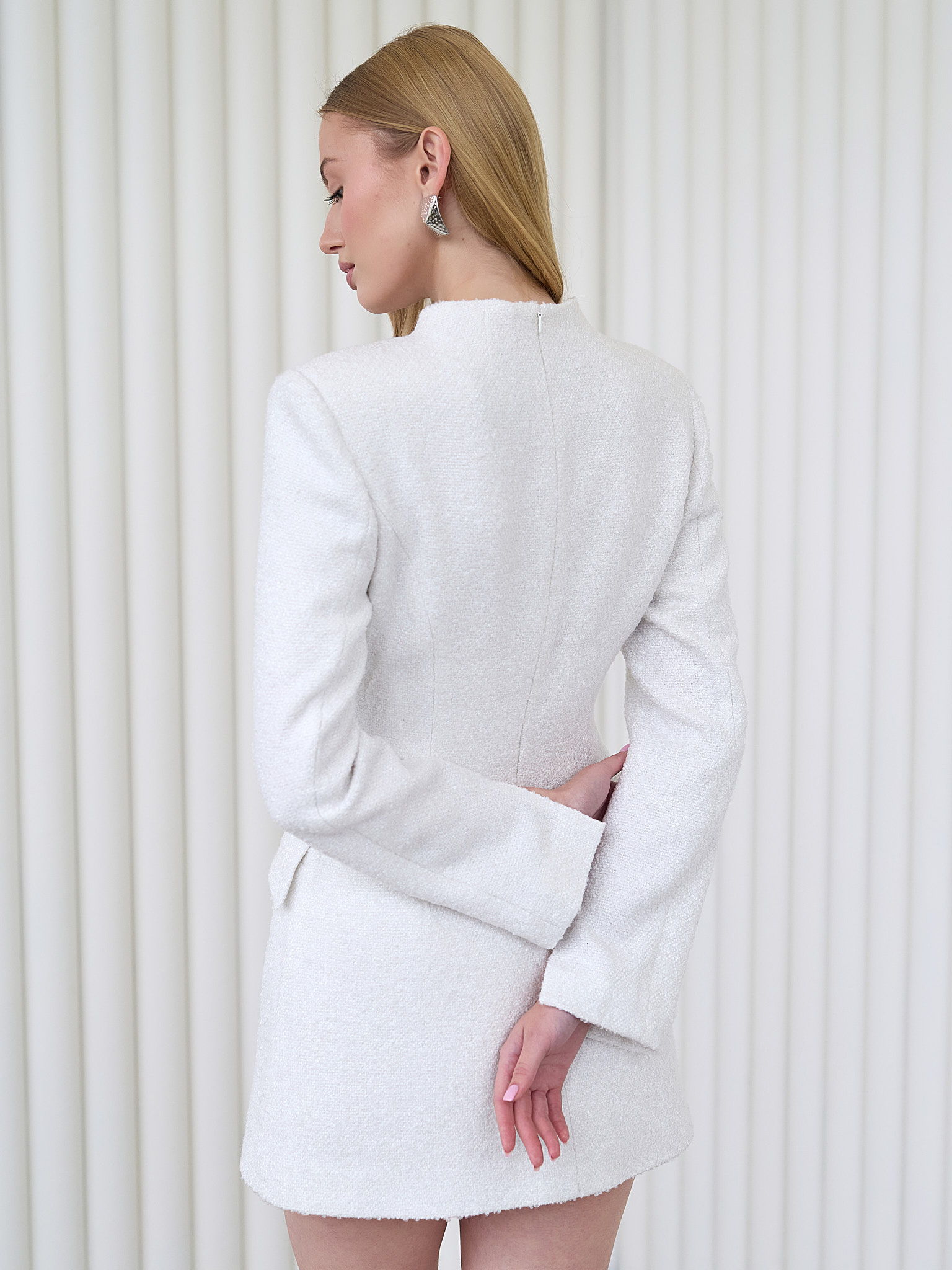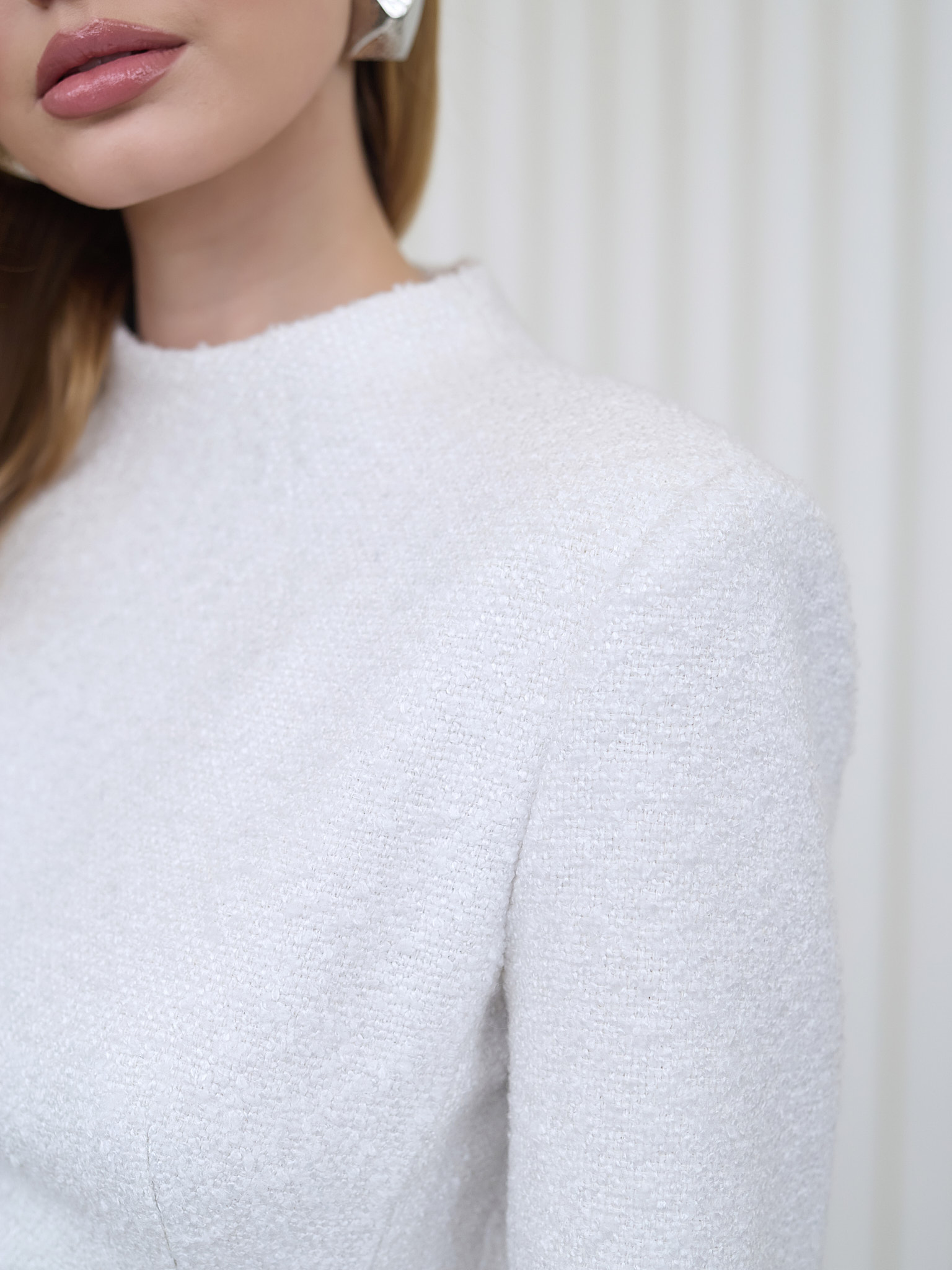 Стильный и женственный образ для любого случая. Оно подчёркивает фигуру, придавая образу изящество и элегантность. Молочный цвет универсален и легко сочетается с различными аксессуарами и обувью.