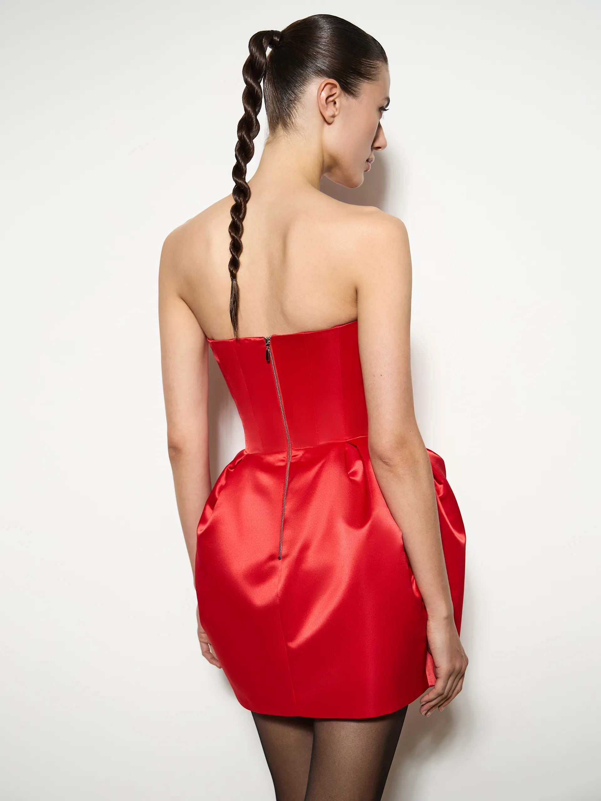 На смену oversize фасонам приходят максимально женственные и романтичные силуэты. Платье Opera — наша главная новинка. Модель на корсетной основе сидит идеально по фигуре, максимально подчеркивая изящную талию. А благодаря юбке-тюльпан создается красивый силуэт песочных часов. Открытые плечи и зона декольте добавляют образу соблазнительности и нежности. Это коктейльное платье — прекрасный вариант для новогодней ночи и многих других мероприятий. Деликатный блеск атласной ткани выглядит очень эффектно и притягательно. В рельефных и боковых швах изделия установлен китовый ус, который прекрасно держит форму в любом положении тела. Насыщенной красный оттенок в сочетании с силуэтом lady like сделают вас главной героиней любого события.