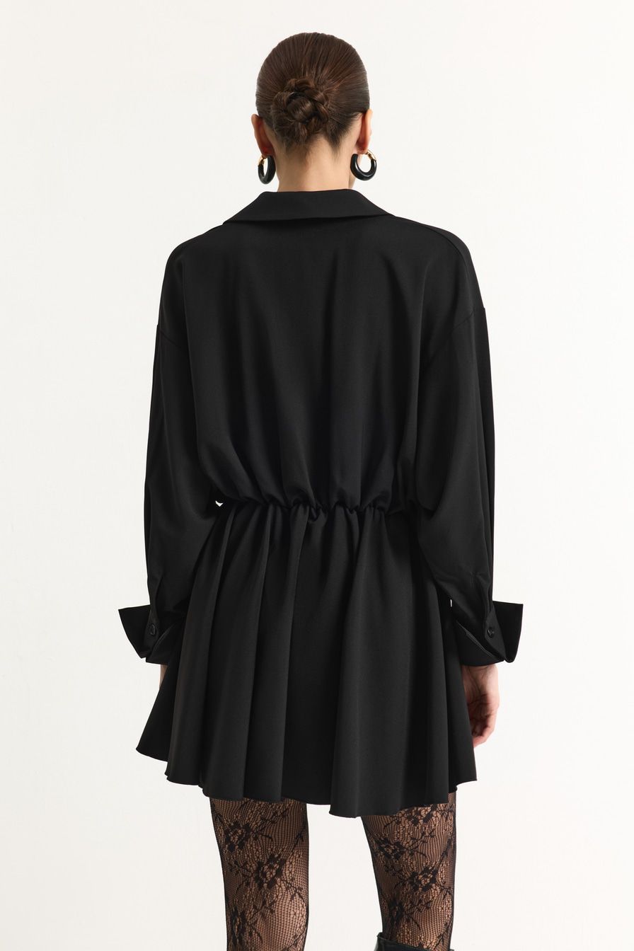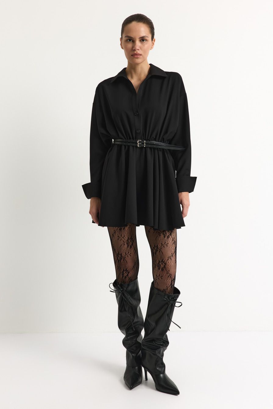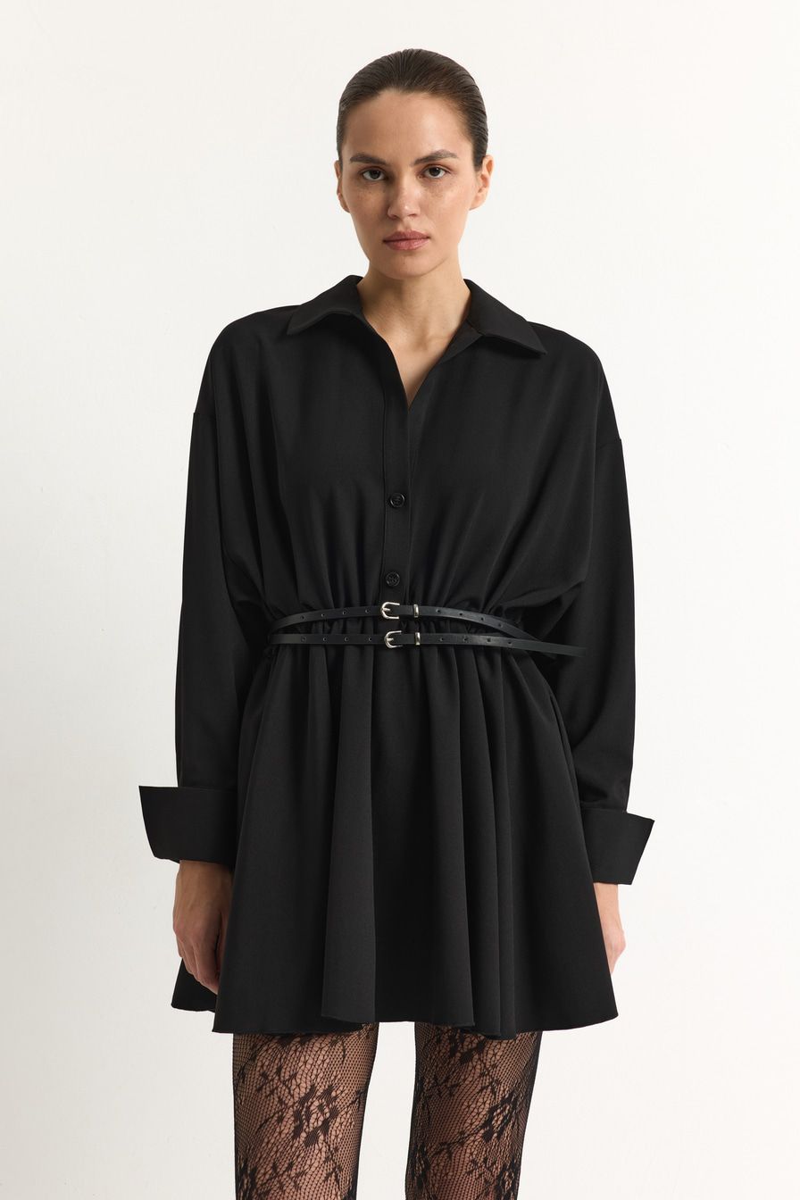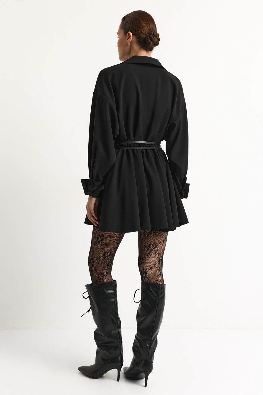 Платье-рубашка с глубоким V-образным вырезом – модель черного цвета.