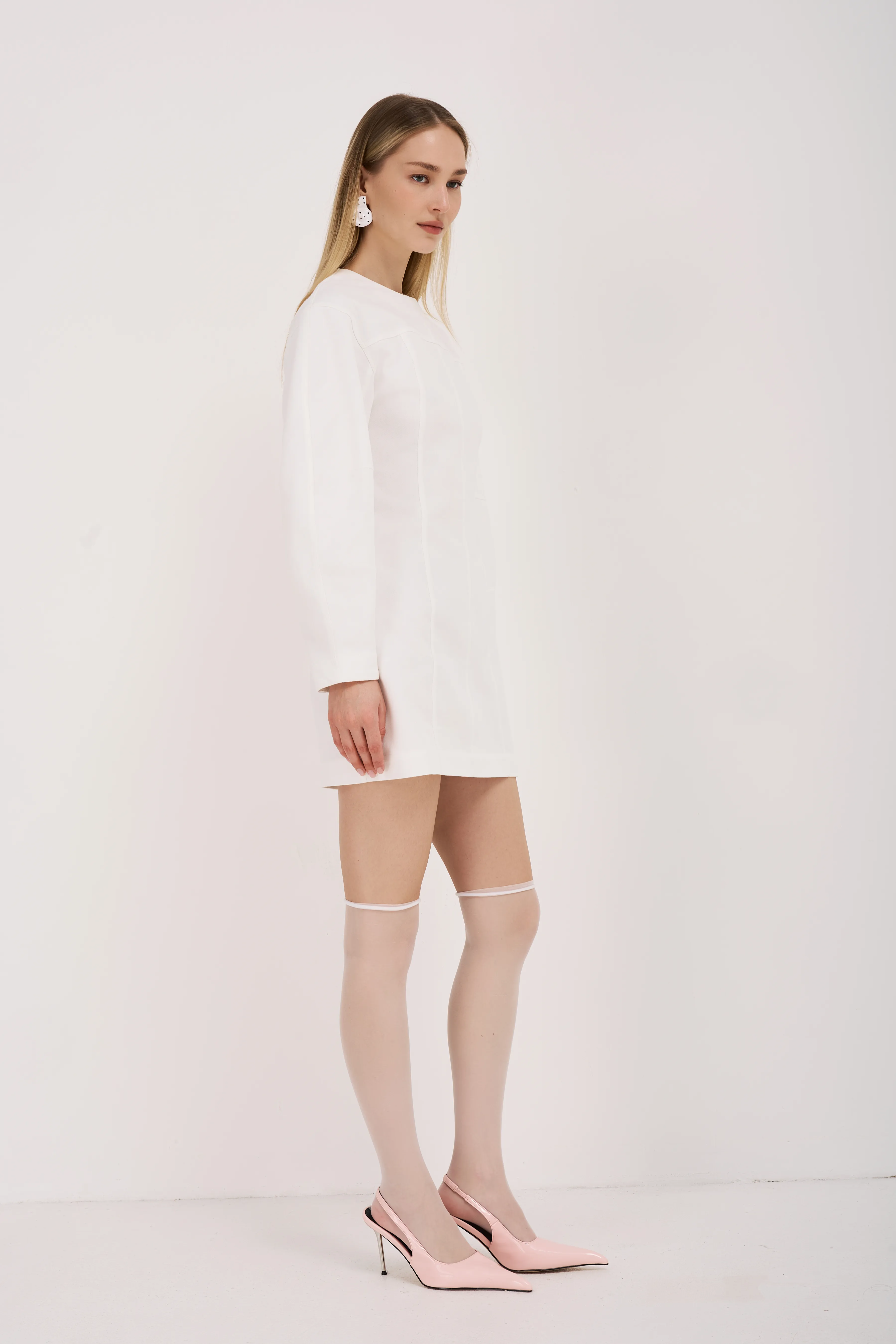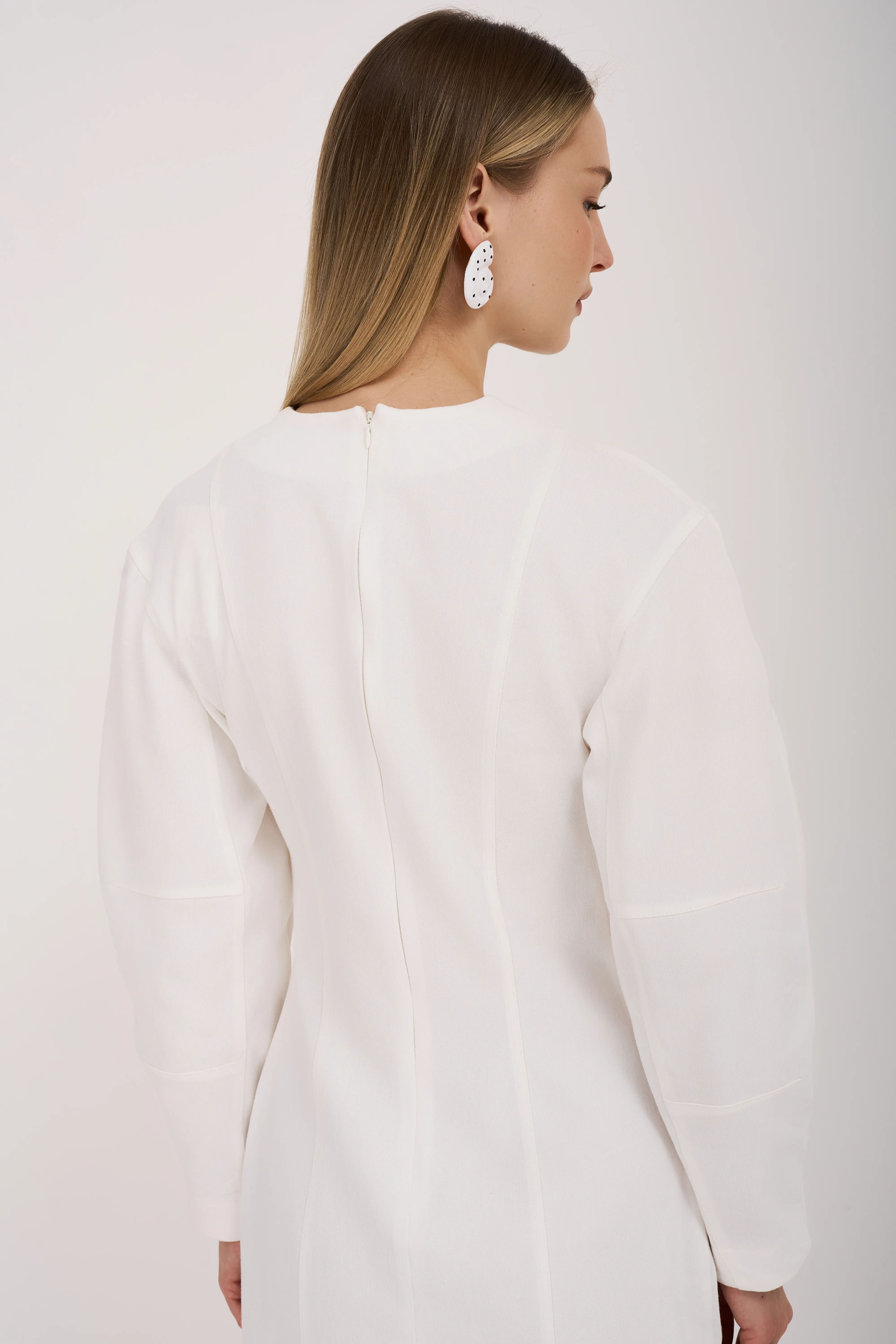 Идеальный выбор для создания стильного и комфортного образа. Изготовлено из мягкого денима молочного цвета, оно отличается лёгкостью и приятной текстурой.