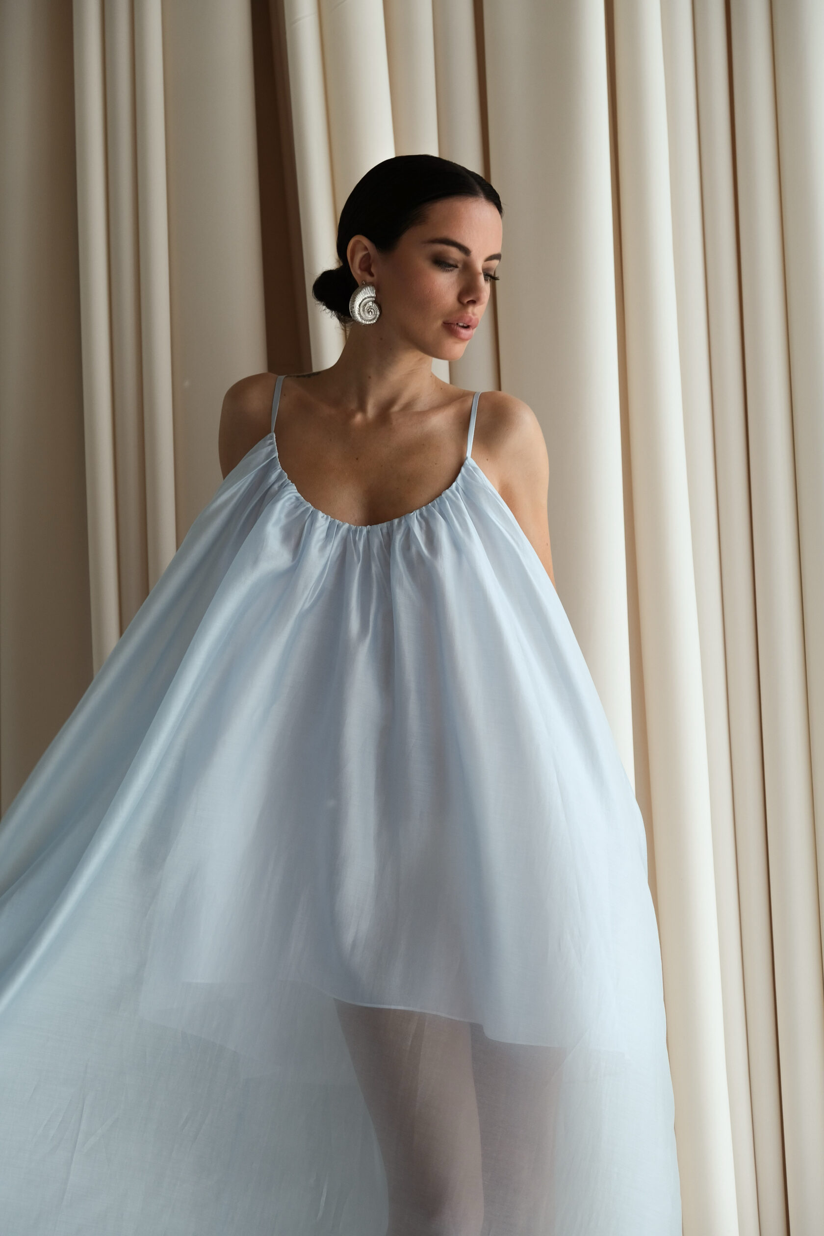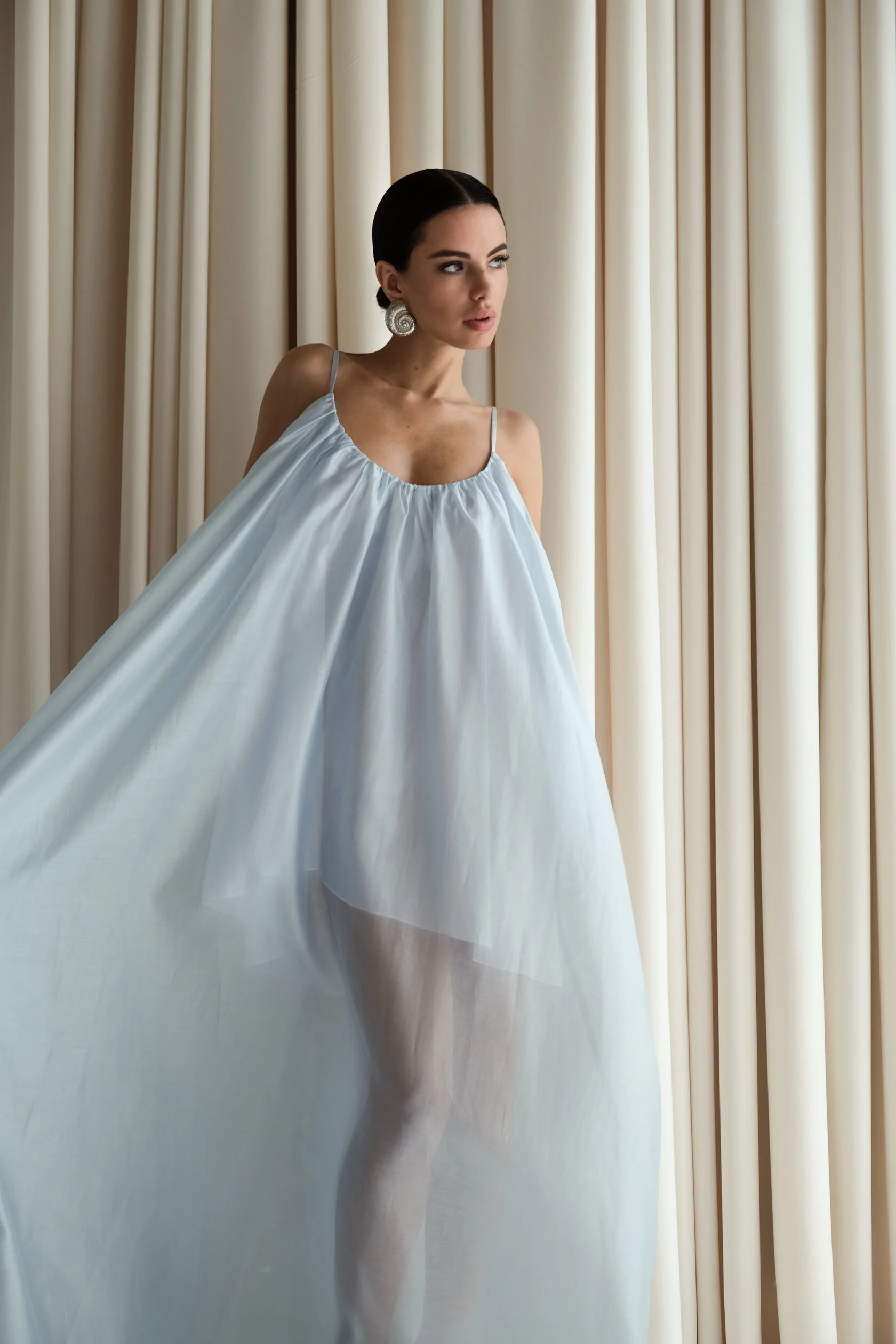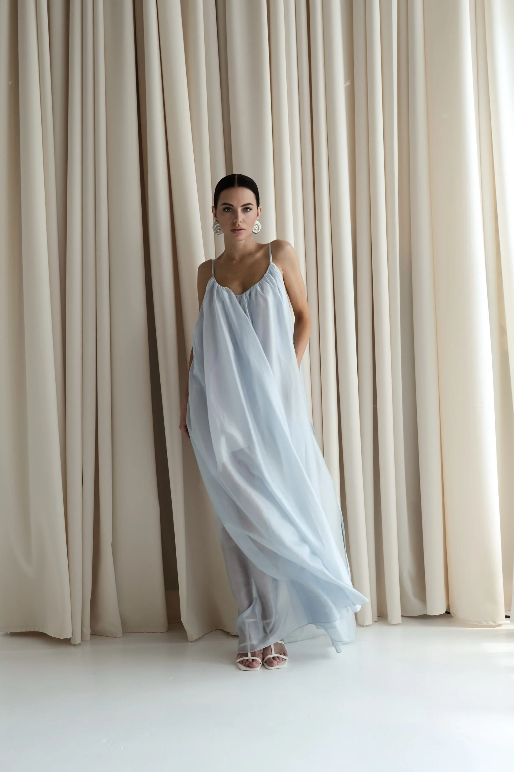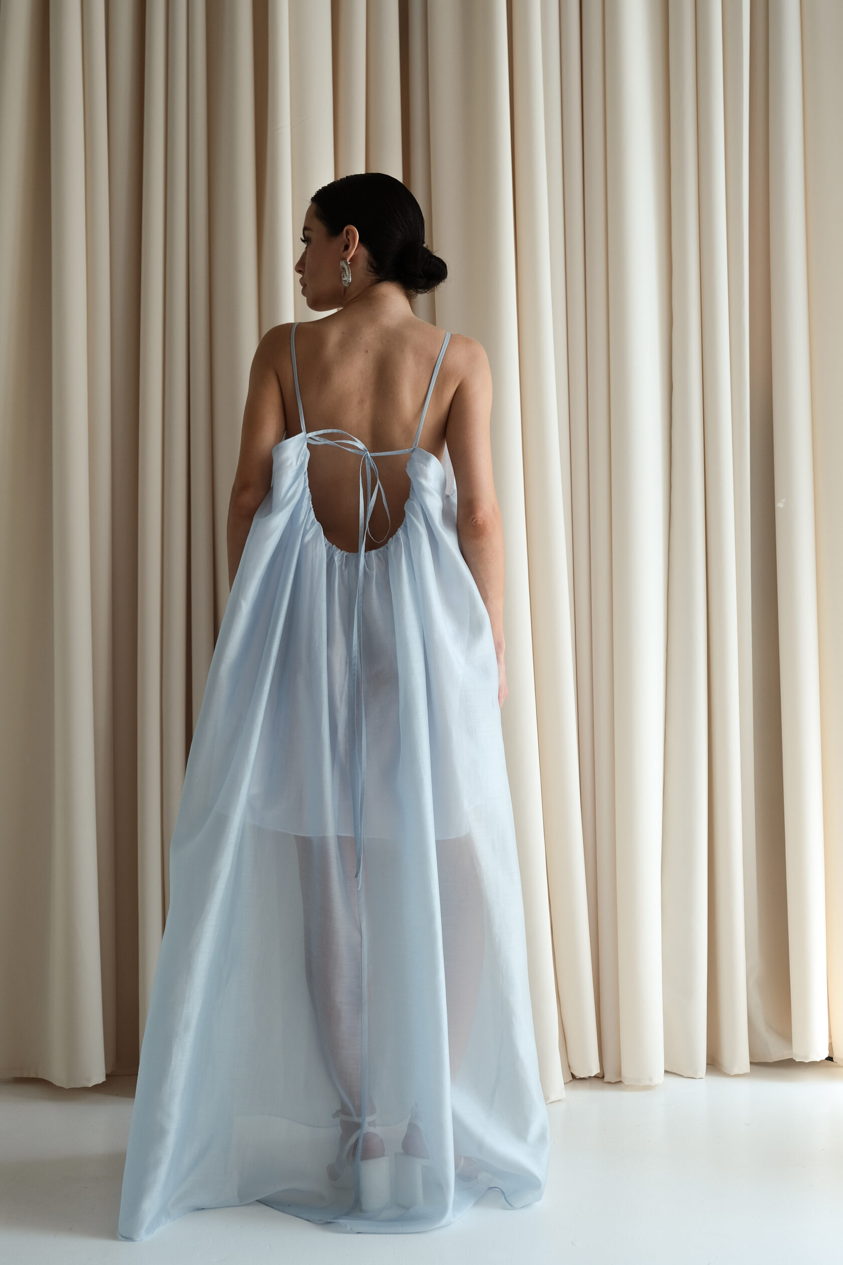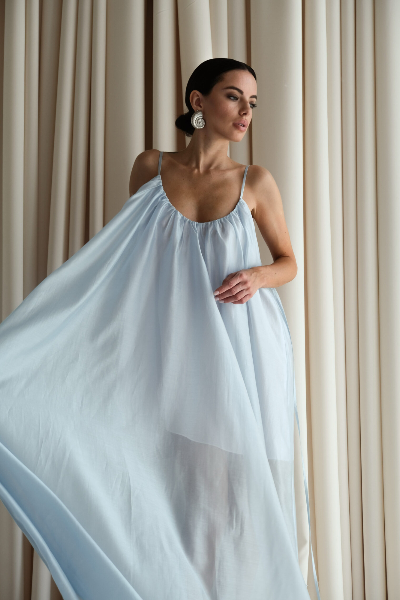 Воздушный сарафан длины макси с открытой спиной на тонких бретелях - идеальный выбор для летних теплых дней.