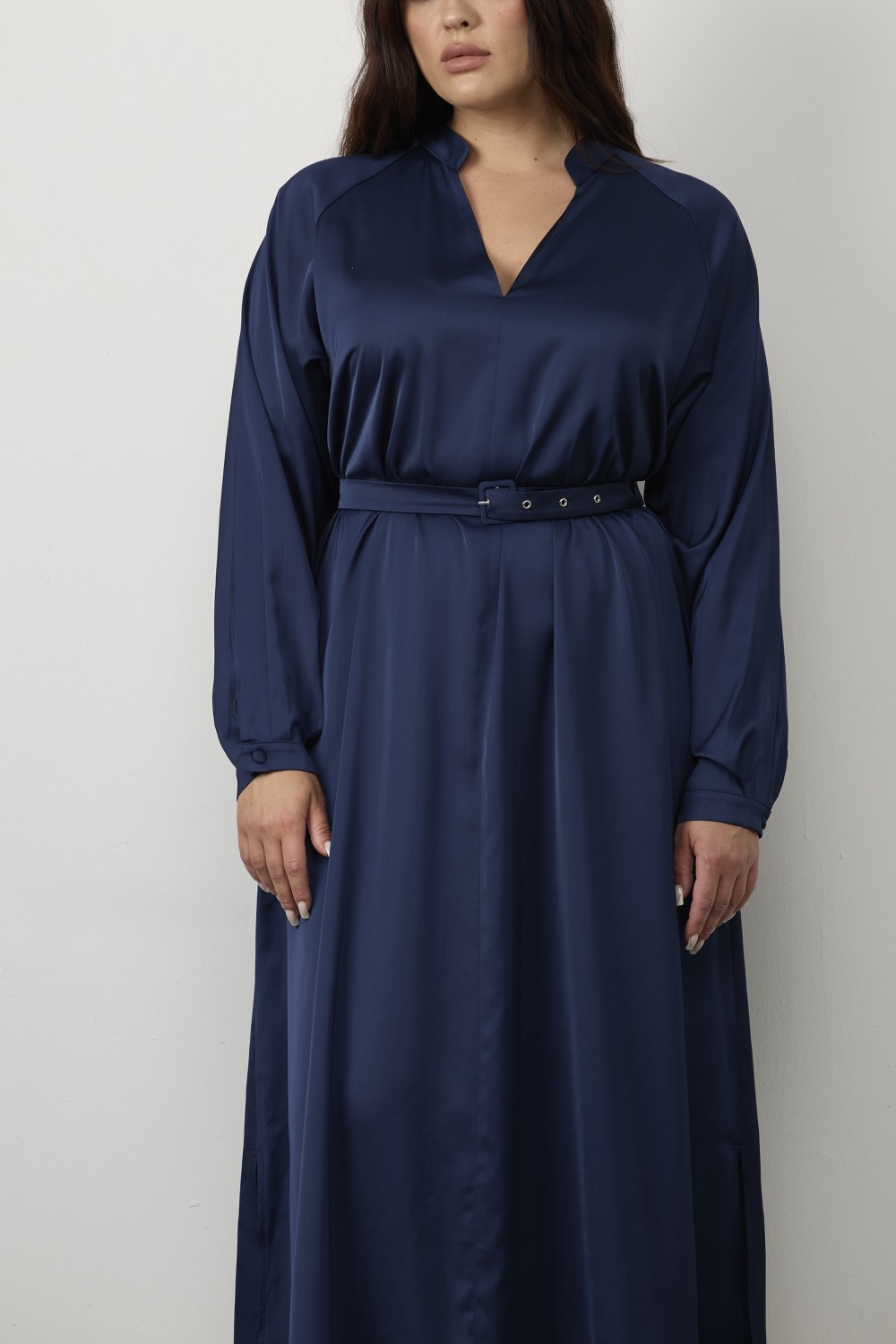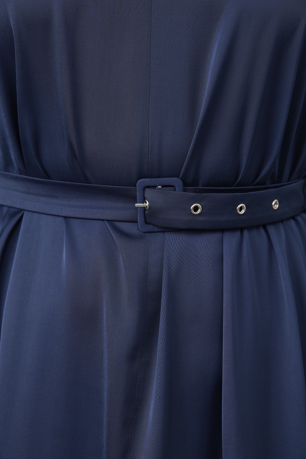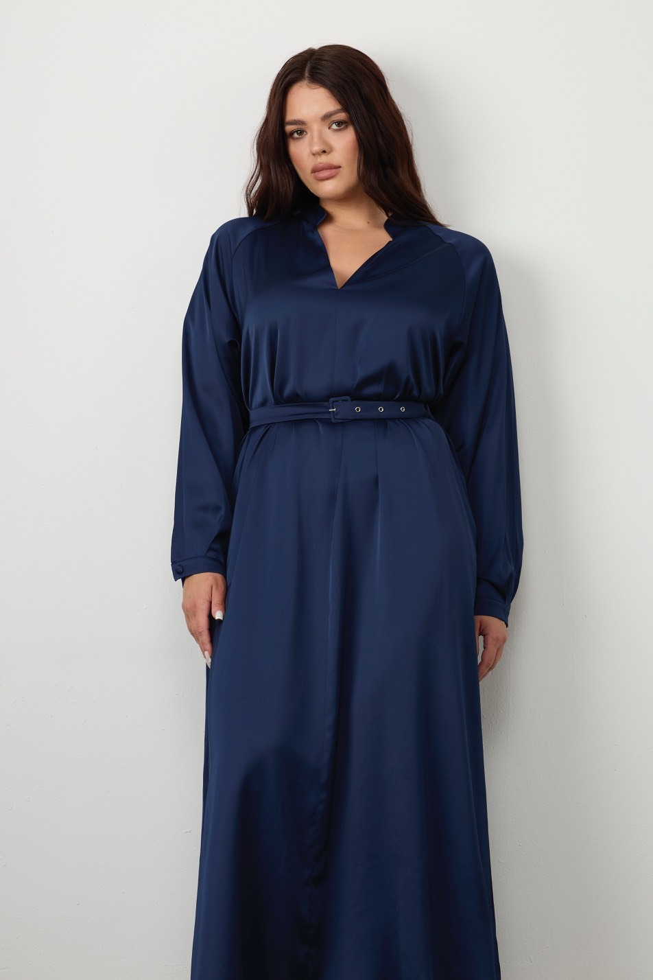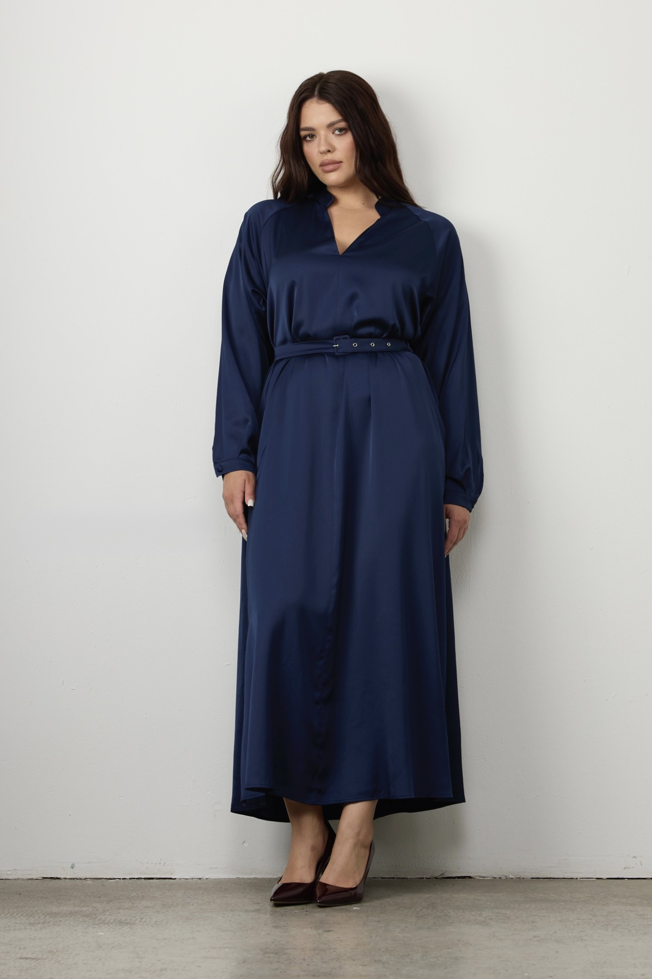 Струящееся платье трапециевидного силуэта с длинными рукавами. Острый V-образный вырез визуально вытягивает шею и зону декольте. Съемный пояс в комплекте позволяет подчеркнуть линию талии. Отличный выбор для офиса, деловых встреч, повседневных образов и торжественных мероприятий. Нужно лишь добавить к образу соответствующие обувь и аксессуары.