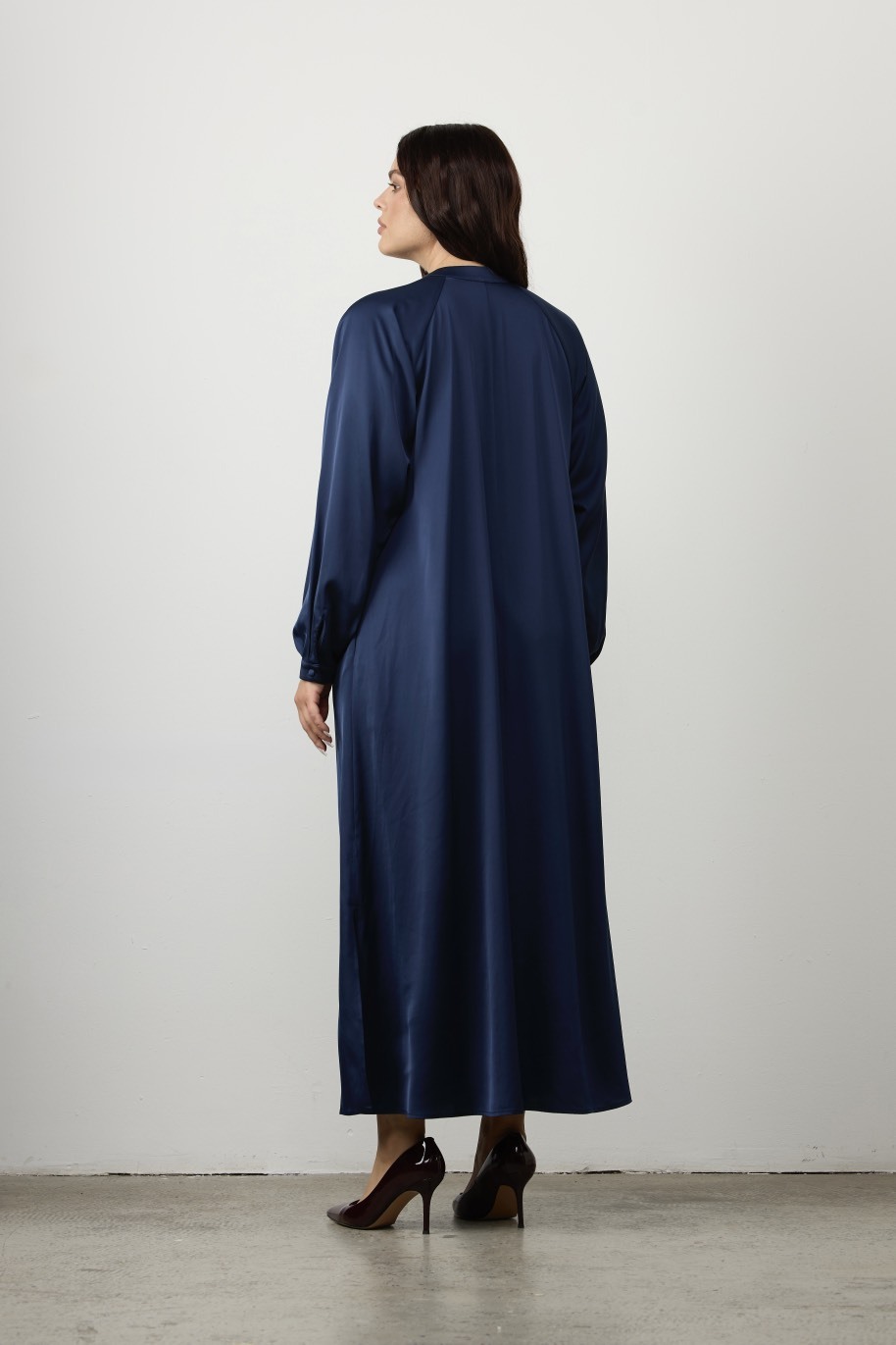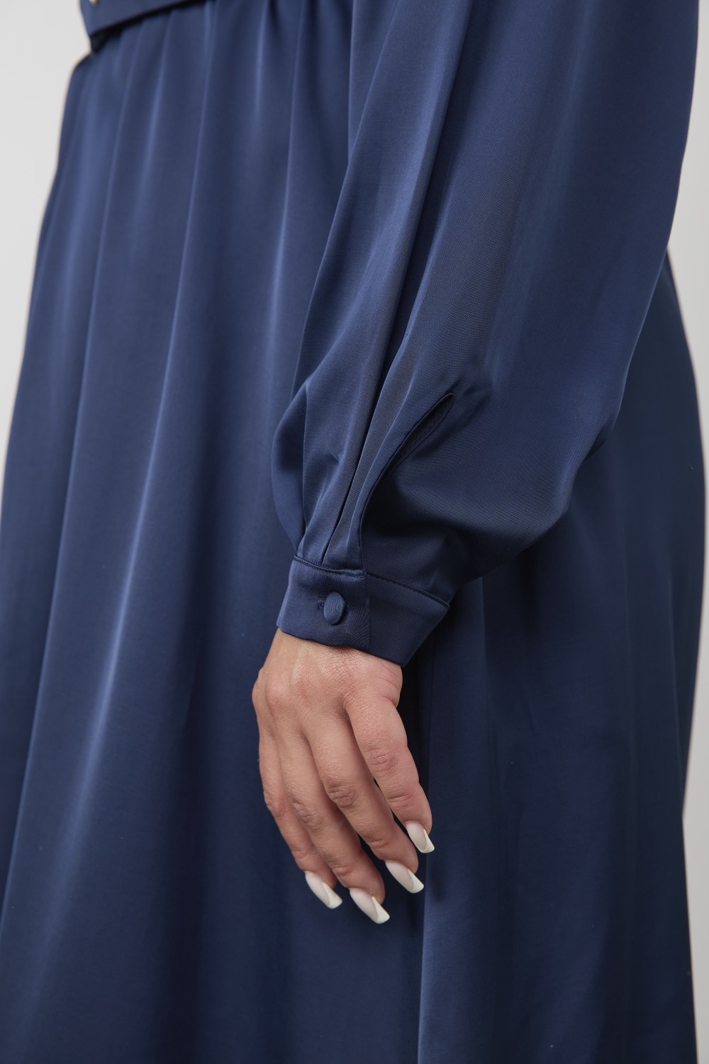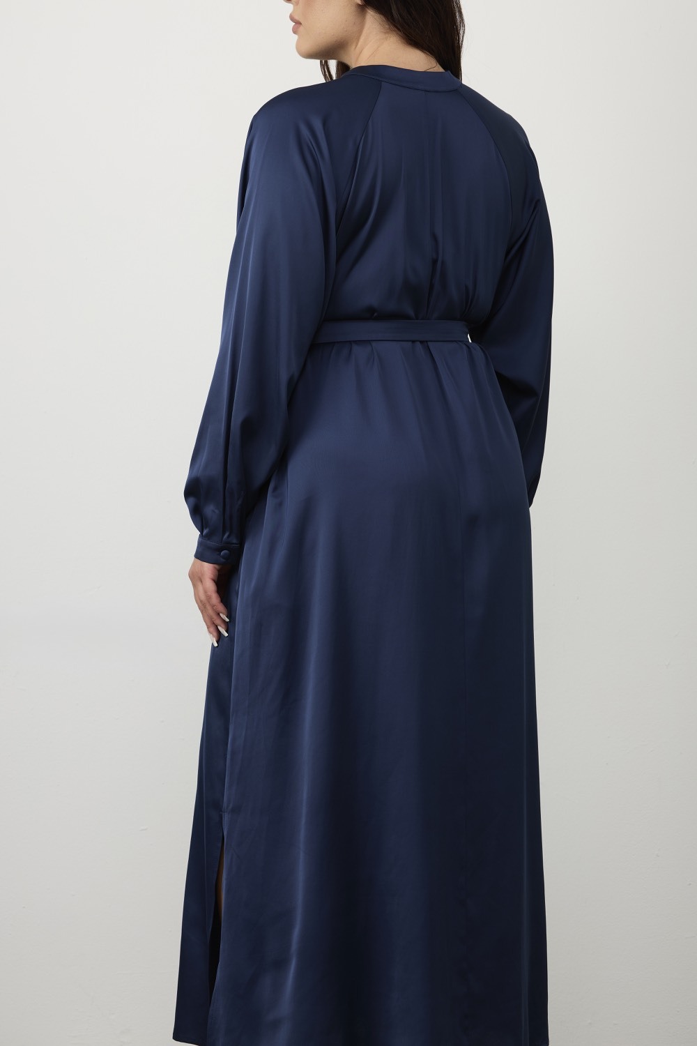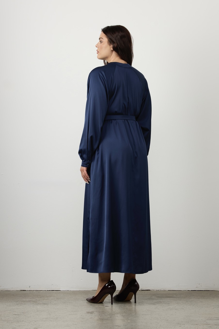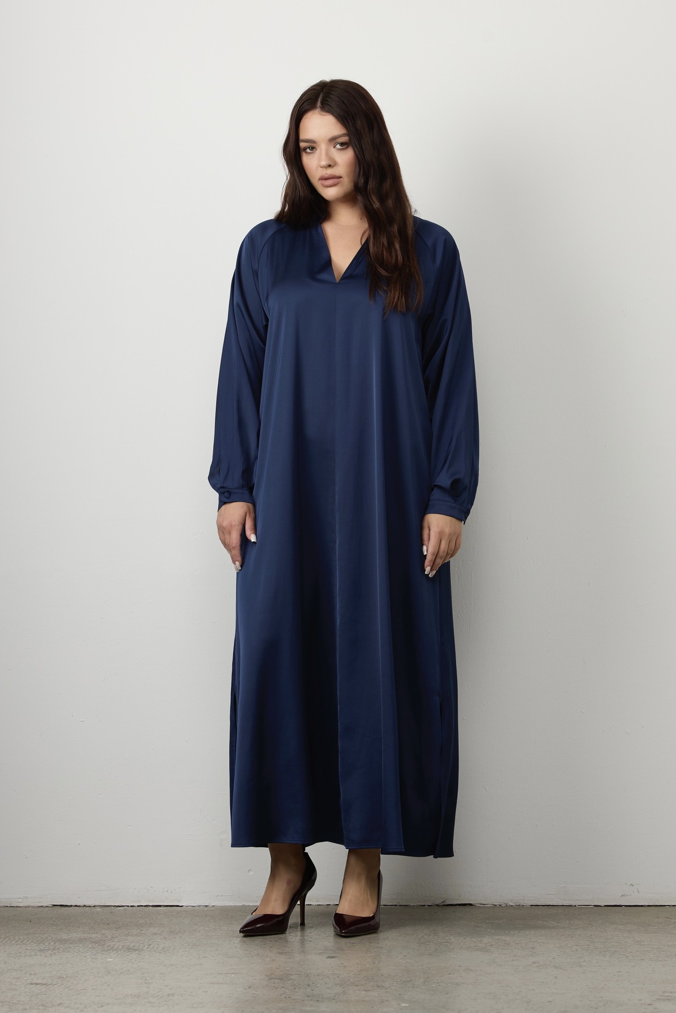 Струящееся платье трапециевидного силуэта с длинными рукавами. Острый V-образный вырез визуально вытягивает шею и зону декольте. Съемный пояс в комплекте позволяет подчеркнуть линию талии. Отличный выбор для офиса, деловых встреч, повседневных образов и торжественных мероприятий. Нужно лишь добавить к образу соответствующие обувь и аксессуары.