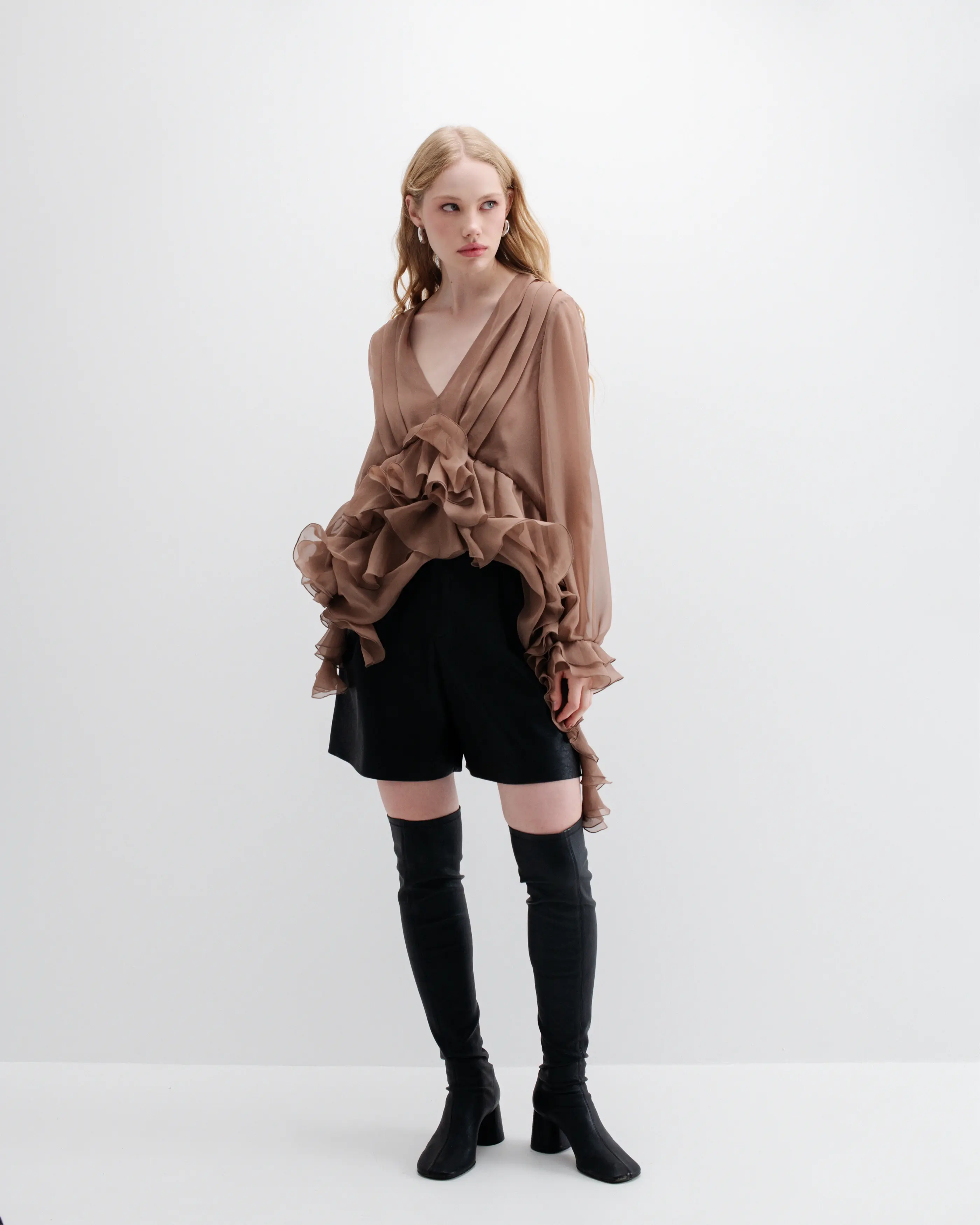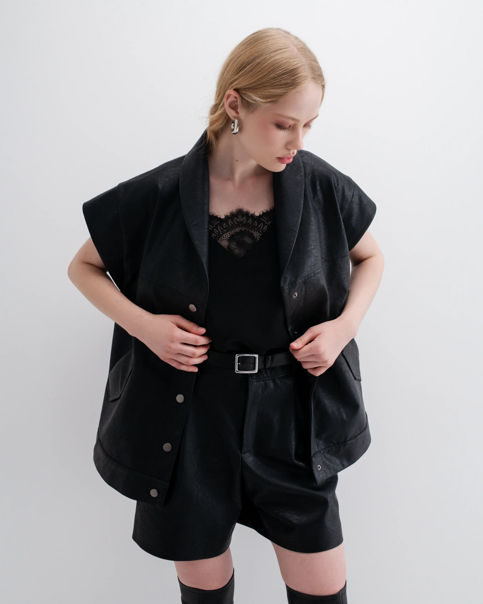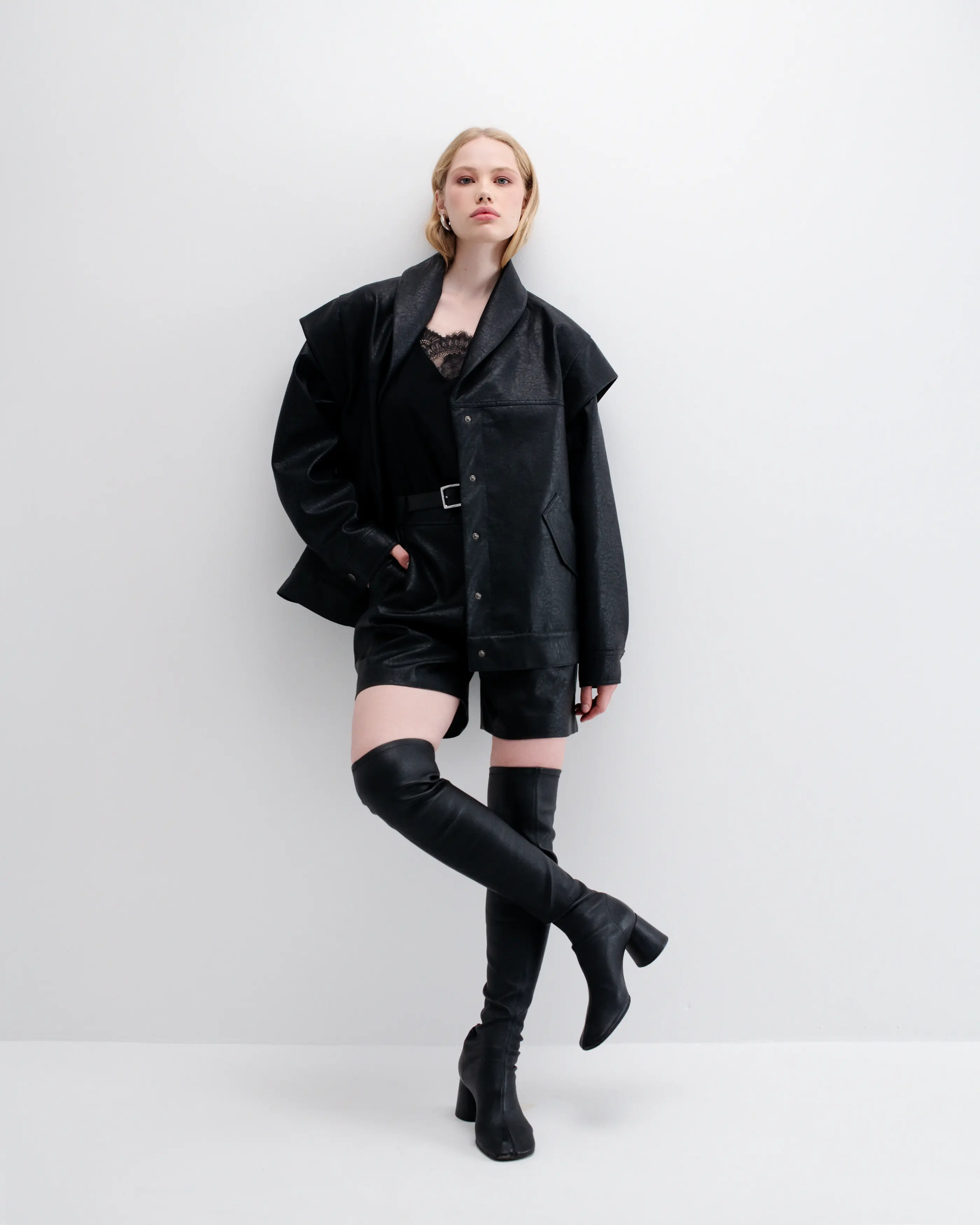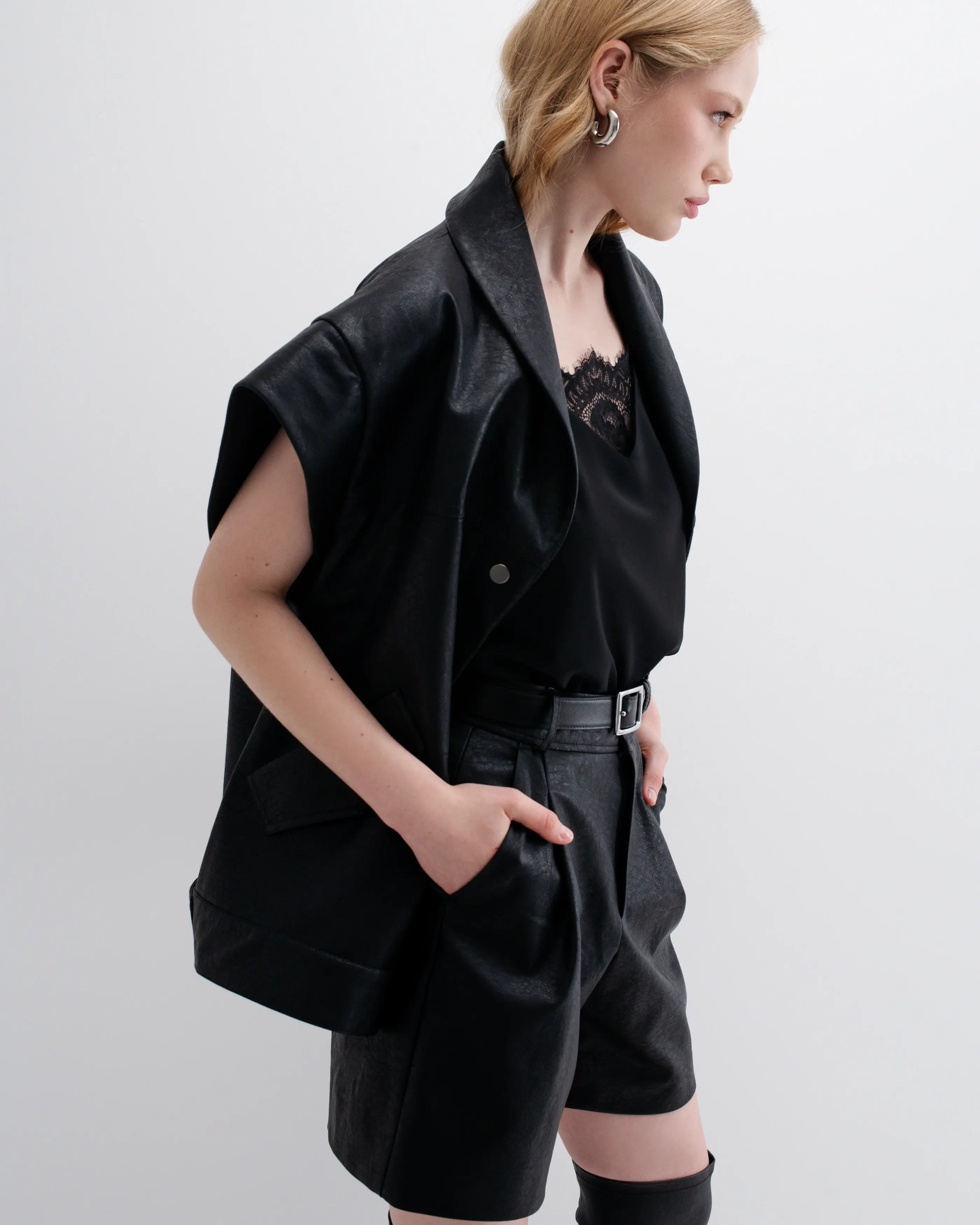 В этом сезоне дизайнеры бренда обращаются к фактурной коже и изделиям из неё. Казалось бы, как "оживить" столь непростой в обработке материал? Мы нашли ответ. Придать лёгкость и форму узнаваемому "брючному" силуэту помогают вытачки на передней части изделия, комфорта добавят наши любимые карманы, а чтобы образ был сдержанным, шорты оснастили шлевками для аксессуаров на ваш выбор: ремень, обвес или шнурок помогут разнообразить образ в зависимости от стилистической задачи.