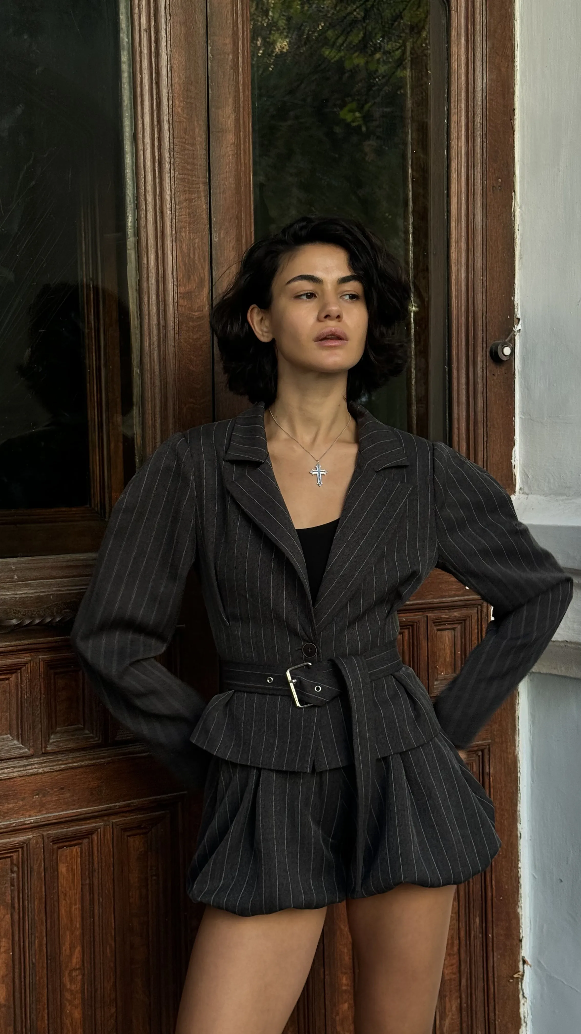 Шорты из костюмной ткани. В сочетании с пиджаком из аналогичной ткани создают необычный комплект.