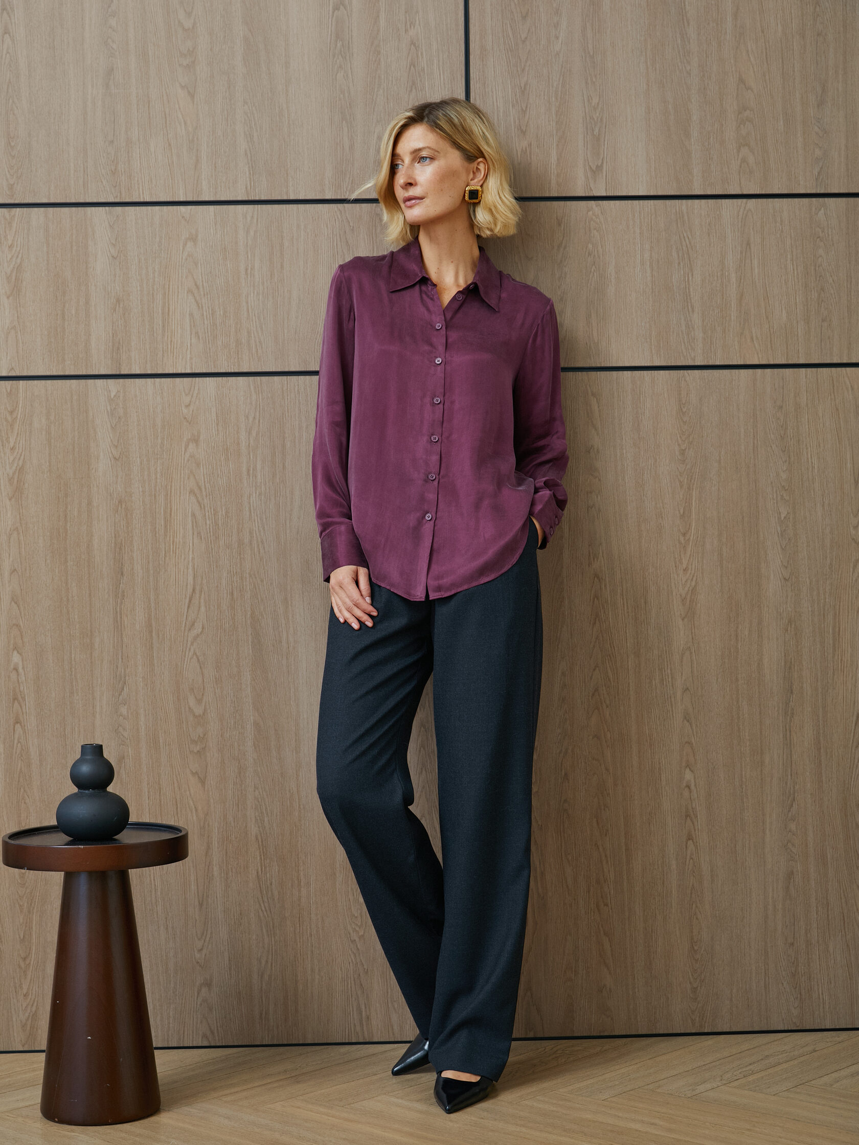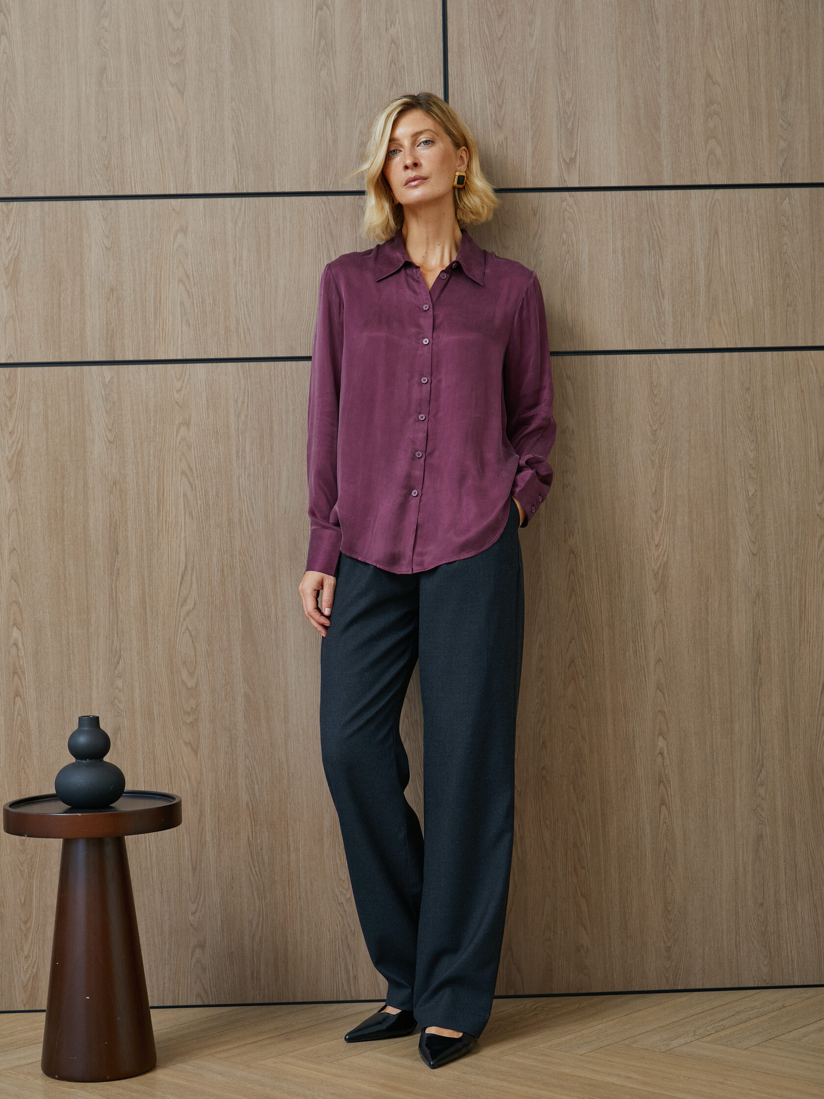 Универсальная вещь, которая станет основой для создания разнообразных образов. Изготовленная из приятной на ощупь купры, рубашка обеспечивает комфорт в носке и долговечность. Бордовый цвет придаёт образу элегантность и глубину, делая его подходящим как для повседневных ситуаций, так и для более формальных мероприятий.