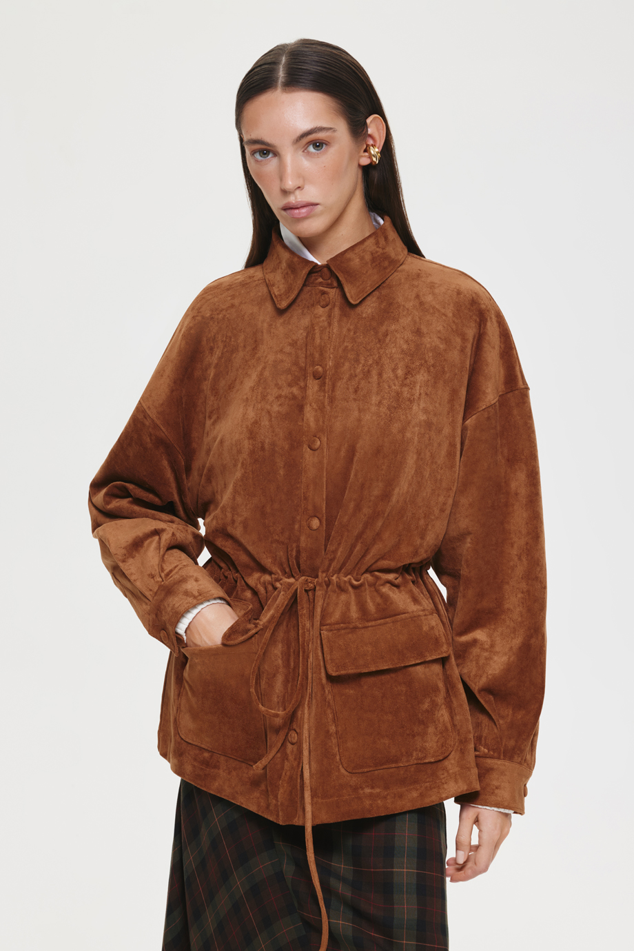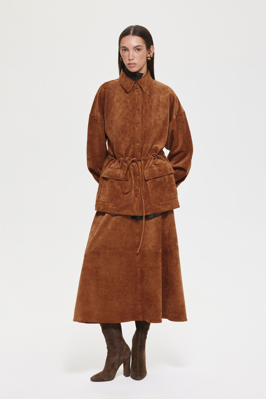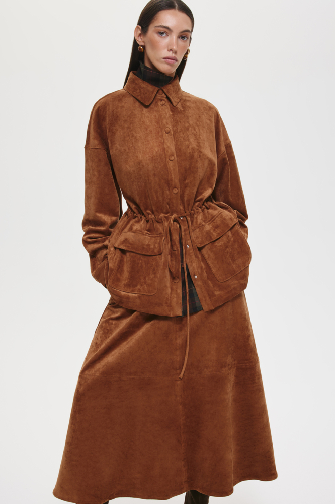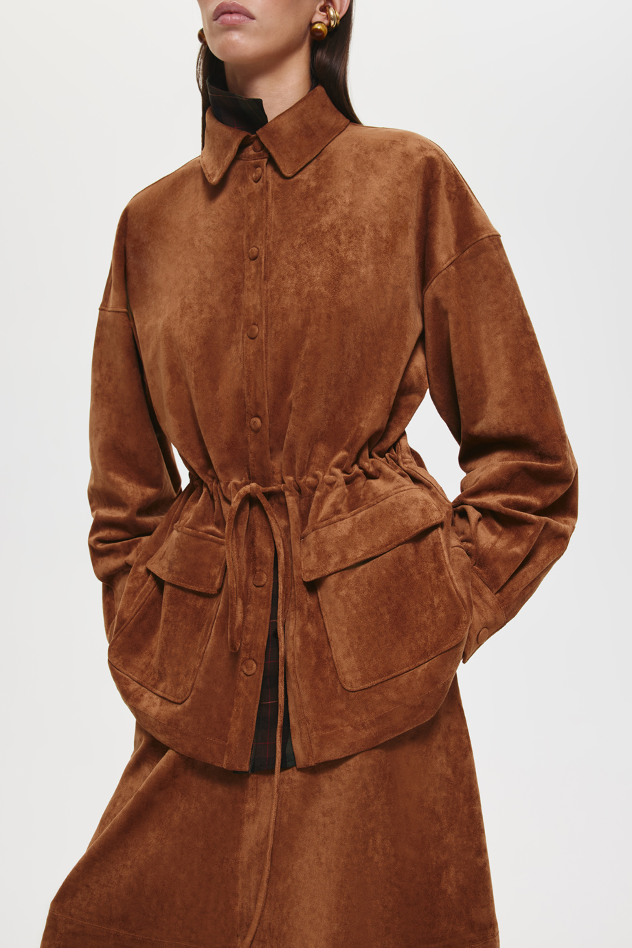 Стильная рубашка из экозамши — идеальный выбор для создания неповторимого образа. Прекрасно сочетается с юбкой из того же материала, что позволит вам выглядеть модно и гармонично. Этот элемент гардероба добавит вашему образу нотку элегантности и уюта.