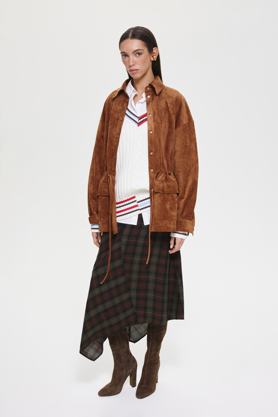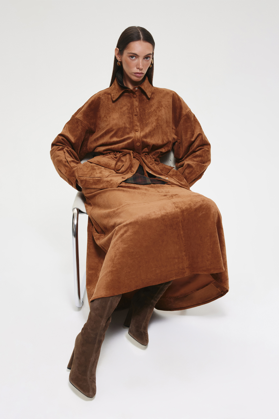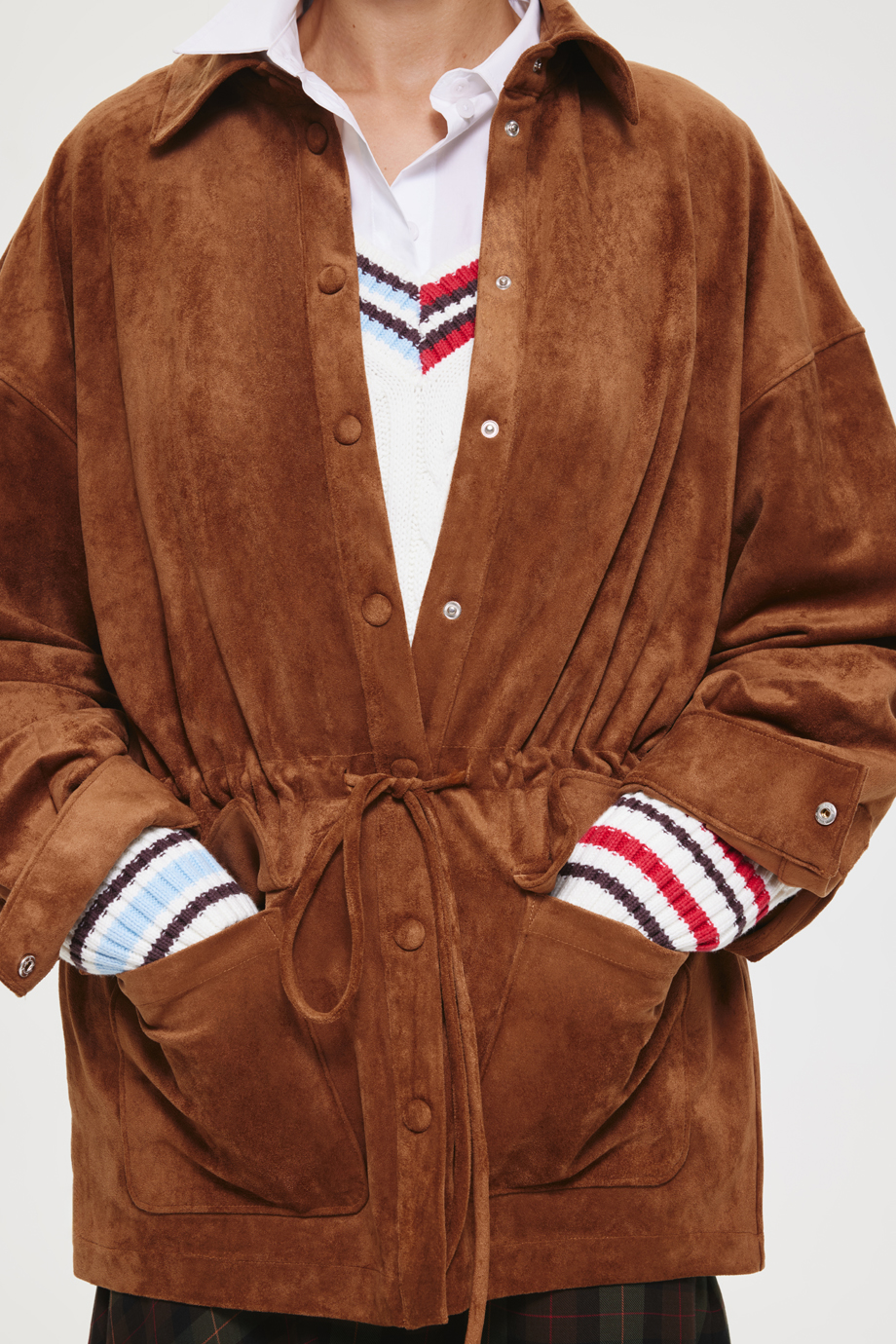 Стильная рубашка из экозамши — идеальный выбор для создания неповторимого образа. Прекрасно сочетается с юбкой из того же материала, что позволит вам выглядеть модно и гармонично. Этот элемент гардероба добавит вашему образу нотку элегантности и уюта.