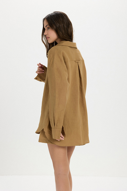 - Отложной воротник и центральная застежка на контрастных пуговицах