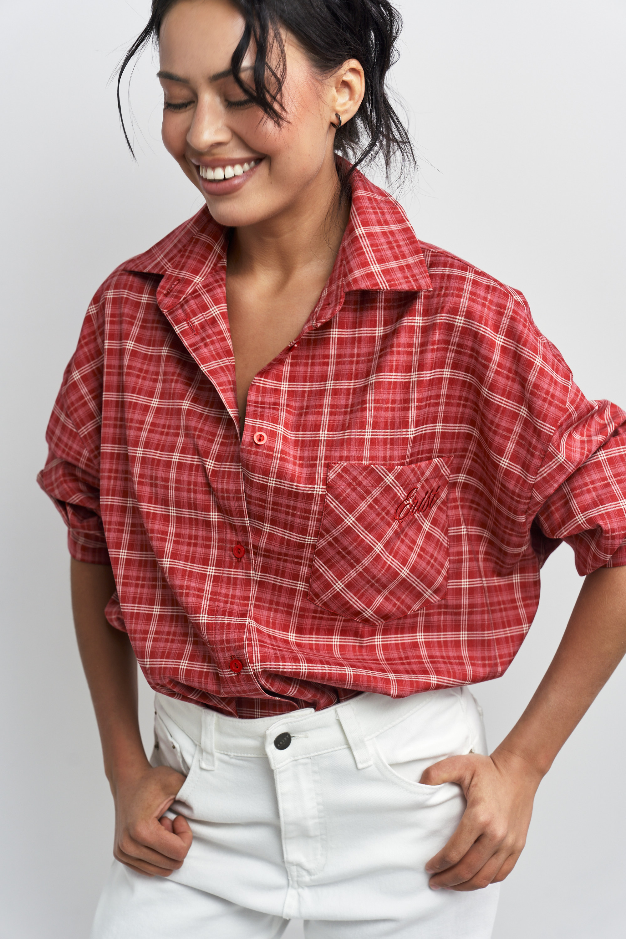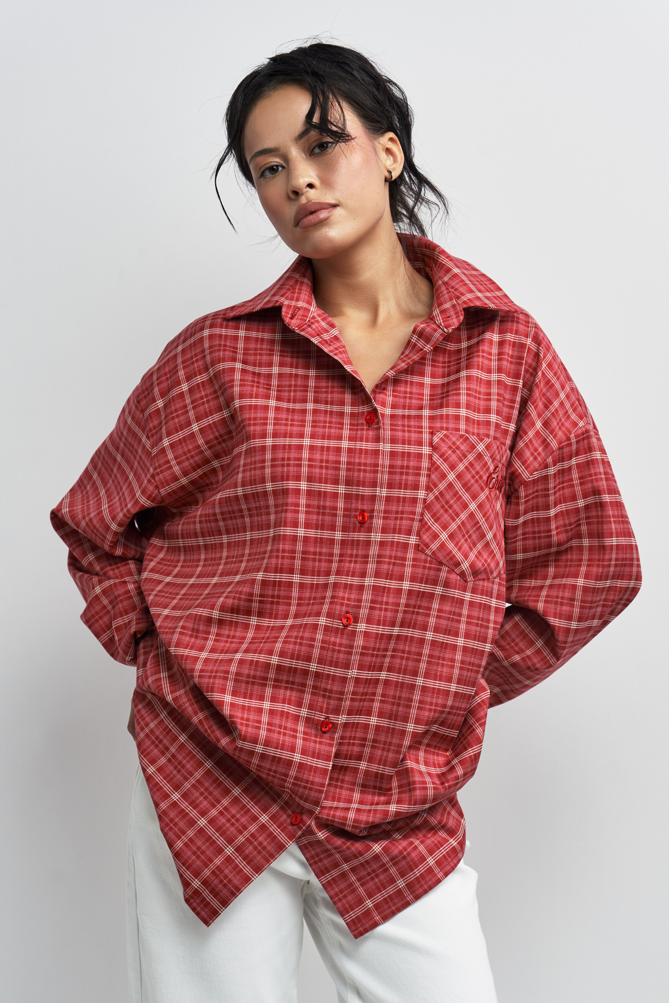 Рубашка в клетку с карманом Волнующий красный