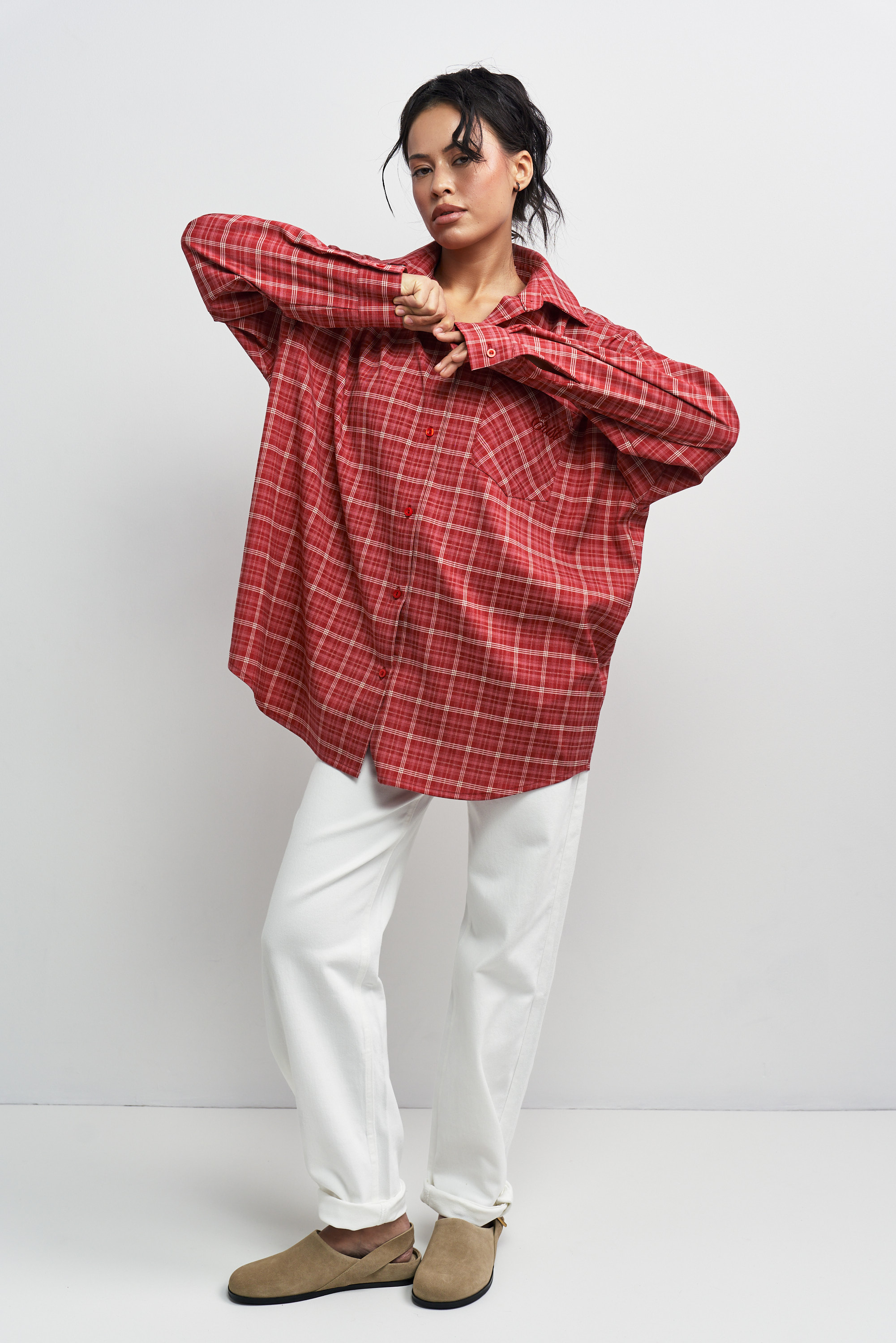 Свободный и расслабленный силуэт, который легко вписывается в гардероб. Мягкая ткань и удлинённый крой делают её удобной для наслоения: носите как рубашку или как лёгкую верхнюю вещь поверх футболки. Акцентная деталь — фирменная аккуратная вышивка на кармане добавляет стиля.