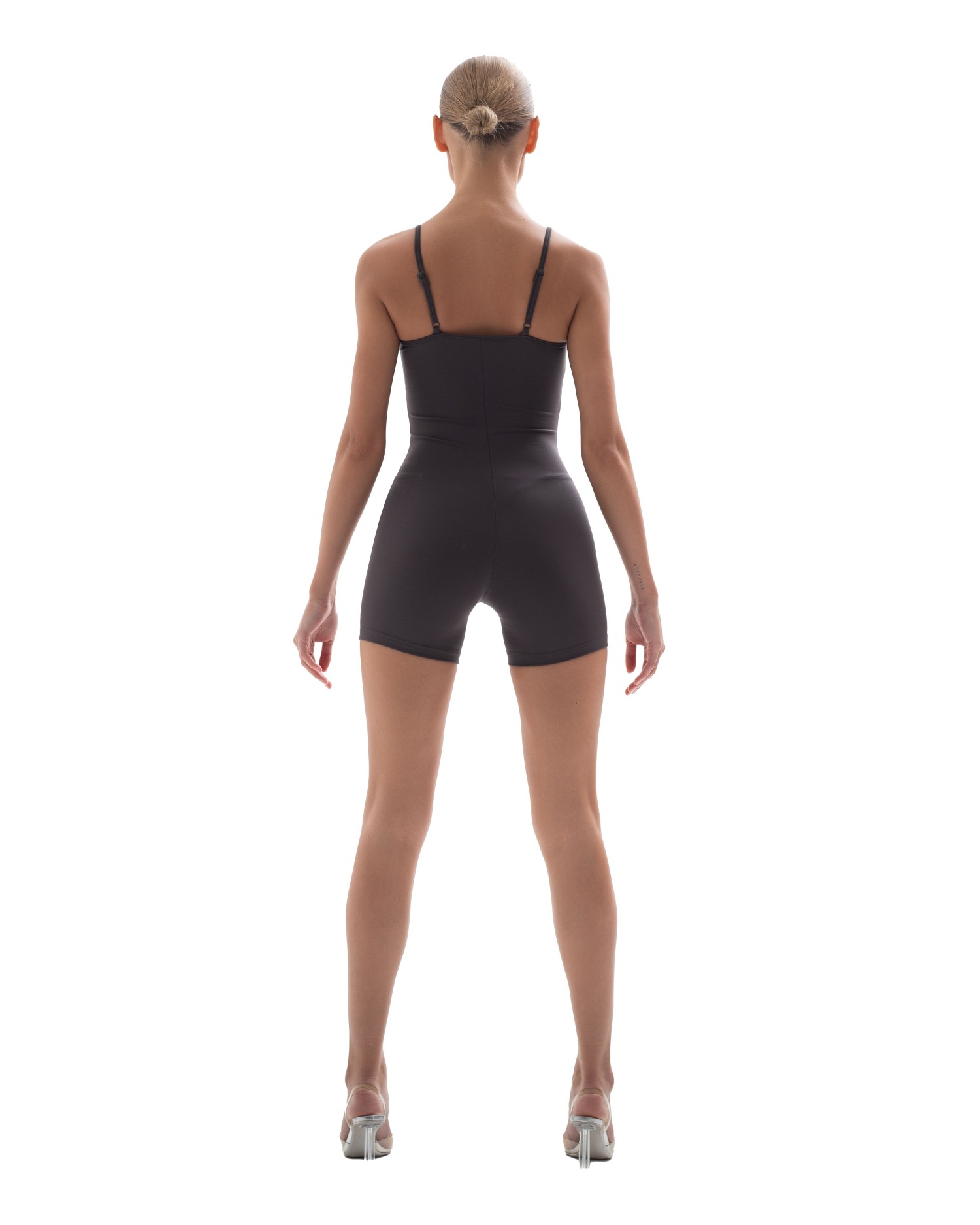 Комбинезон на тонких регулирующихся бретелях. Выполнен из эластичного материала, облегающего кроя. Детали: оригинальный металлизированный принт suborbia на груди.