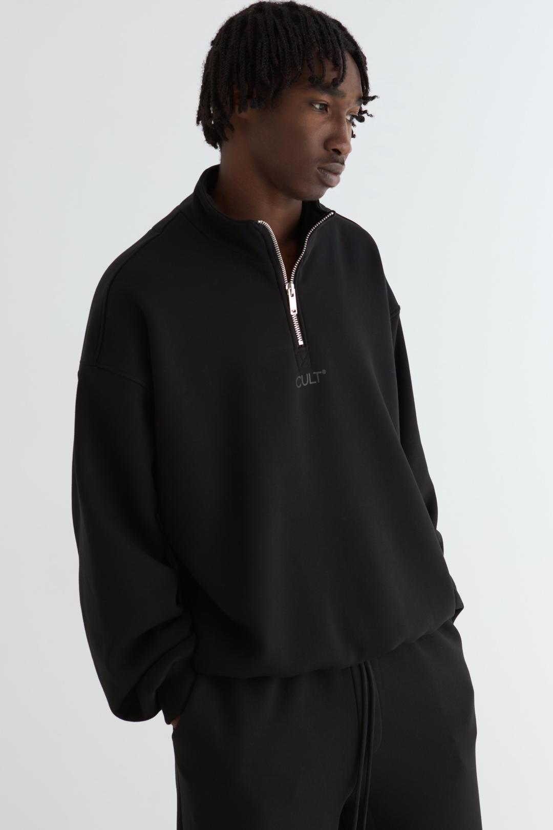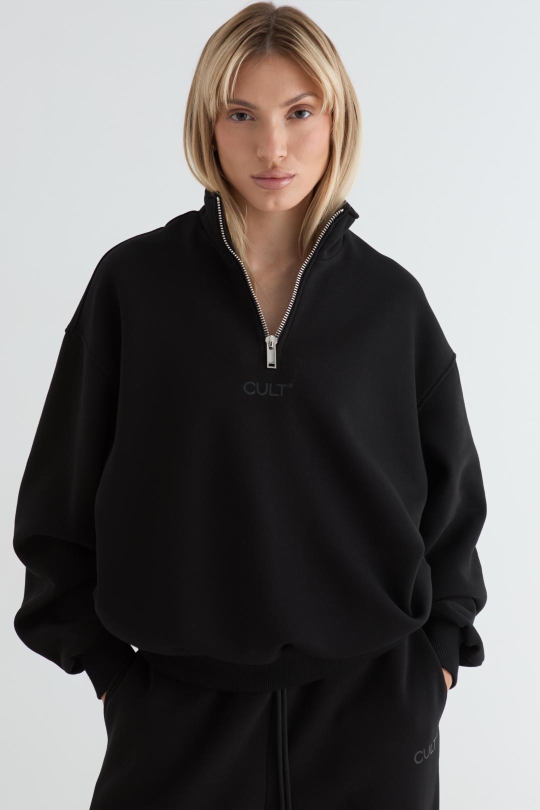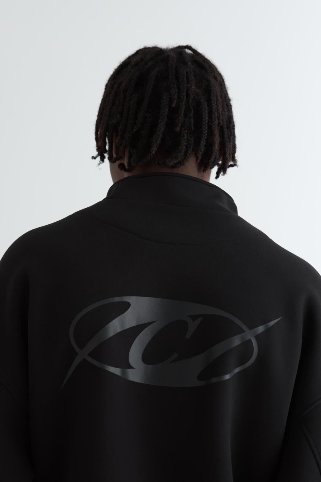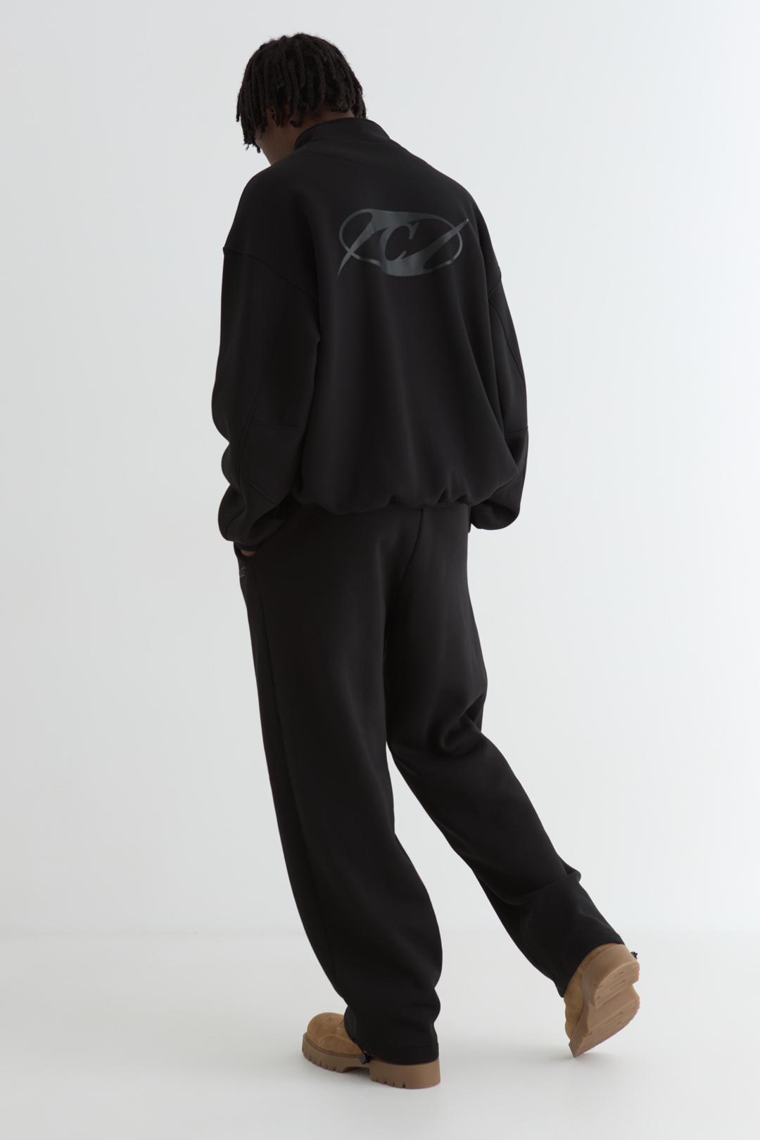 Анорак оверсайз со спущенным плечом из футера трехнитки с начёсом. Воротник на молнии. Манжеты и пояс из кашкорсе. По центру переда и спинки брендированные принты.