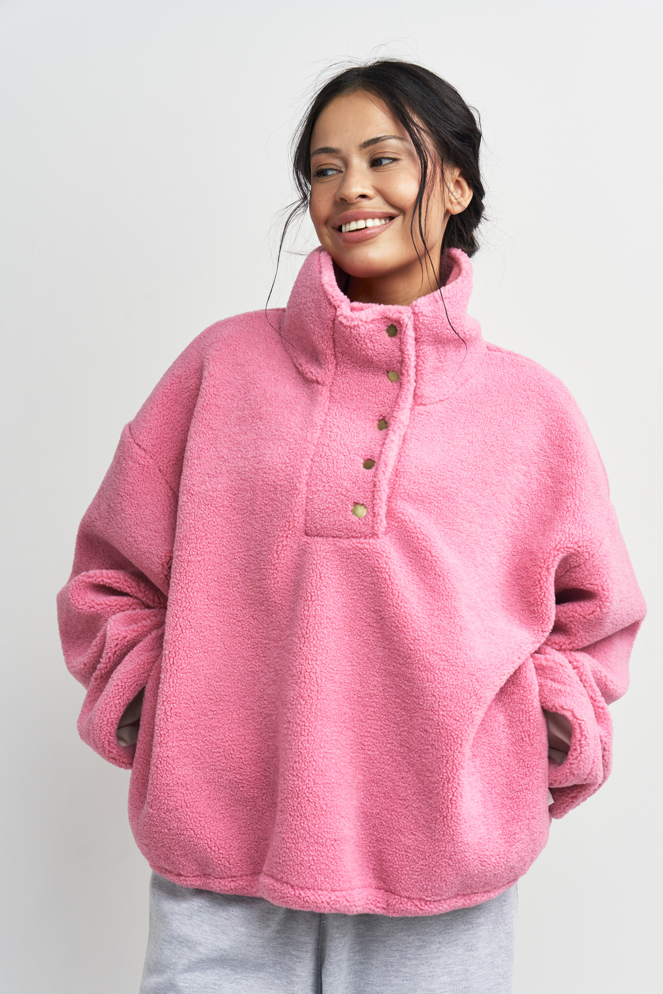 Анорак плюшевый — наш вариант верхней одежды для весны. Модель с высоким горлом на кнопках обеспечит дополнительную защиту от ветра, а кулиса по нижнему краю позволит регулировать силуэт: затянуть для лучшей защиты от непогоды или оставить свободным для комфортного образа. Идеальный выбор для прогулок в переменчивую весеннюю погоду.