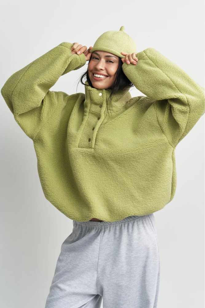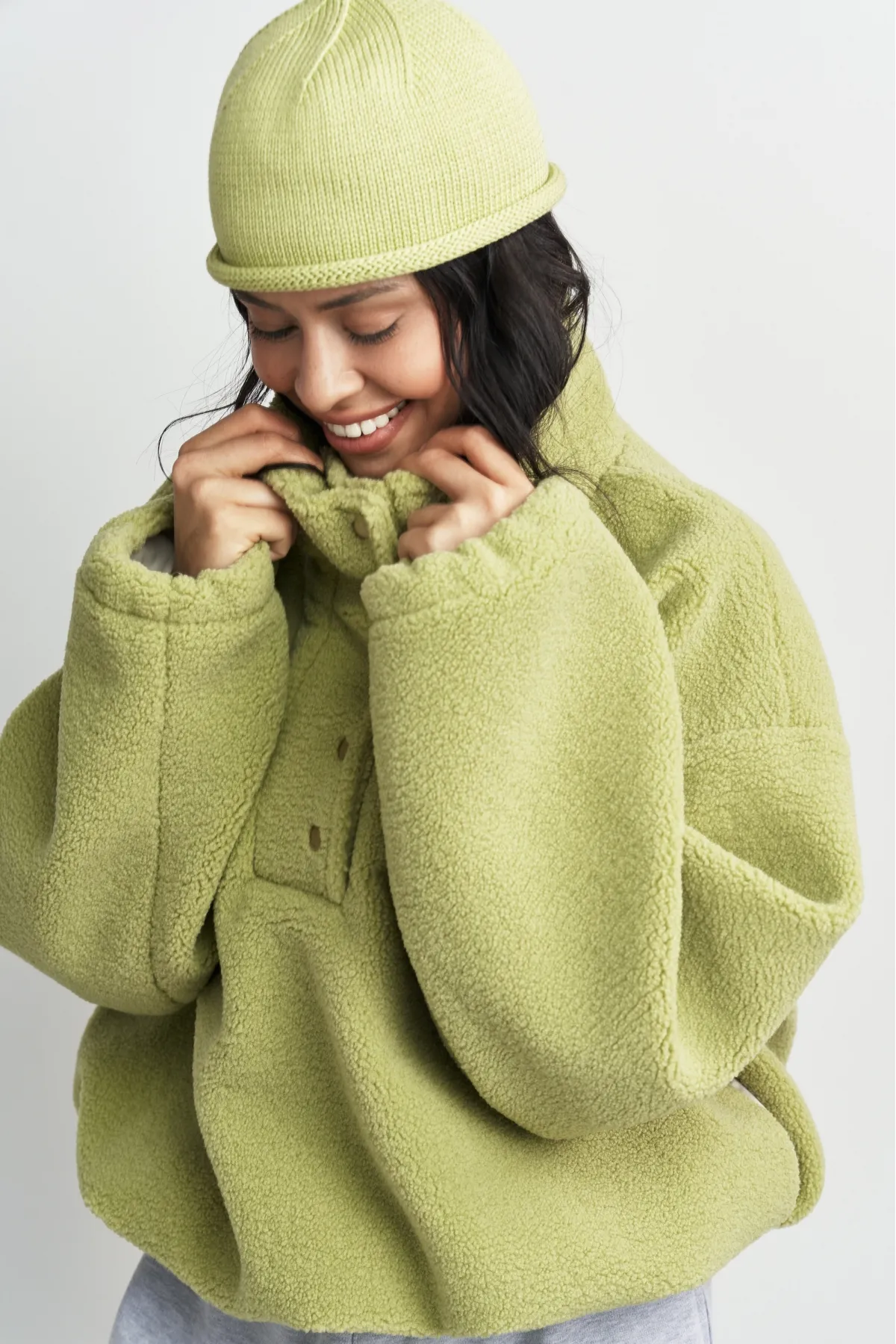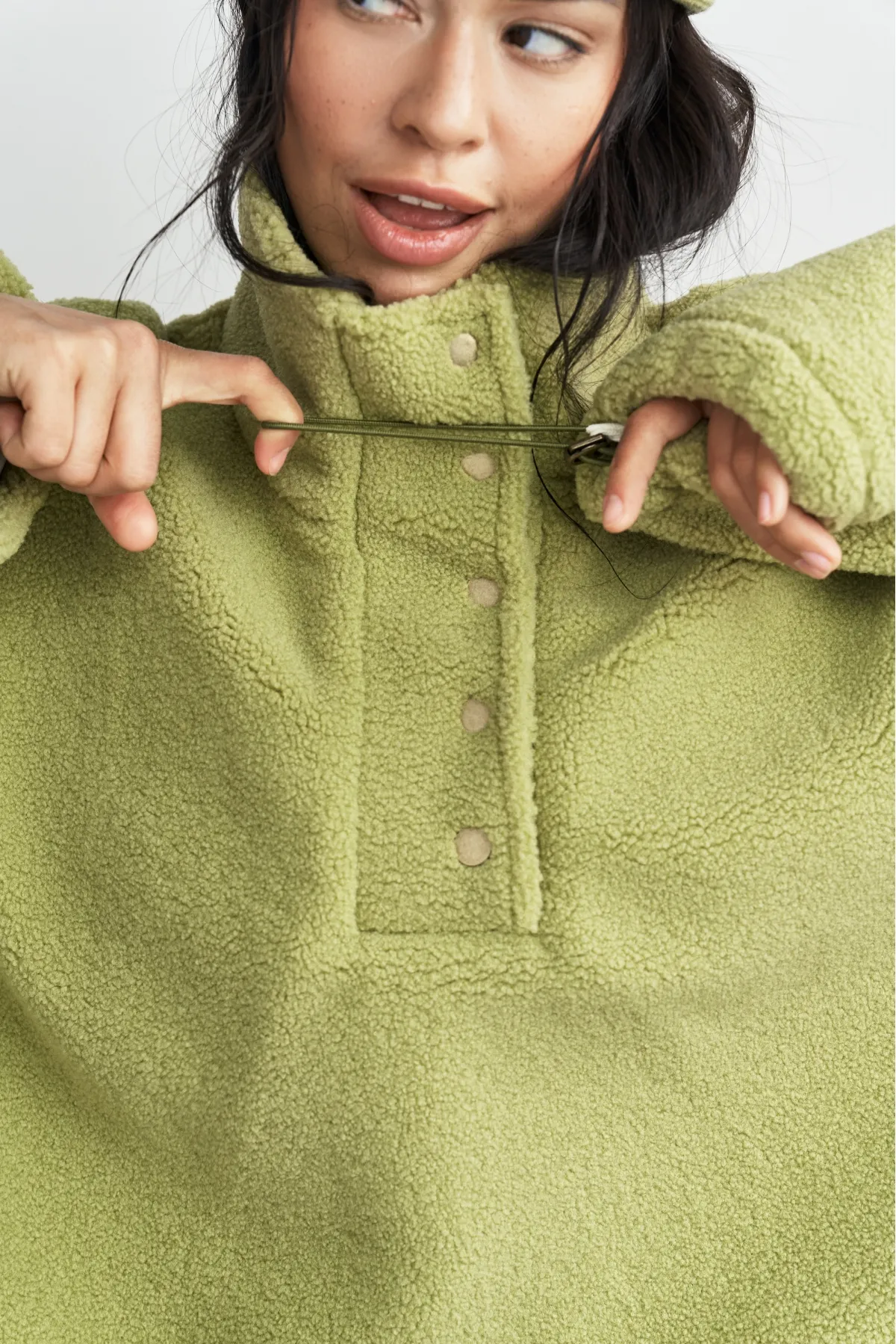 Анорак плюшевый — наш вариант верхней одежды для весны. Модель с высоким горлом на кнопках обеспечит дополнительную защиту от ветра, а кулиса по нижнему краю позволит регулировать силуэт: затянуть для лучшей защиты от непогоды или оставить свободным для комфортного образа. Идеальный выбор для прогулок в переменчивую весеннюю погоду.