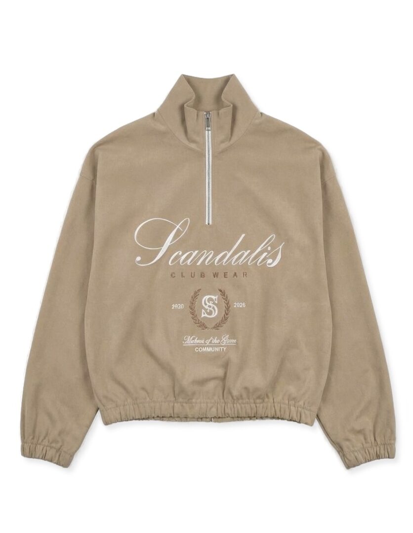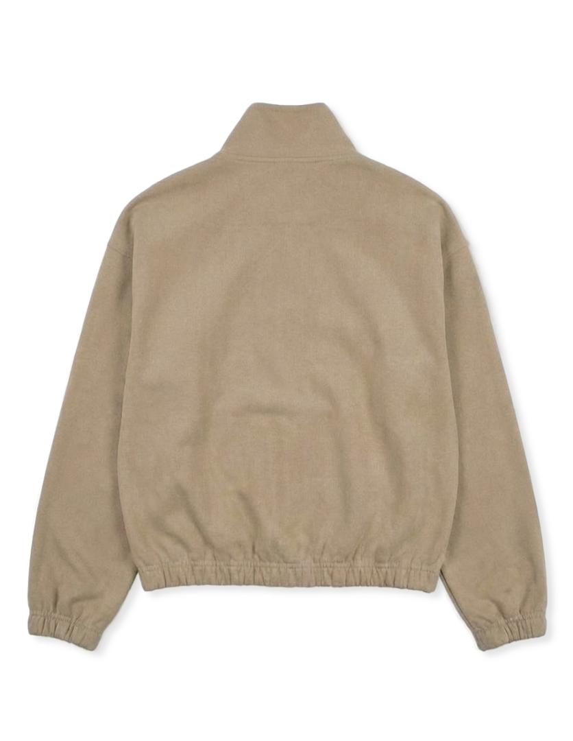 Укороченный джемпер свободного силуэта. Фактурный материал в нежном оттенке создает благородные переливы на свету, превращая спортивный фасон в элегантный элемент уличного стиля. Модель оснащена воротником-стойкой на металлической молнии 1/4. Центральную часть занимает сложная многоуровневая композиция. Манжеты и нижний край изделия дополнены мягкой резинкой, формирующей объемный, слегка «дутый» силуэт.