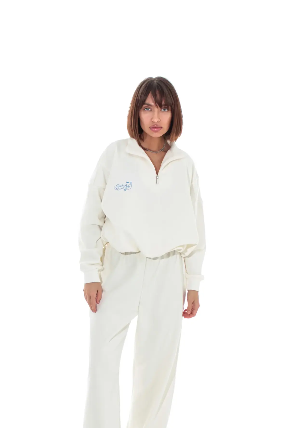 Анорак на фиксаторах, короткая молния и фирменное лого на спинке