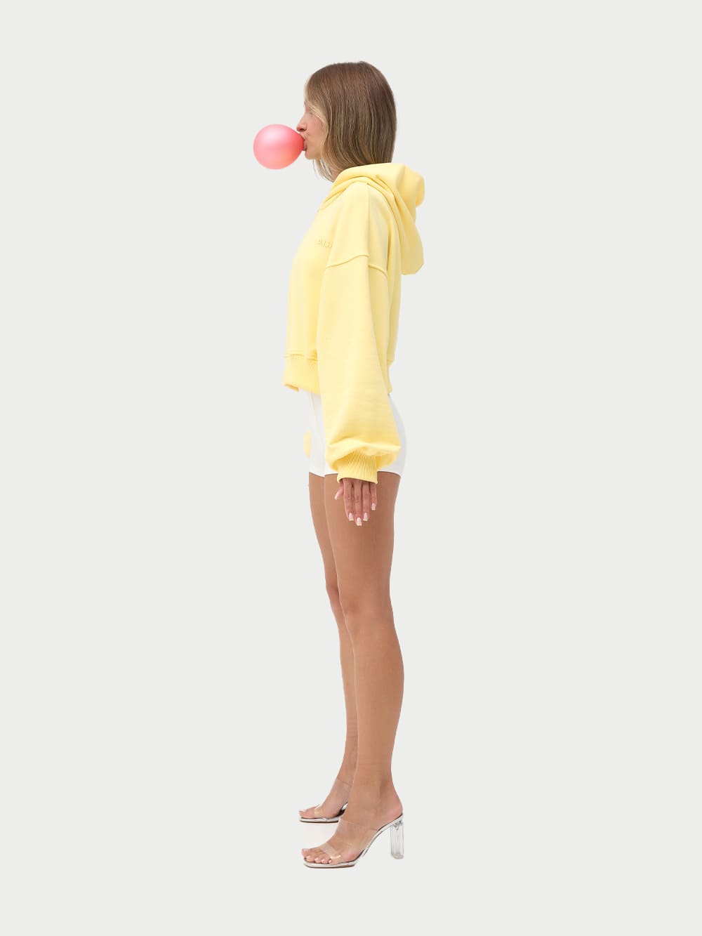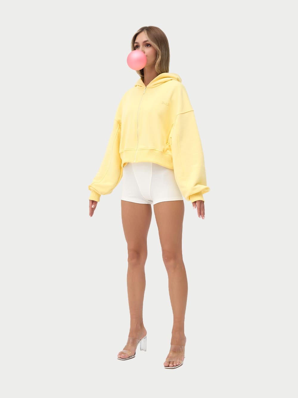 Оверсайз крой. Мягкое полотно без начеса. Скрытые карманы в боковых швах, глубокий капюшон с продольным сечением.
