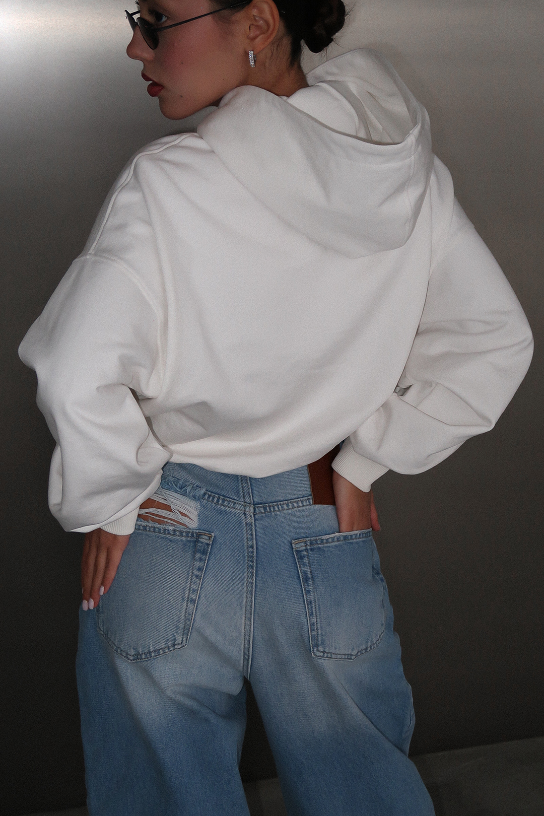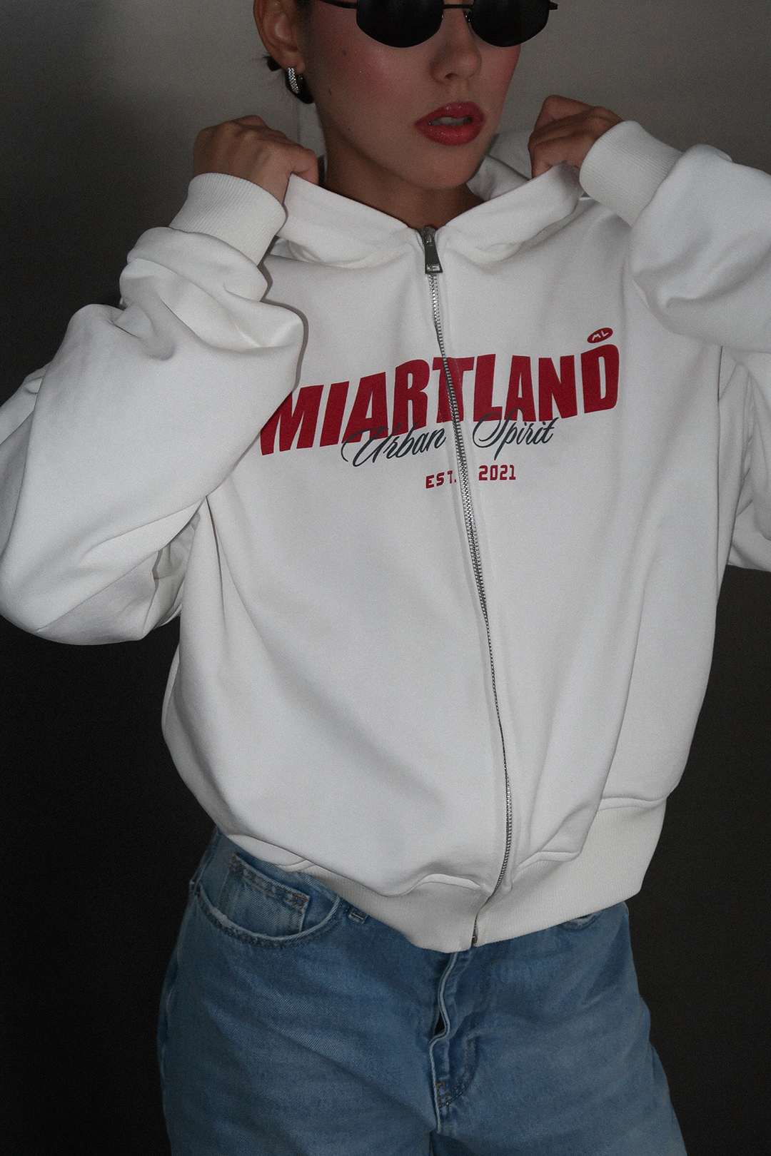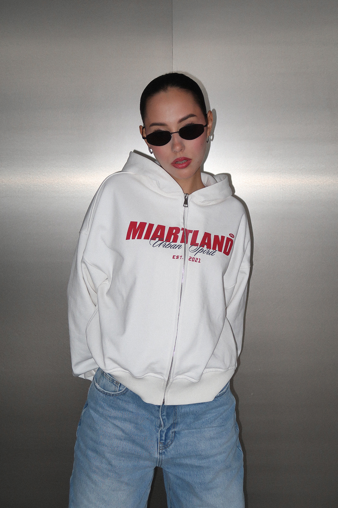 Зип худи средней длины выполнен из 100% плотного хлопкового материала