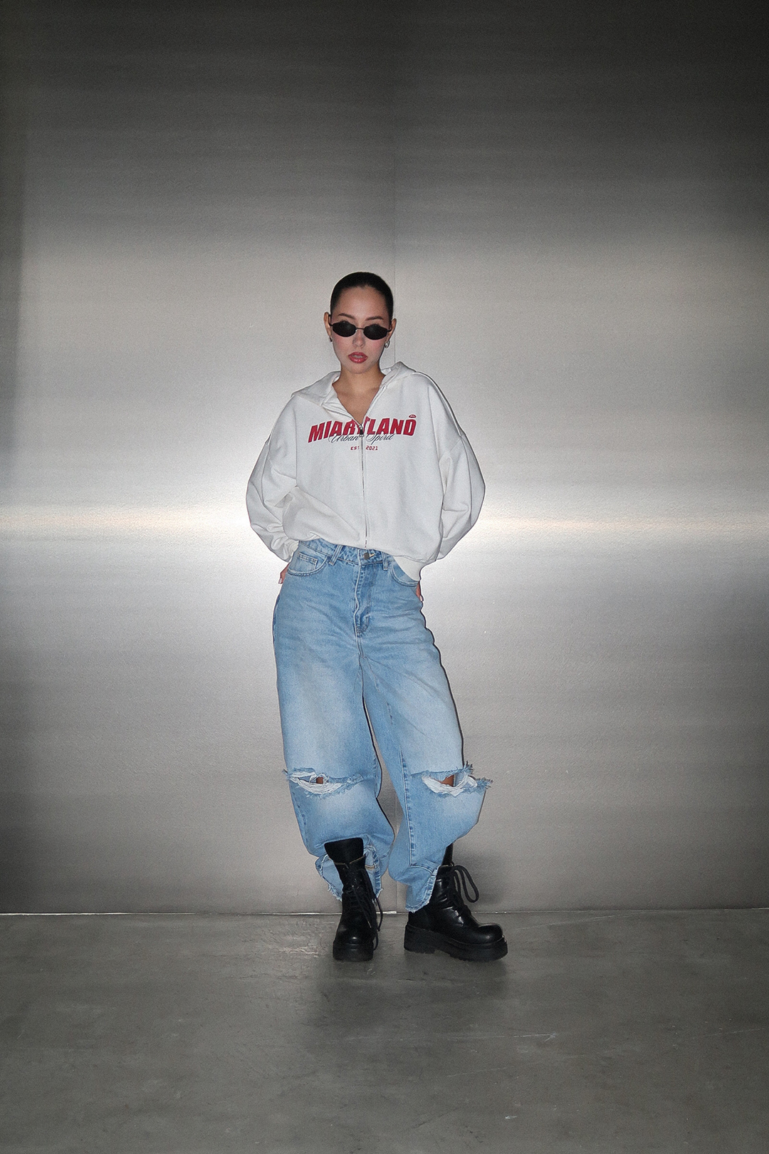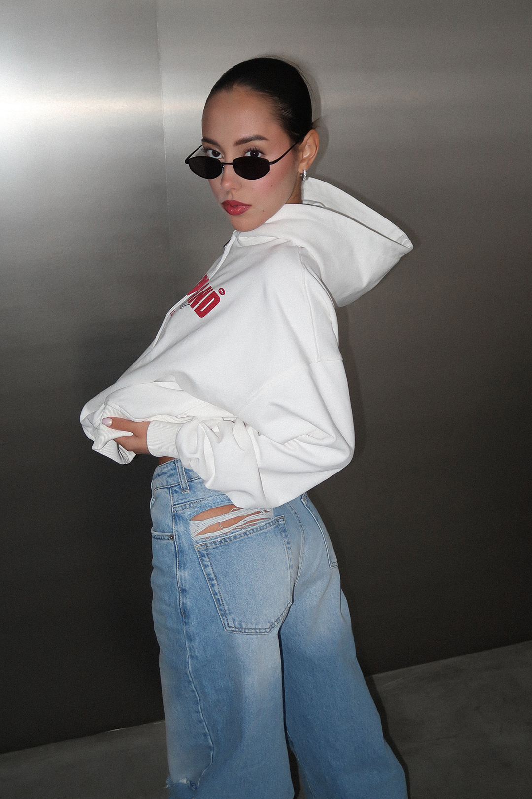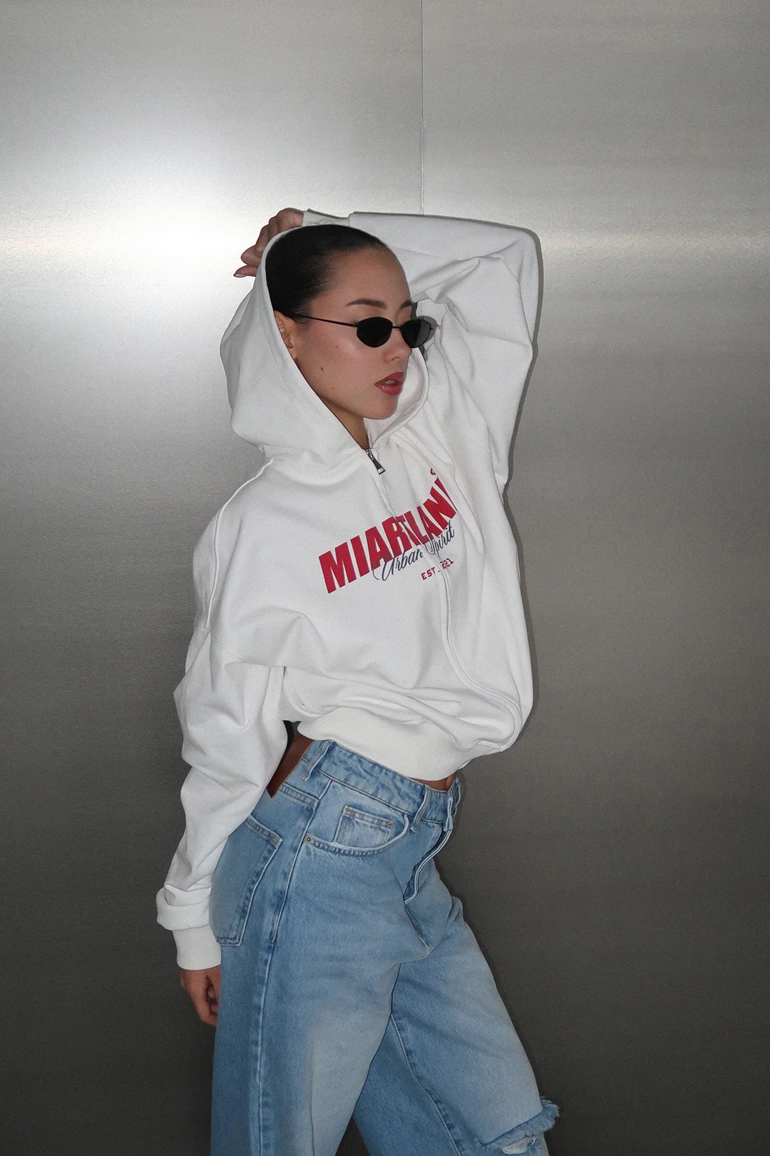 Зип худи средней длины выполнен из 100% плотного хлопкового материала
