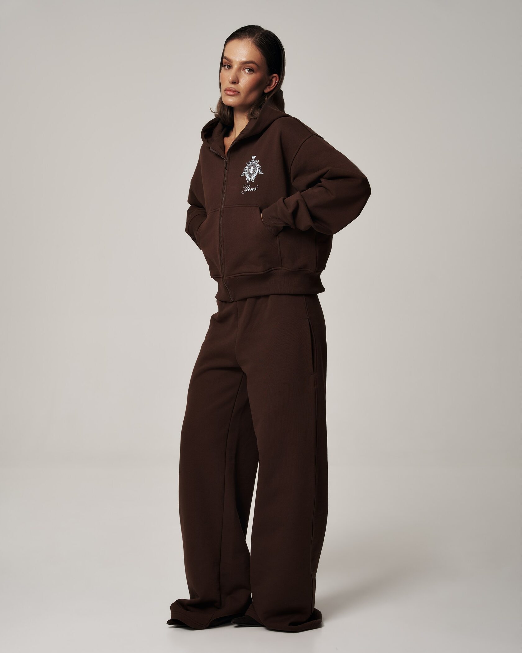 Стильное укороченное худи YONS STUDIOS в насыщенном шоколадном оттенке — современная классика в минималистичном исполнении. Модель выполнена из плотного мягкого футера, она держит форму и отлично подходит для прохладной погоды. Объёмный силуэт со спущенной линией плеч формирует актуальный городской образ, а аккуратная фирменный герб на груди добавляет характерный акцент