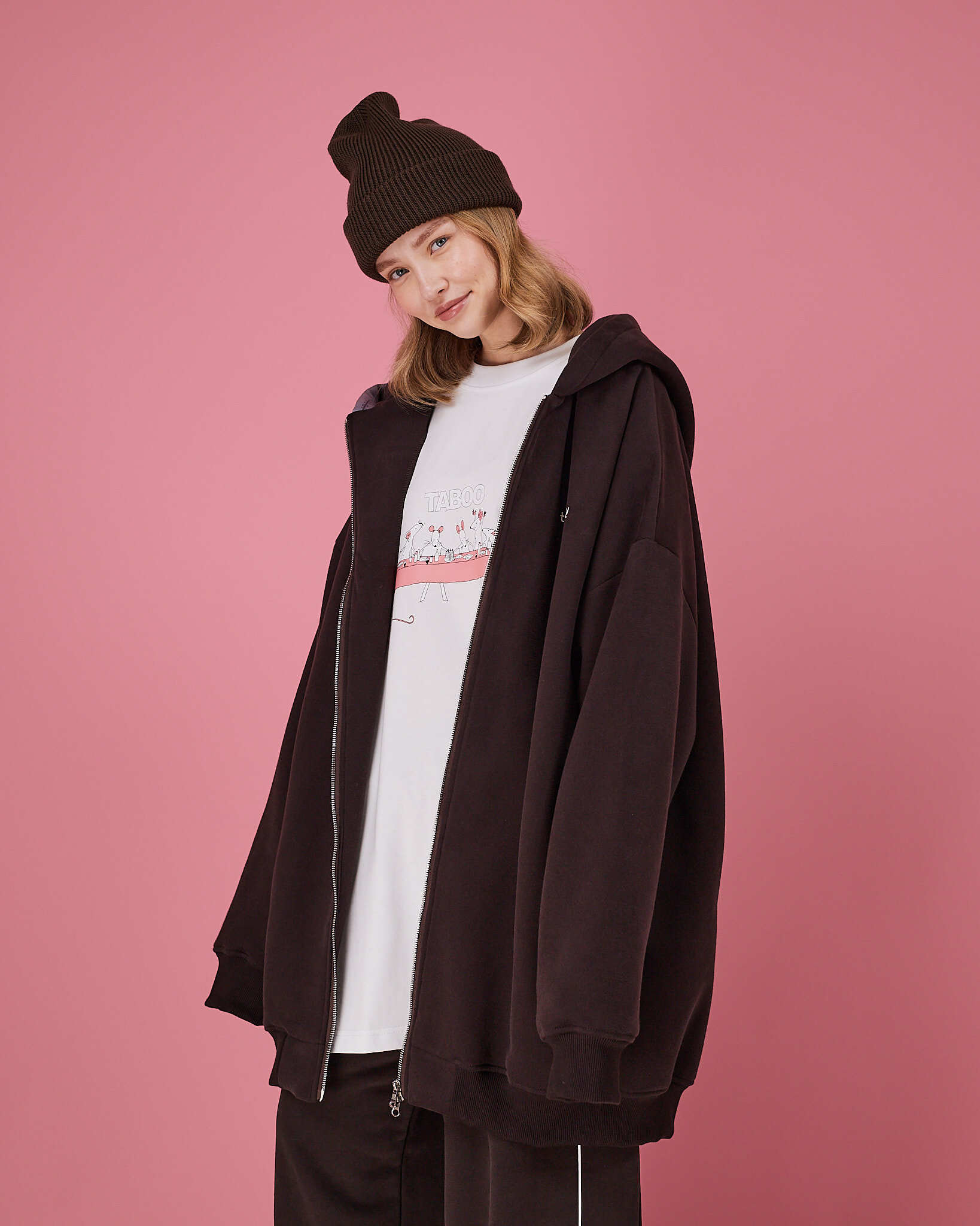 Табуха зип бренда ТАВОО - это объемный худи на молнии со спущенной линией плеча и нетипичным кроем, выполненный из мягкого футера с начесом.⠀⠀⠀