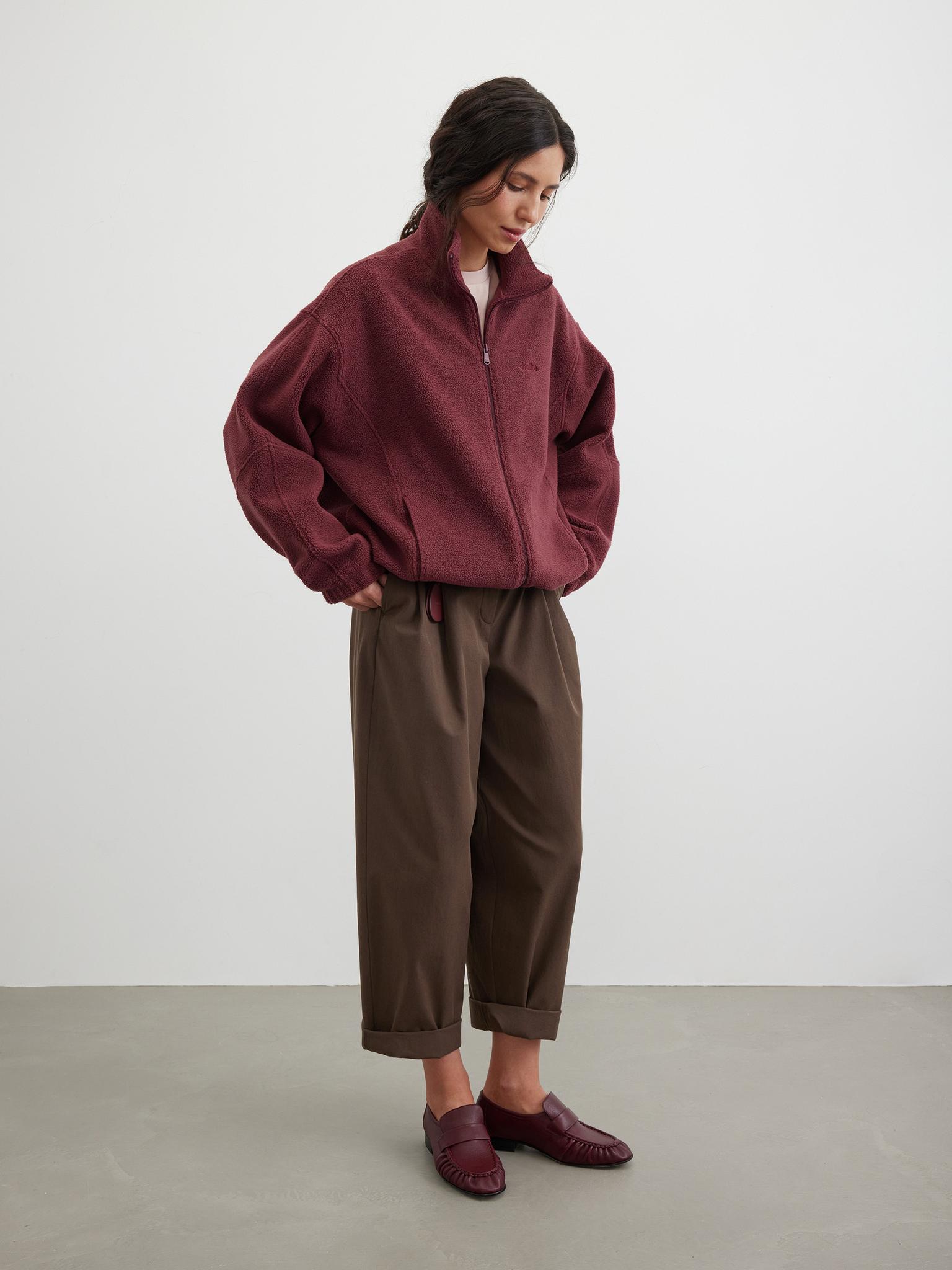 Регулируемая посадка. Низ можно слегка утянуть с помощью внутренней резинки, чтобы изменить форму и сделать силуэт более собранным.