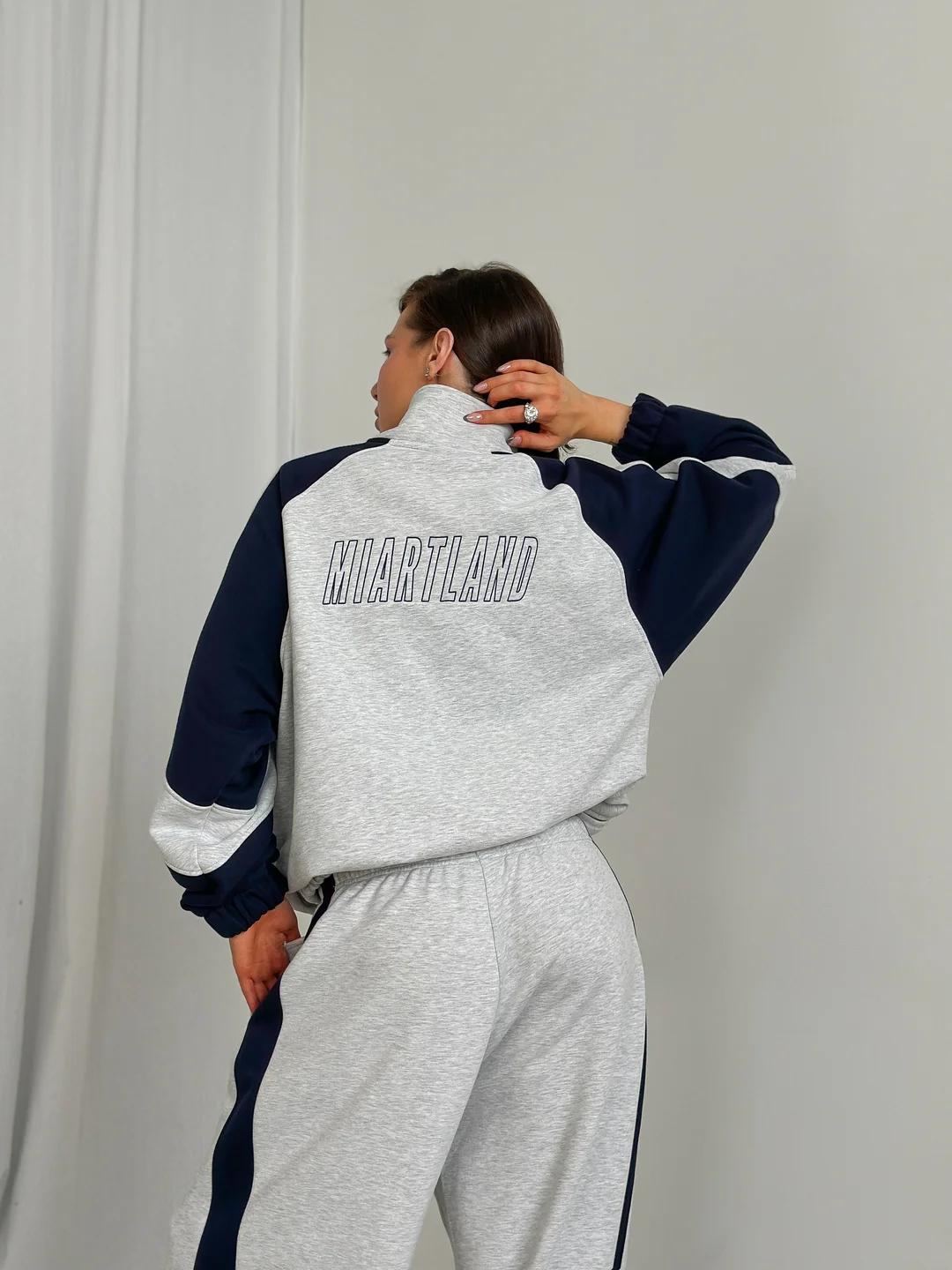 Олимпийка выполнена из хлопкового материала с эффектом велюра