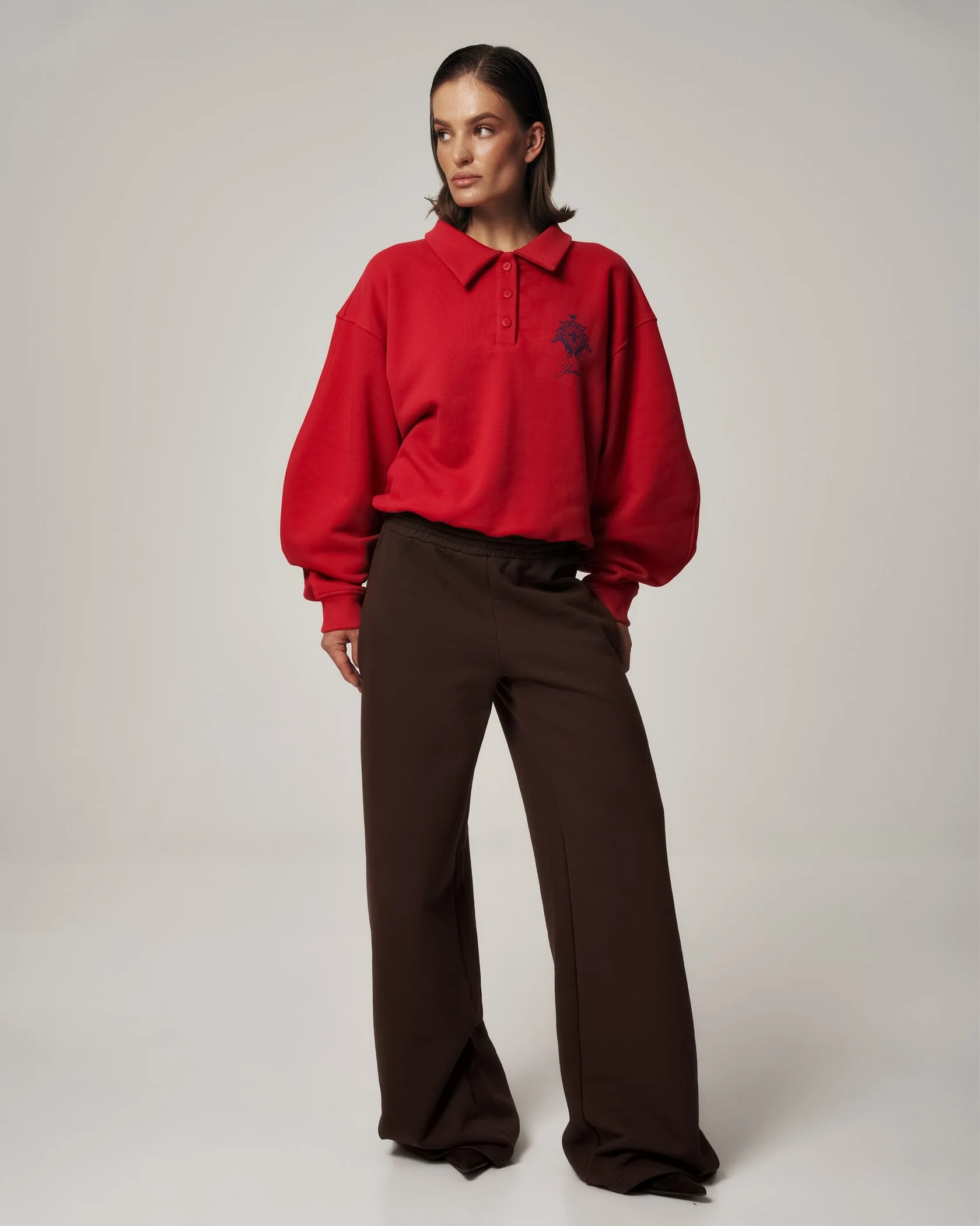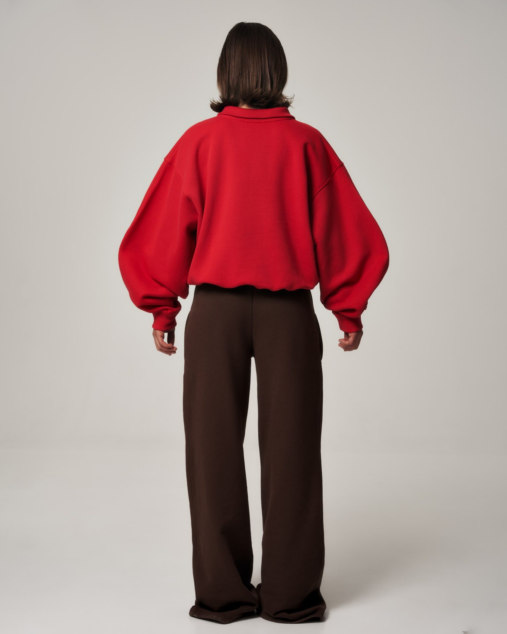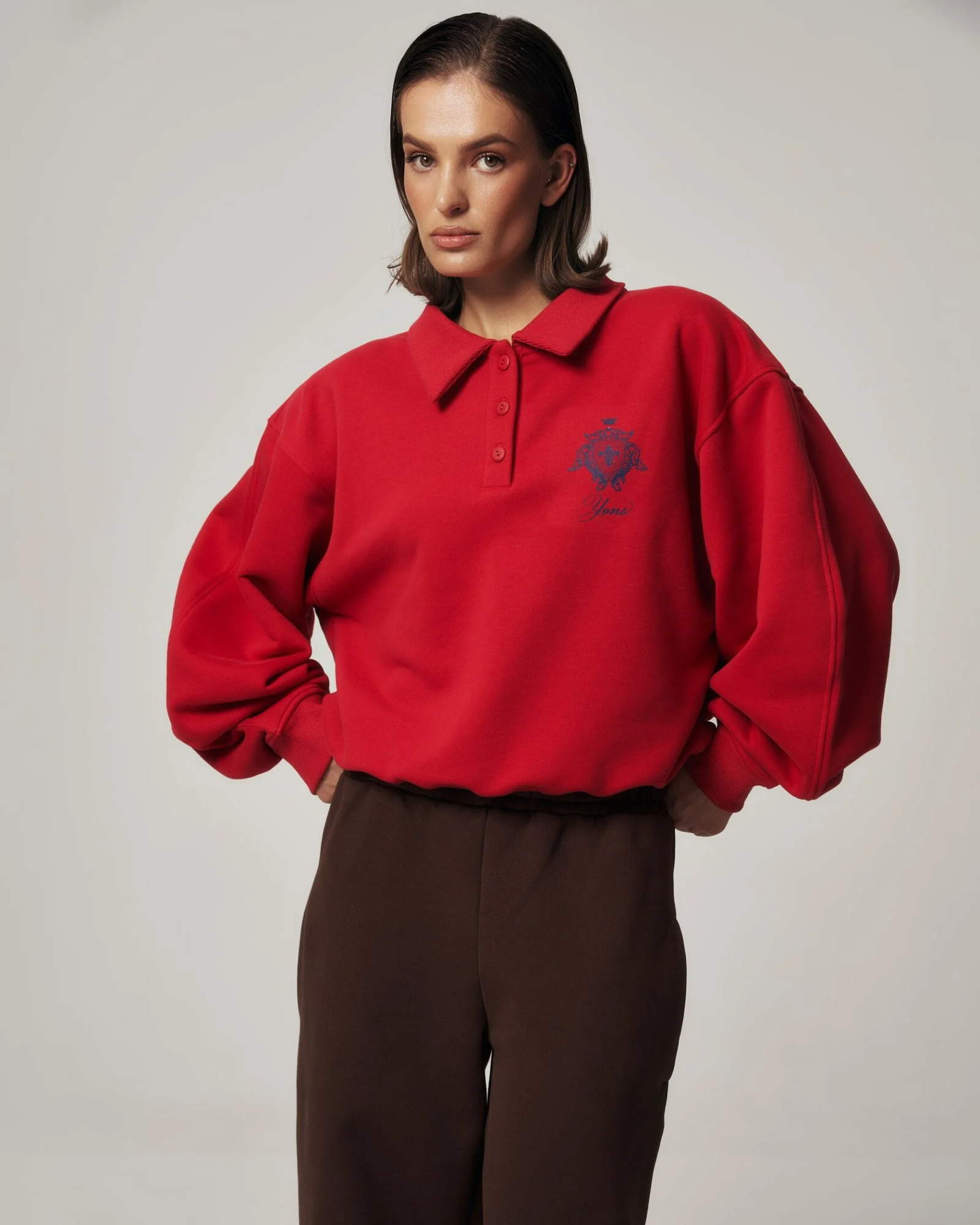 Свитшот-поло YONS STUDIOS RED — сочетание классического поло и уютного свитшота в одном образе. Ярко-красный оттенок, минималистичный дизайн и свободный силуэт делают эту вещь идеальной для повседневного гардероба и городских образов в стиле smart-casual