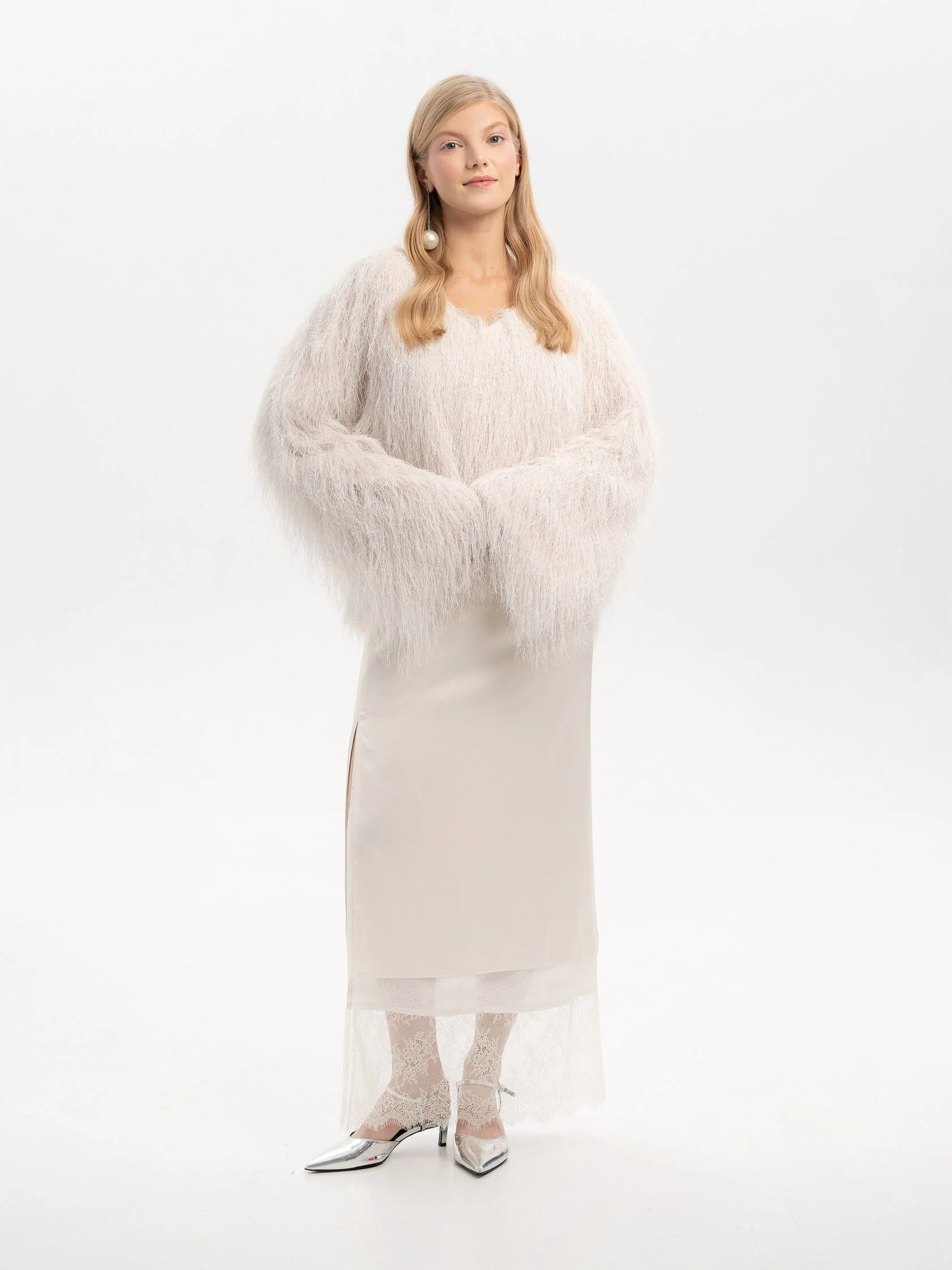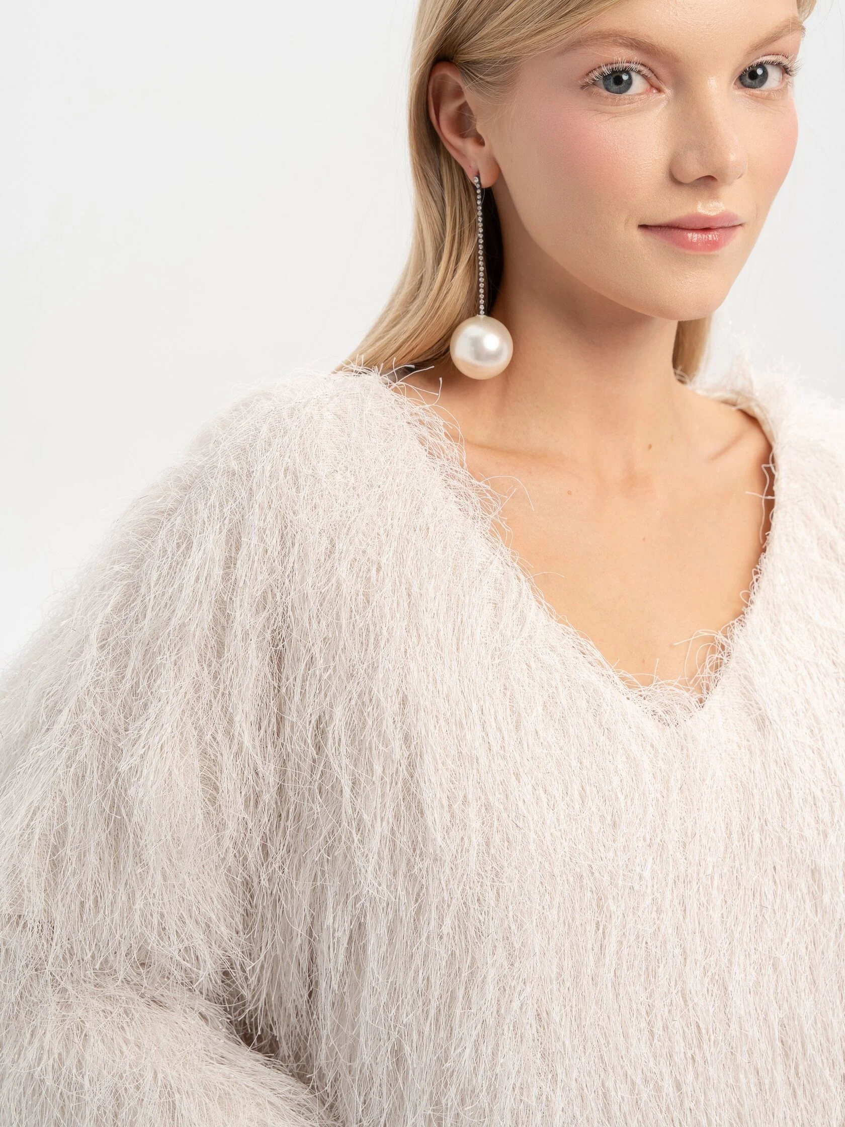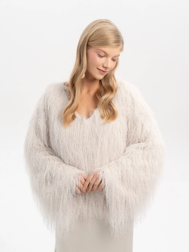 Молочный свитшот добавит нарядности даже самому простому образу с повседневными джинсами. Легко вписывается в праздничные комплекты с юбками и металлическими акцентами – он идеален, когда хочется выглядеть эффектно без лишних усилий.