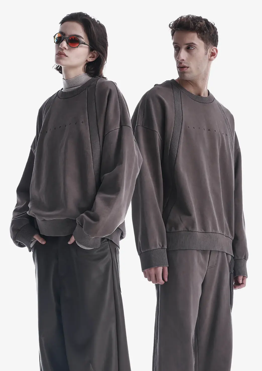 Свитшот FRISSON из плотного хлопкового трикотажа с петлевой изнанкой. Окрашен в готовом виде и обработан снежной протравкой — каждый цвет уникален. Ткань не садится и сразу комфортна в носке. Эластичные вставки подчёркивают рельеф и посадку. Свободный крой даёт объём и не ограничивает движение.