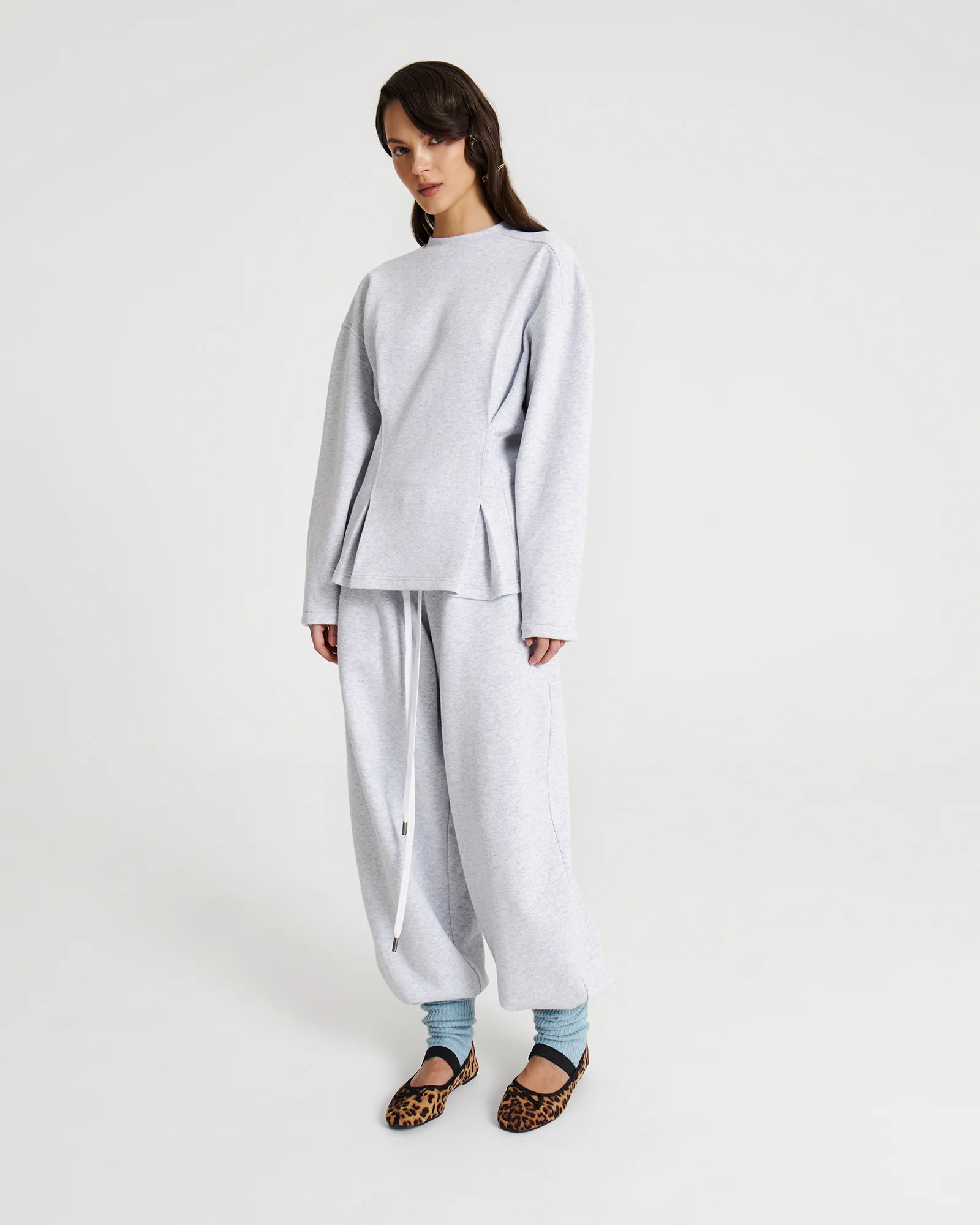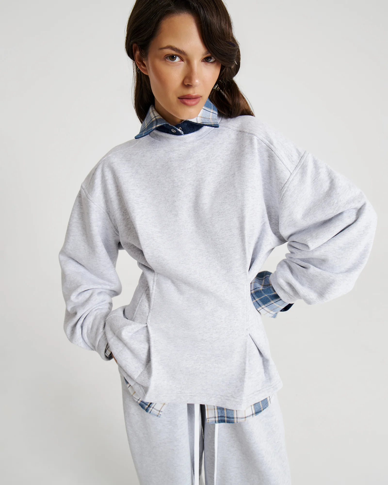 Свитшот с акцентной талией в светло-сером цвете — это стильная и комфортная одежда, которая станет отличным дополнением к вашему гардеробу. Модель сочетает в себе удобство классического свитшота и модный акцент на талии, который подчёркивает фигуру. Идеально подходит для создания расслабленных повседневных образов.