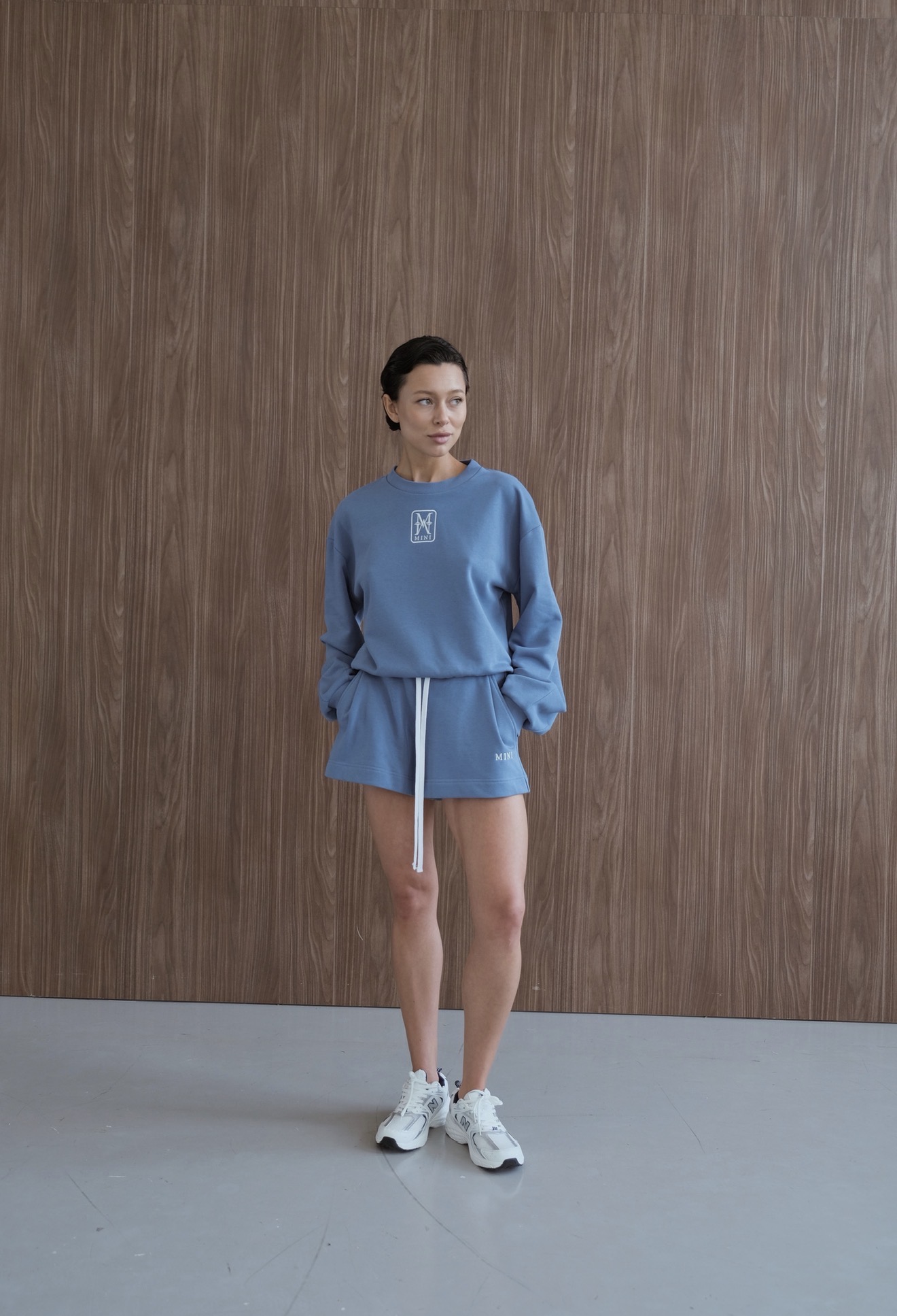 Свитшот из футера укороченный, свободного кроя, со спущенной линией плеча.