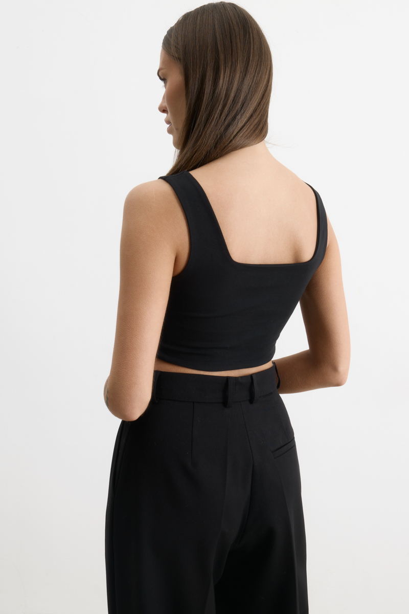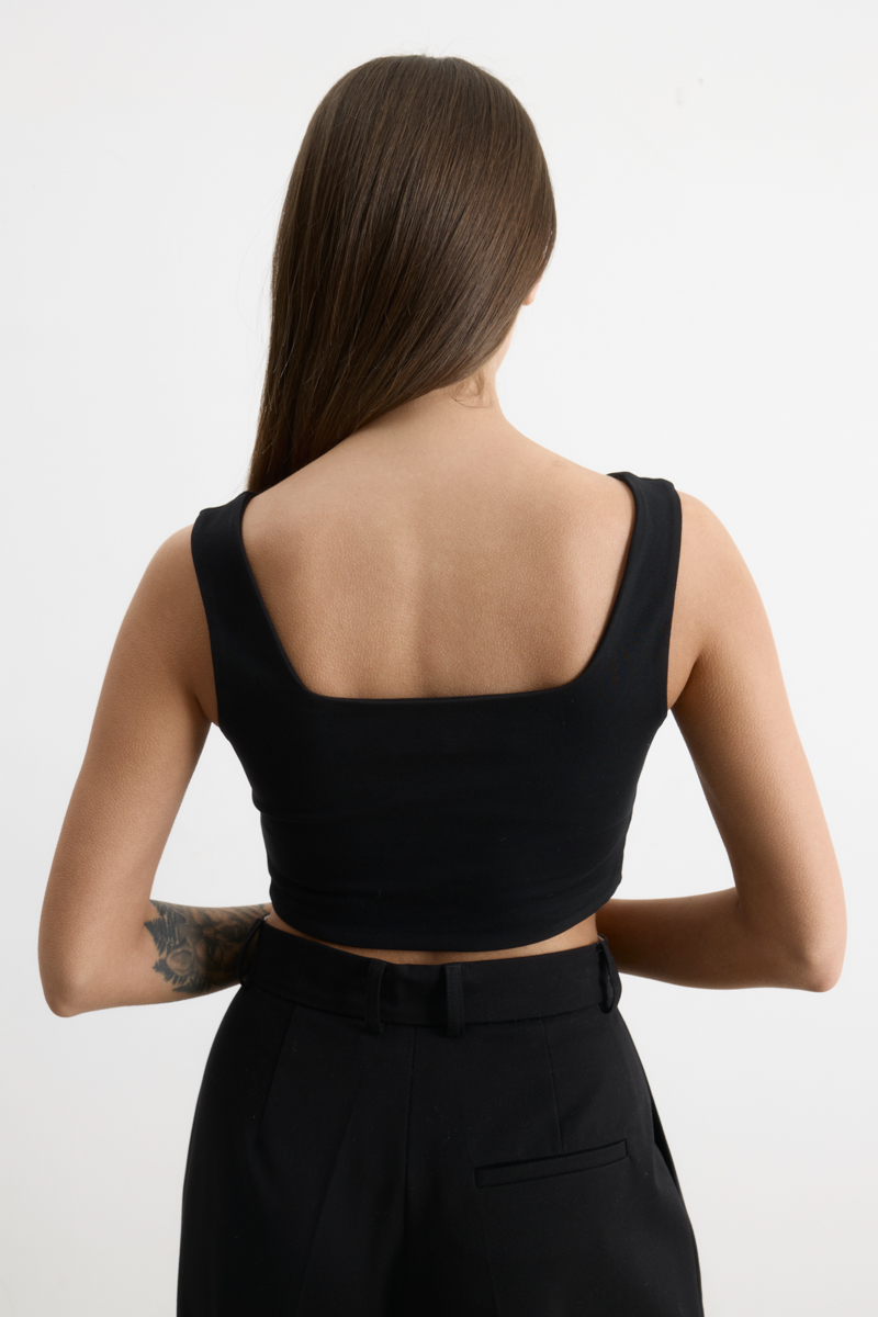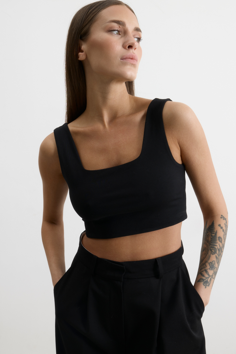 Стильный и модный элемент женского гардероба. Он идеально подходит для создания современных и дерзких образов. Обеспечивает комфорт и свободу движений благодаря своему крою. Топ отлично сочетается с различными элементами гардероба, например, с джинсами, шортами или юбками.