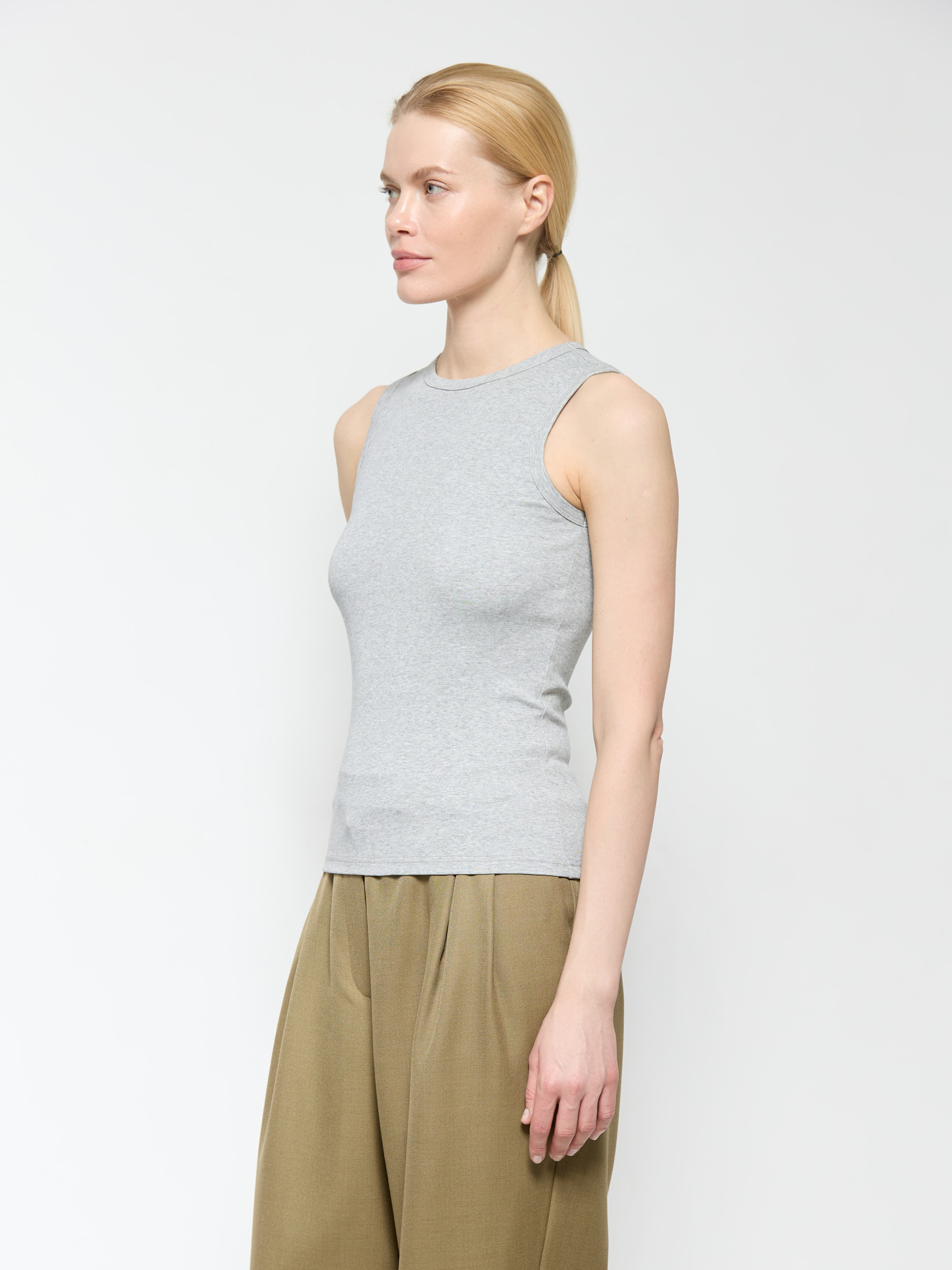 Майка может стать как самостоятельным предметом вашего гардероба, так и первым слоем под любое трикотажное изделие. Материал майки — легкий и комфортный к коже хлопок.